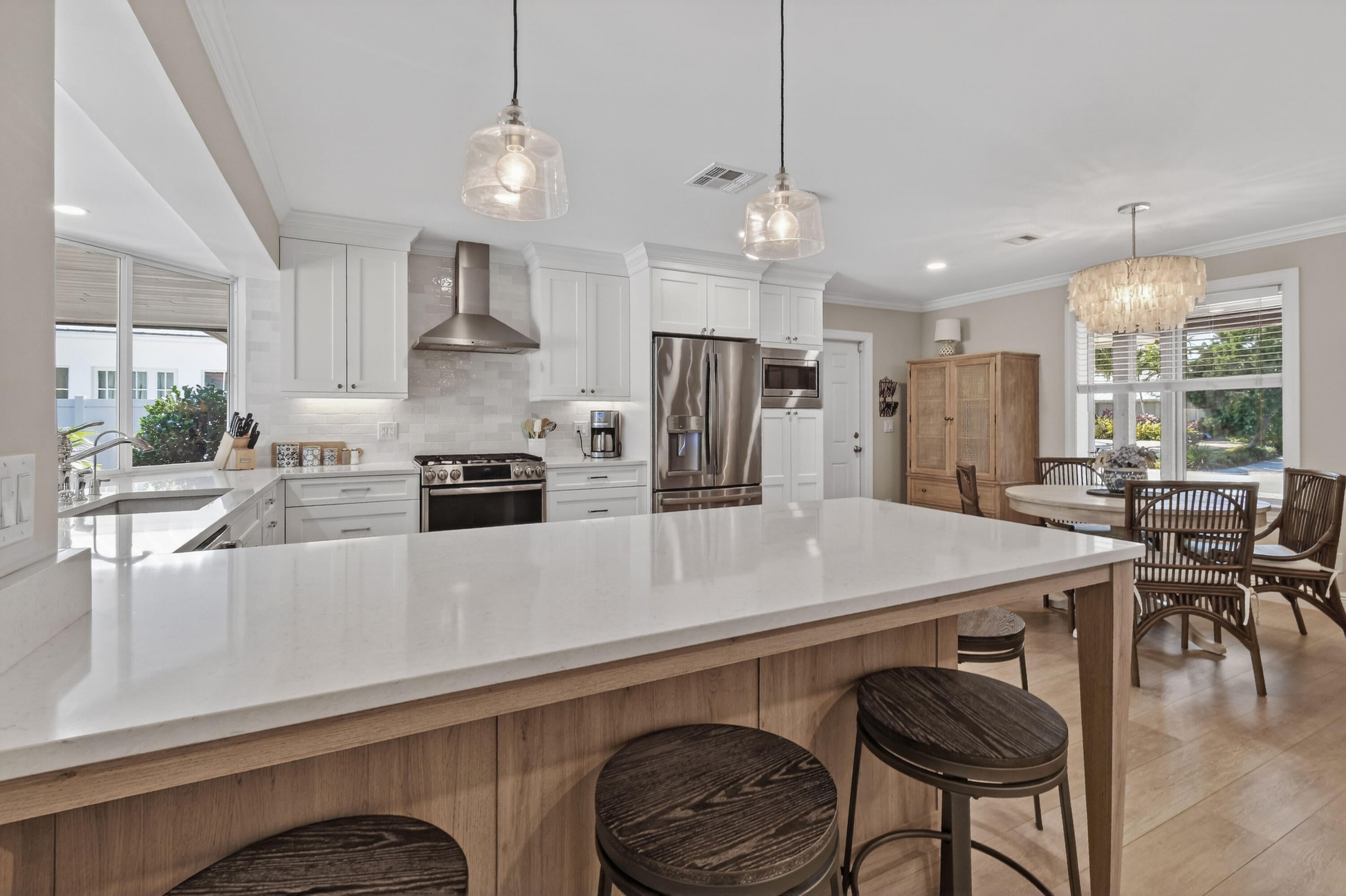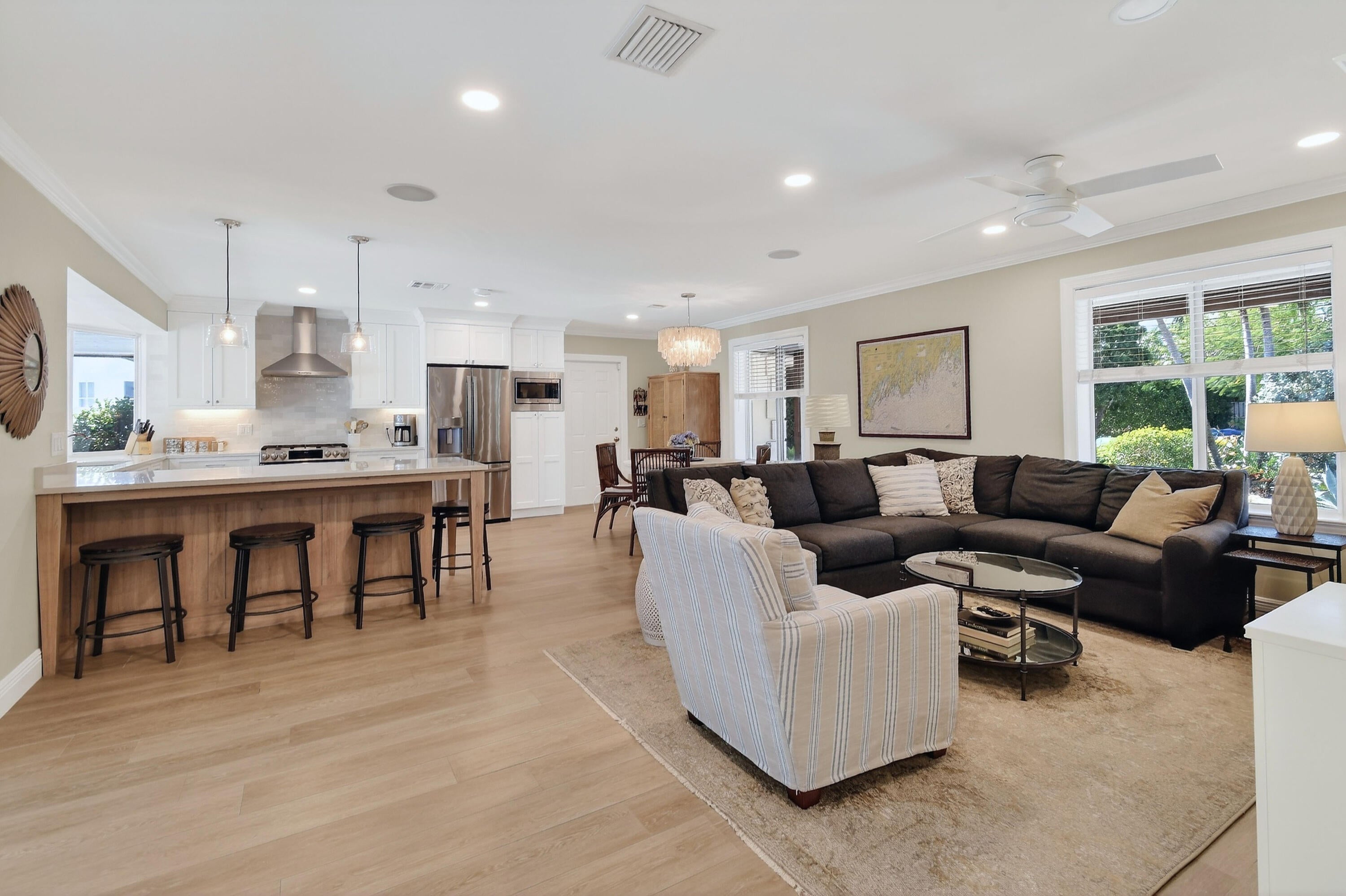 This immaculate 3 BR, 3 BA pool-home has recently undergone an extremely detailed renovation and transformation. Highlights to the home now include; all impact windows, garage & entry doors and sliders, an elegantly styled modern kitchen & baths, porcelain tile flooring, a new AC and a rebuilt saltwater pool. The property itself is located in the Tequesta Country Club waterfront and boating community. It abuts a wooded area of the golf course which can be viewed and enjoyed from the privacy of the screened pool lanai and rear covered porch. The home is complimented by a lush tropical landscape with a variety of native trees and plantings. Boat storage is available within the fenced-in side yard. A more detailed list of the home's features and information on the TCC neighborhood follows.Among the design features and upgrades to 198 Golfview Drive are; - Navien on-demand water heater via propane - 1000 gallon buried propane tank - GE Profile kitchen appliances including a dual fuel range - Built-in convection microwave - Custom built pergola - Re-finished & heated salt water pool with laminar jets - Built-in solid wood closet systems - Custom interior french doors - Frameless glass shower enclosures - Rear and side yard fencing - Plantation Shutters - Reverse Osmosis Water Filter - EV Level 2 Charging Port - Portable Generator Outlet wired to panel - Ring flood light/motion detector cameras around home - Multi-room/Surround Sound built-in speakers - Eero wifi boost system - Crown mouldings - Over-sized garage with epoxy floor The home is located just a short walk from Tequesta Country Club's two riverfront parks along the Loxahatchee. It's also very close to the neighborhood's community boat ramp and day dock. Water enthusiasts will not be disappointed, while the golfer in the family has unlimited opportunities. You are also offered a wealth of dining, shopping and beach options in the area. Welcome home.