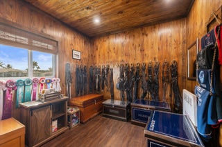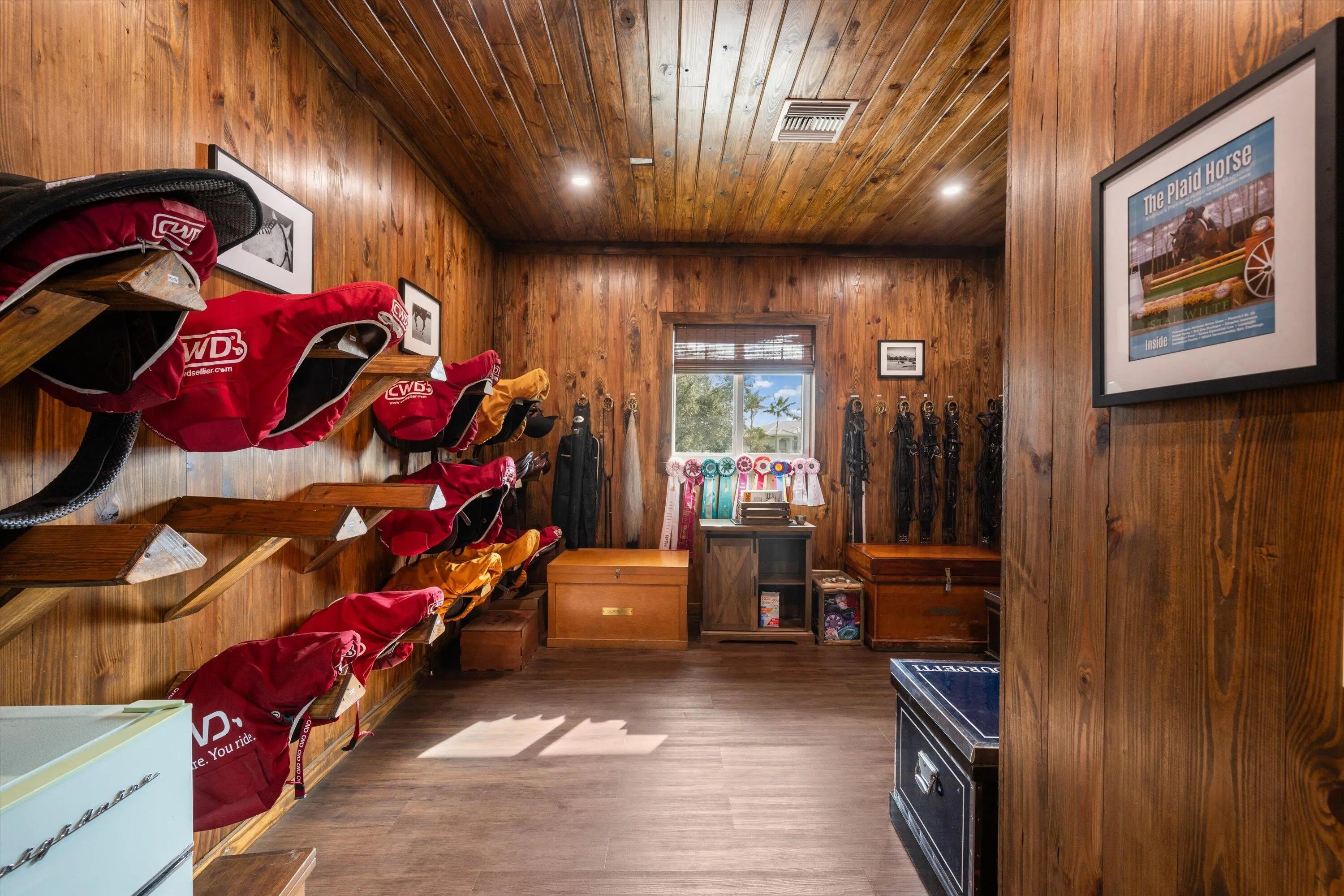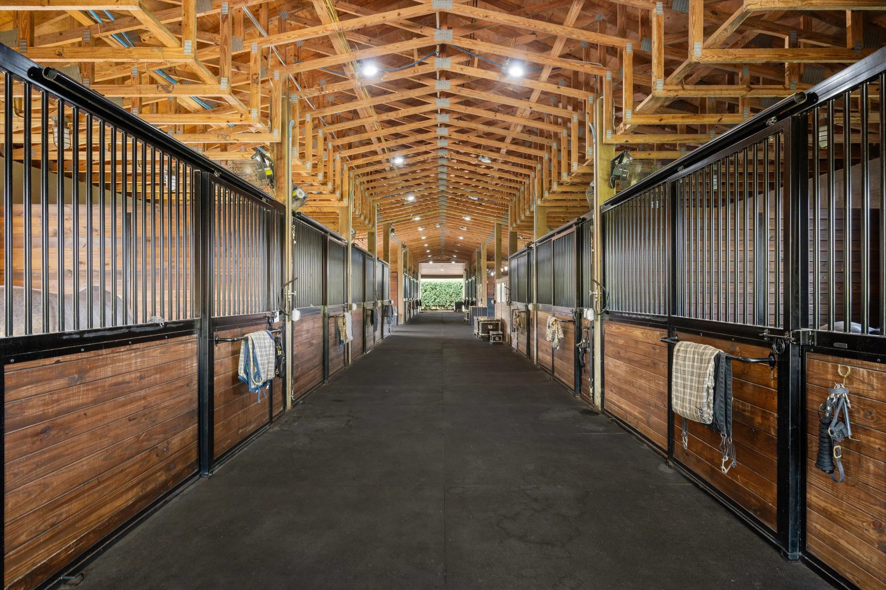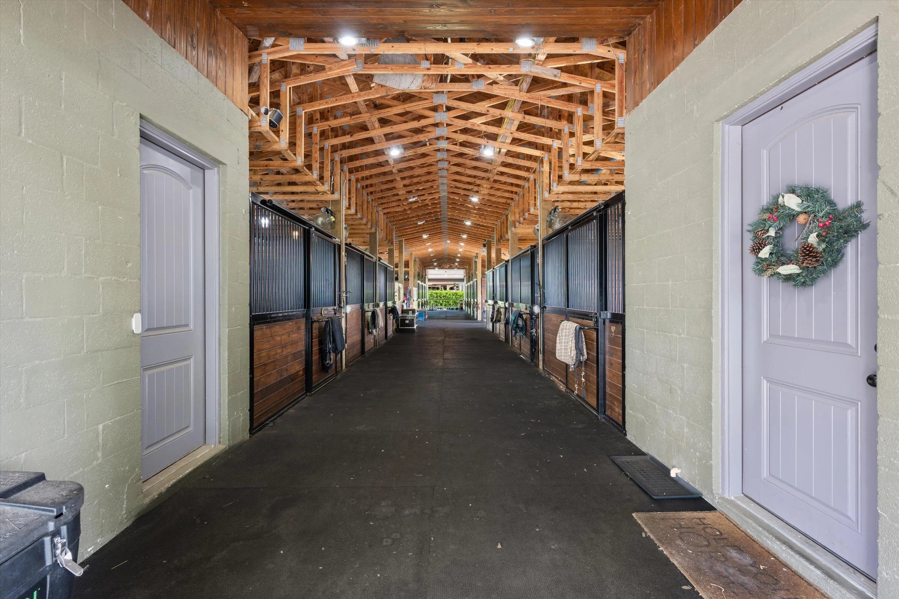 Beautifully renovated property with new roof, impact windows/doors, updated HVAC, LED lighting, 26kW generator, 4K security system, and new gates. Features a remodeled GE Cafe kitchen, luxury master suite, upgraded baths, saltwater pool, UV water system, new well pump, enhanced irrigation, new garage door/flooring, and water heater with booster. Two updated guest/grooms' quarters include HVAC, kitchenettes, and private baths. Equestrian amenities include a 2021 CBS barn with fly system, A/C tack/feed room with bath, four wash stalls, hay storage, an all-weather Premier ring, six paddocks. 2.15-acre property is located right on the bridle path and is a short hack to the show.