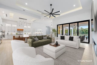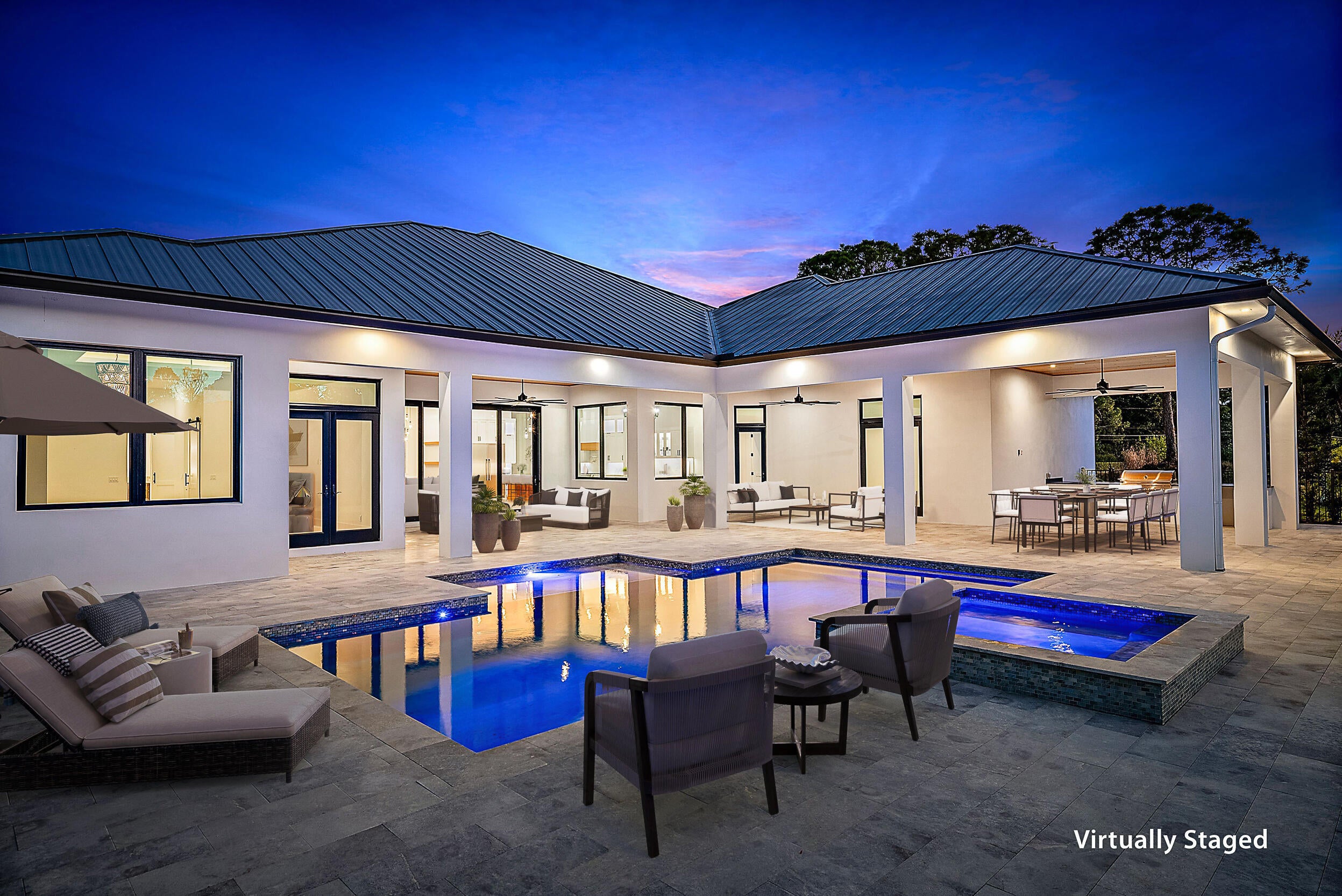 Located within a secluded estate-style community of meandering streets, this new construction home sits on an oversized 6.51-acre lot. The home features a modern floor plan with a clean, timeless design. Multiple living spaces open to an expansive covered and open-air outdoor living area with a summer kitchen, built-in speakers, and a saltwater pool & spa, creating seamless indoor-outdoor living. The rear yard overlooks a scenic pond; enjoy as a peaceful backdrop or fill in to expand usable green space. A four-bay detached garage with lift-height ceilings is connected by a breezeway. The property offers the opportunity to create a full equestrian estate or enjoy it as a private retreat. The community appeals to both equestrian and non-equestrian buyers, with a short hacking distance tothe community equestrian park and nearby stables, and convenient access to shopping, dining, golf, and beaches. Additional features include a full-house reverse osmosis (RO) water system, buried propane tank, generator hookup, spa-like primary suite, ensuite bedrooms, a large media or recreation room, and a dedicated office. Full Details list available.
