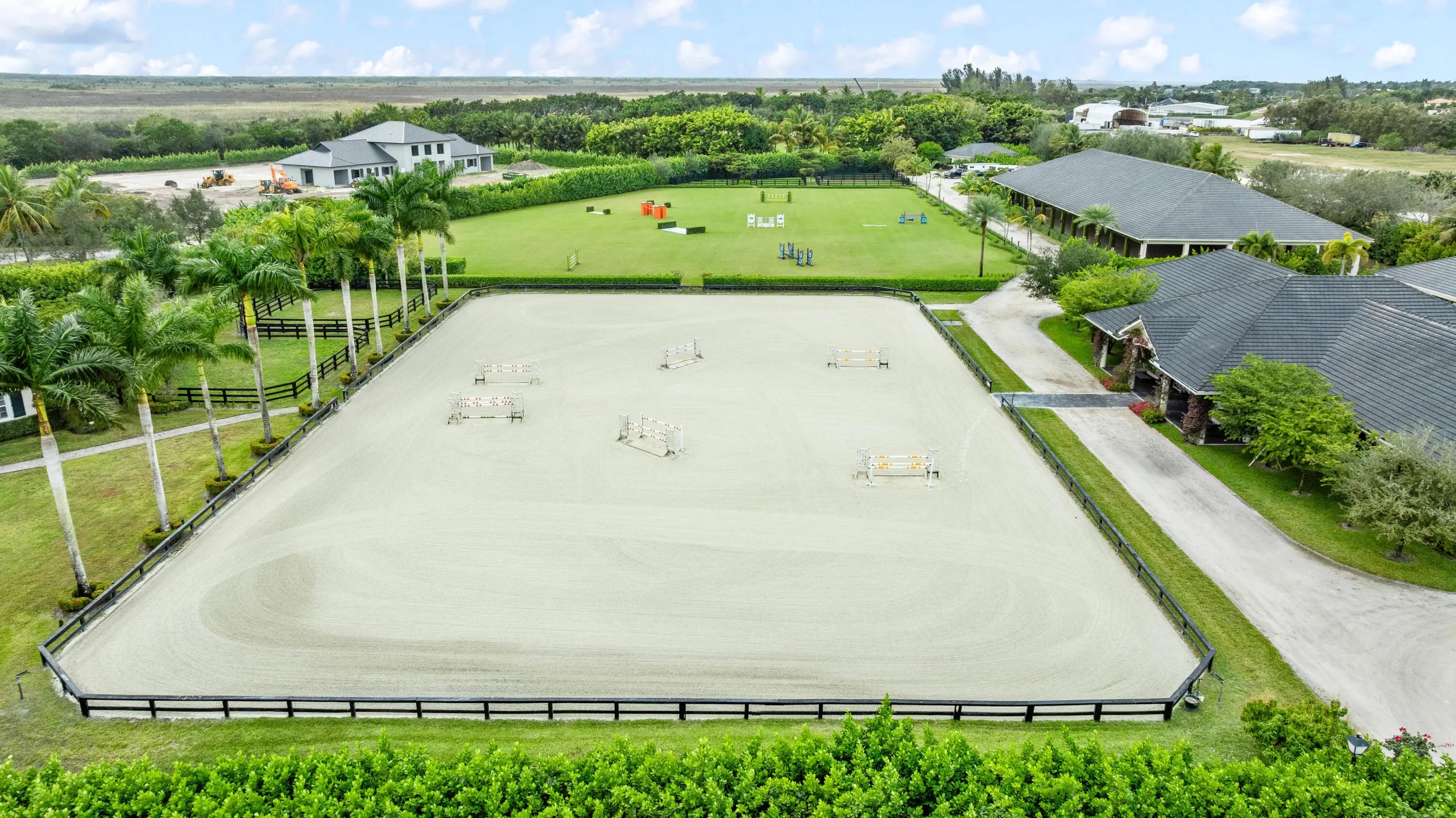 This exceptional 8.84‑acre Saddle Club equestrian estate feels like a world of its own. At its heart stands a breathtaking four‑bedroom, four‑bath residence, where an airy open floor plan flows effortlessly toward sweeping views of the 170' x 250' riding arena and the expansive three‑acre grass jump field. The home's layout is tailor‑made for entertaining, with sunlight pouring through wide windows that frame the property's most impressive equestrian features.Just steps from the main house, a charming guest cottage welcomes visitors with a warm sitting area beside a thoughtfully designed kitchenette, along with a serene bedroom complete with an ensuite bath--perfect for guests seeking privacy and comfort.For the horses, the estate offers an 18‑stall