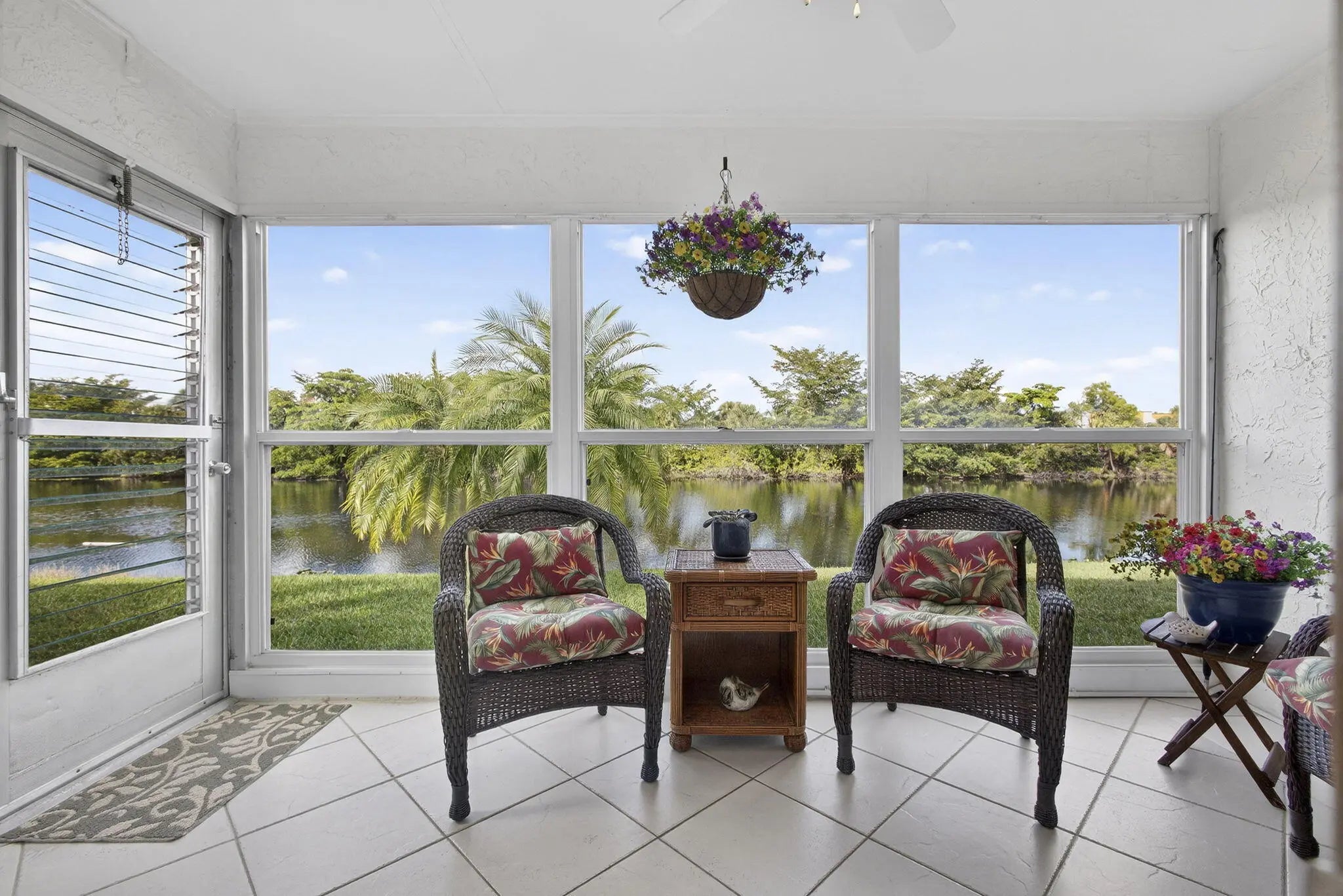 Gorgeous home move-in ready 2-bedroom, 2-bath condo with serene water view. Brand new GE All-In-One ventless washer/dryer, new dishwasher, new microwave, new garbage disposal Freshly painted throughout with brand-new carpet in bedrooms & beautiful laminate flooring and a beautiful new decorative front door and newly painted walk way for added curb appeal. Enjoy peace of mind with impact French doors and back windows that open to a screened patio overlooking a beautiful, serene water view to relax or unwind. Residents enjoy access to a private satellite pool and benefit from lower-than-average condo fees within this active, well-maintained community.Ideally located near the Turnpike, shopping, dining, and everyday essentials. Roof replaced in 2023. Fitness ctr, private satelite pool,