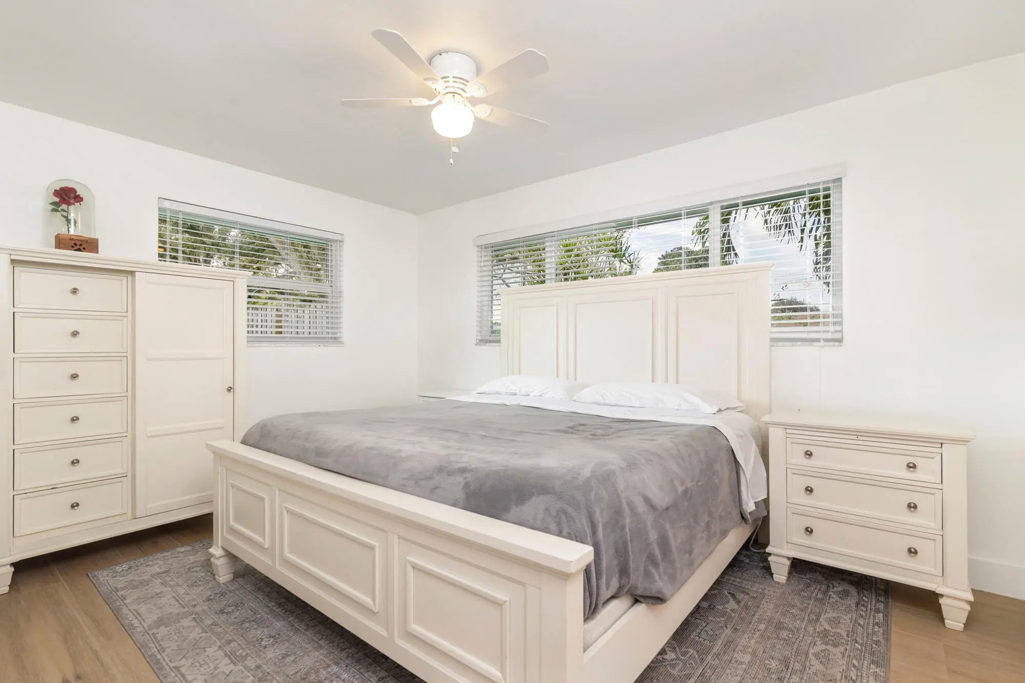 Situated on a quiet street within a highly desirable non-HOA neighborhood, this corner lot, single family home sits in the heart of Palm Beach Gardens. Flooded with natural light, the one-story layout offers 4 bedrooms and 3 full baths. Enjoy the best of South Florida indoor/outdoor living with sliding doors that open to a covered lanai and fenced backyard featuring a sparkling saltwater pool. The kitchen boasts an oversized island, a reverse osmosis water system, quartz countertops and new white oak flooring throughout the home. With an oversized 2 car garage, large driveway and generous side yard, there is ample parking with room to store your boat. This beautifully maintained home offers true move-in readiness and exceptional peace of mind.
