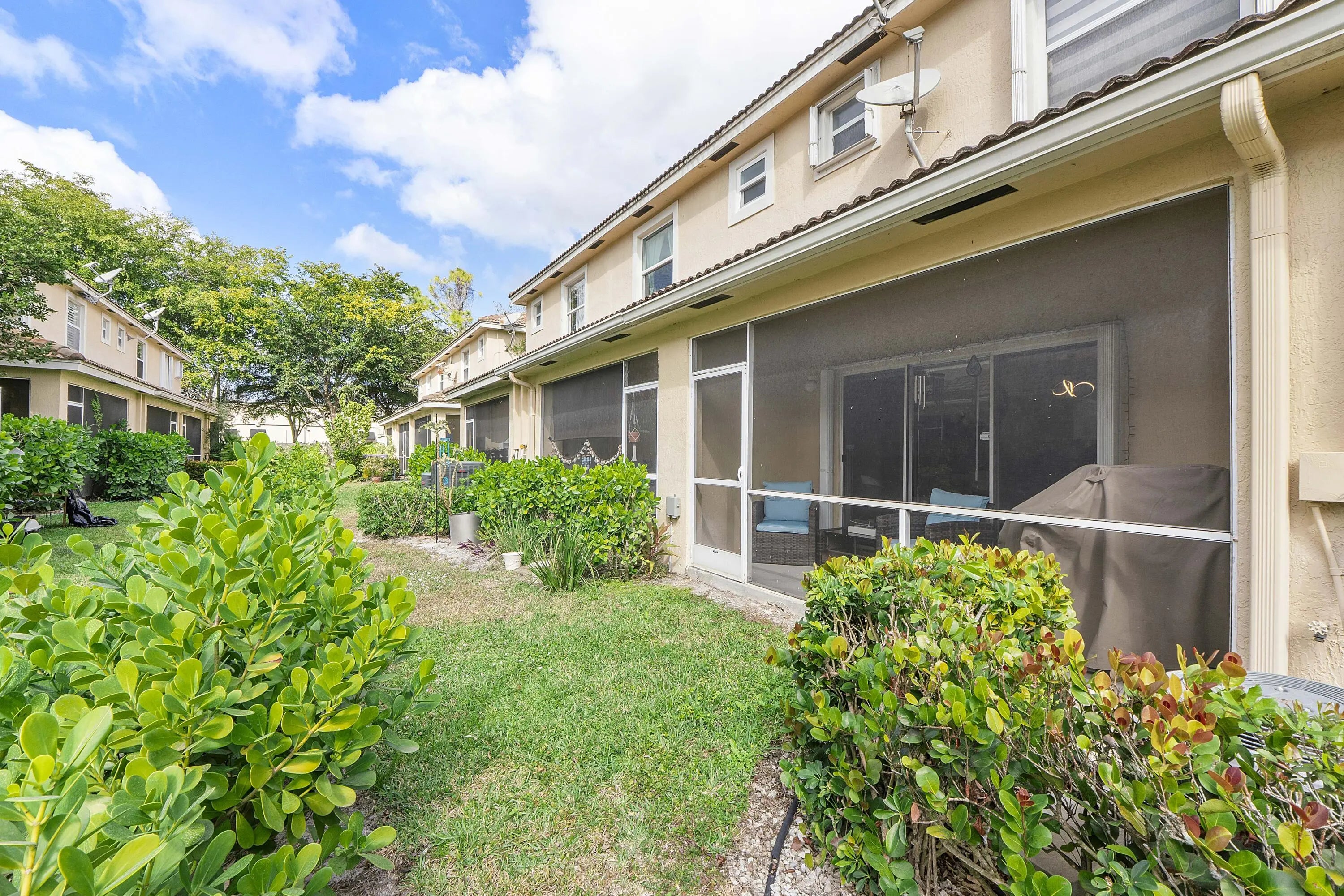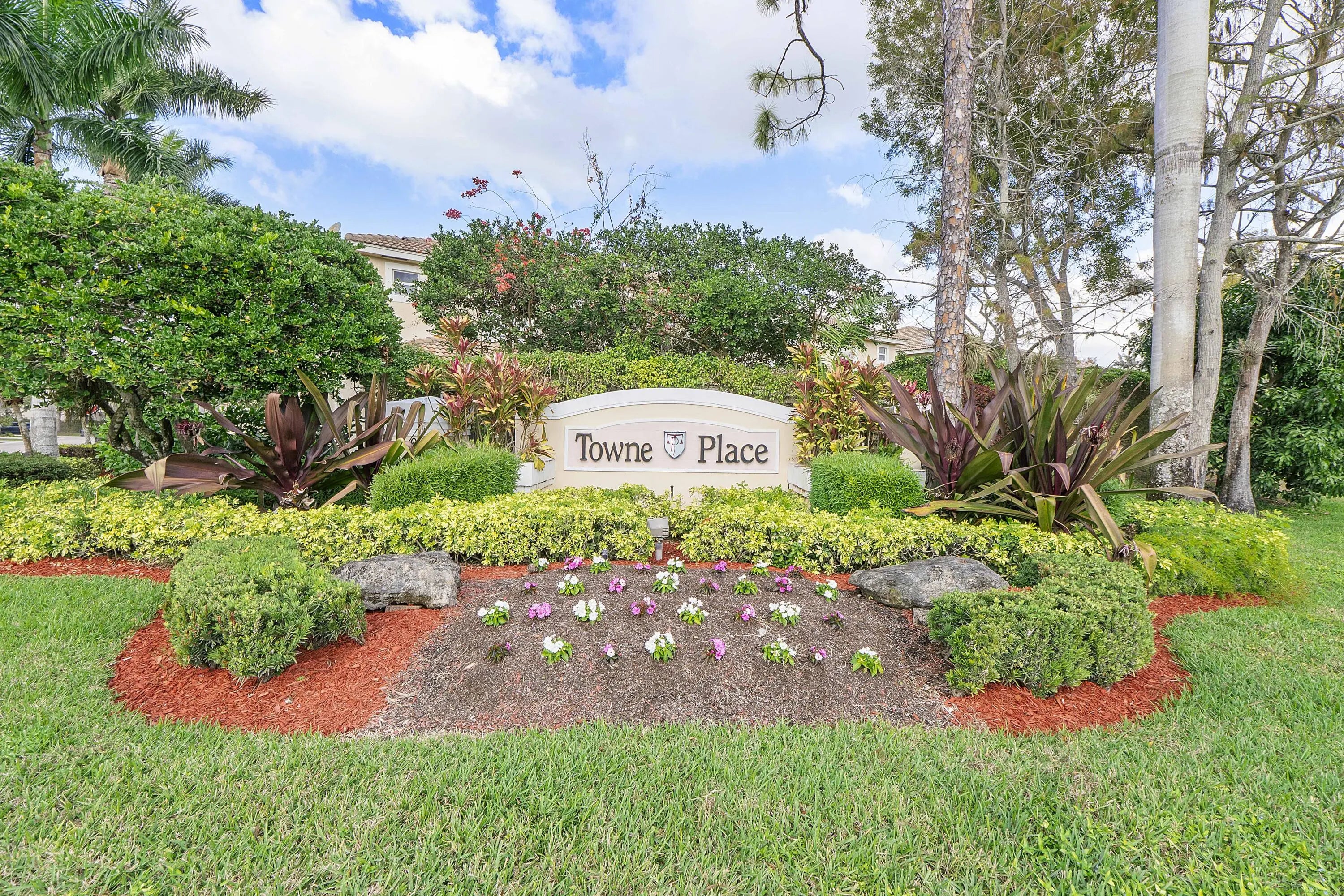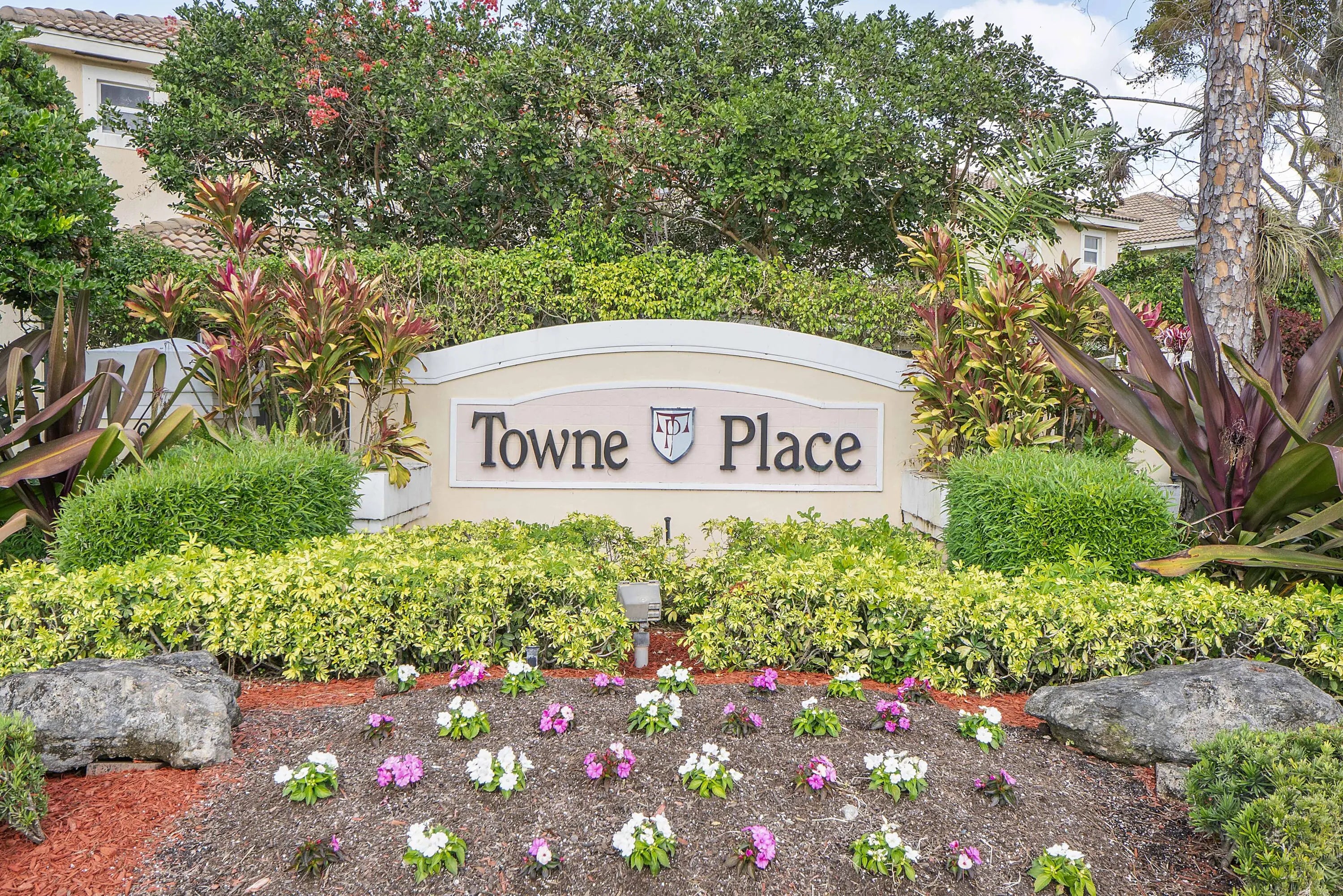 Welcome to your new happy place in the charming Towne Place. All hurricane protection. This spacious townhome features an updated open concept tiled first floor including a newer remodeled kitchen with SS appliances. Large countertop for easy entertaining. Pantry too! Half bath for guests as well. Enjoy screened patio (with storage) off the large open living room, for morning coffee or evening refreshments. Newer luxury window treatments. Upstairs boasts 2 large bedrooms with private bathrooms. Ample sized loft/flex room for office, BR or workout area. Primary suite includes a generous walk-in closet and brand new carpeting. Home includes one car garage, steps to community pool. Minutes to shopping, entertainment and top rated schools. Enjoy everything Equestrian in the city of Wellington