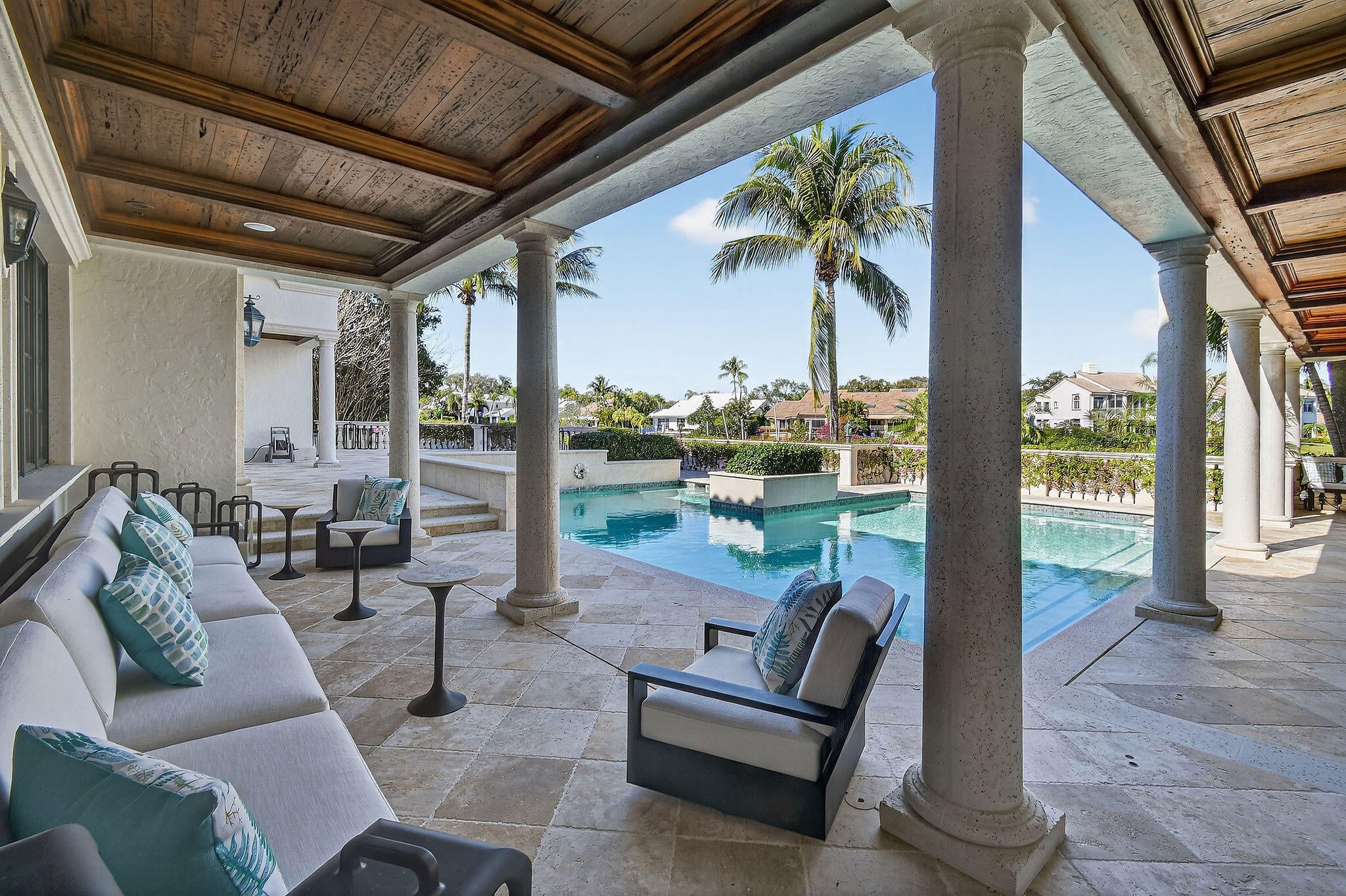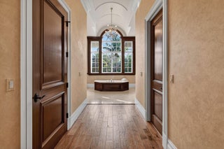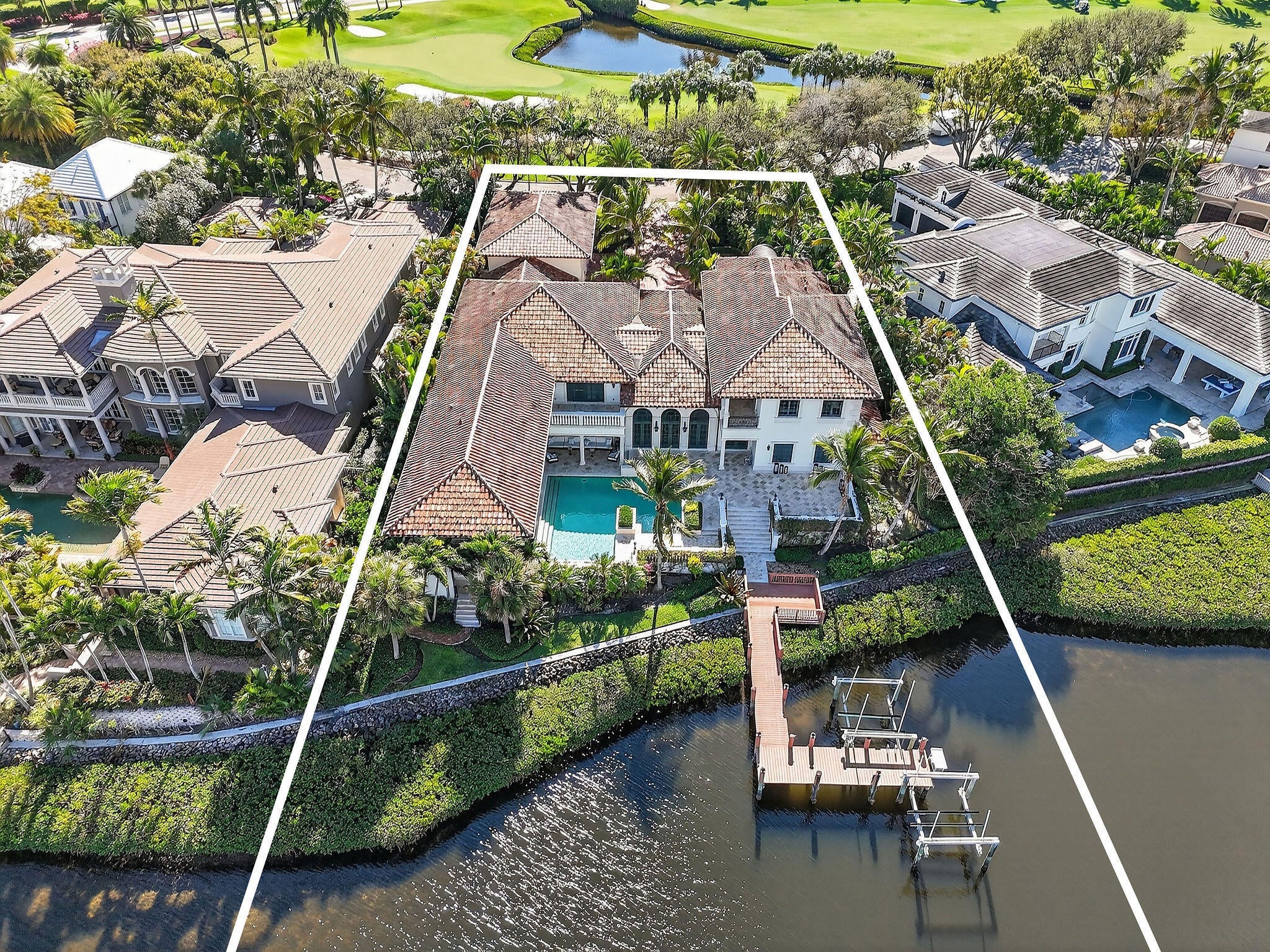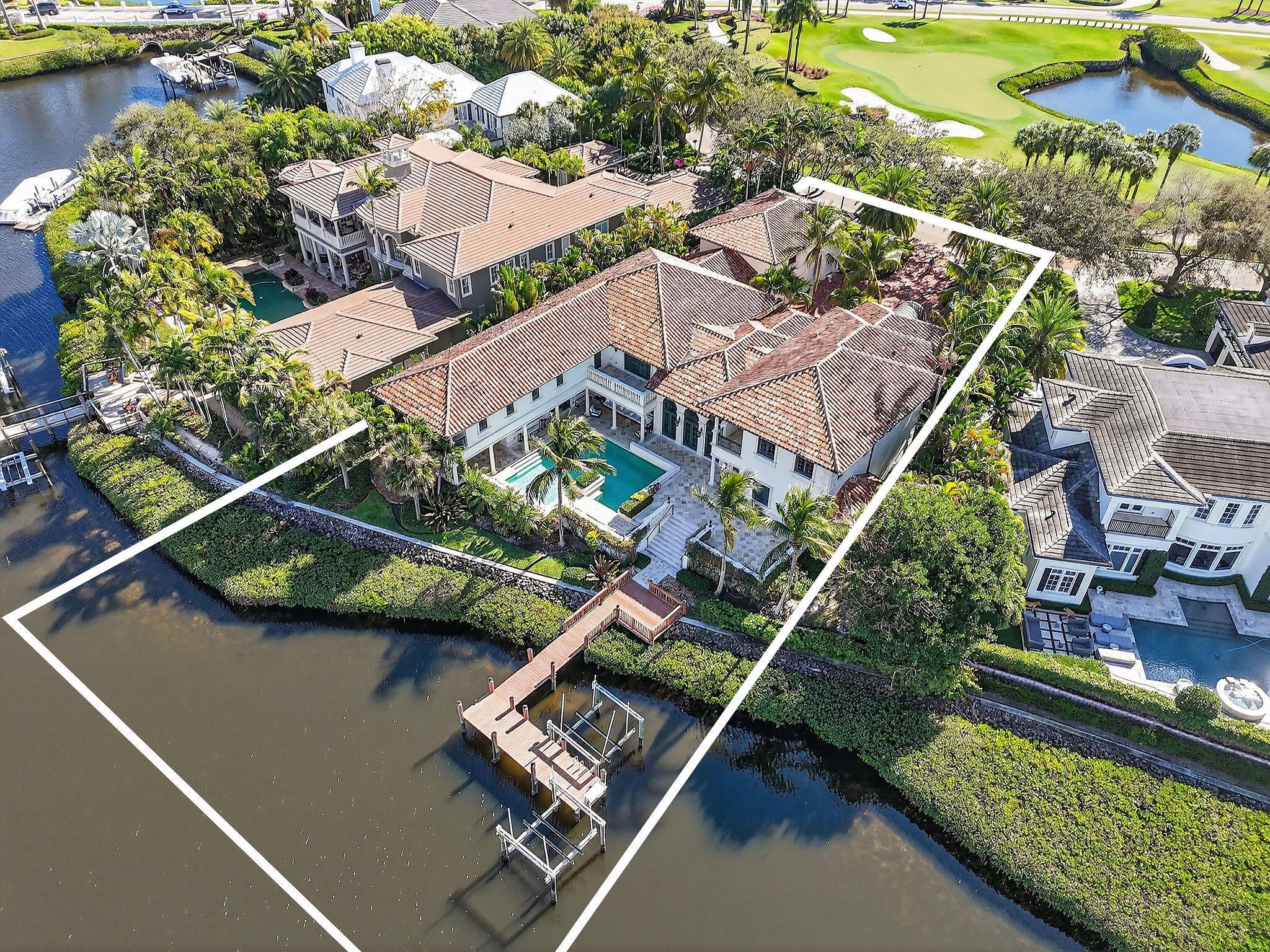 Set on a coveted cul-de-sac in the heart of Admirals Cove, 107 Schooner Lane is a rare waterfront and golf course estate offering extraordinary scale, privacy, and craftsmanship. Built by the renowned Turtle Construction and recently enhanced with major new renovations, this impressive residence encompasses approximately 11,200 square feet under air, on an expansive half-acre homesite. A grand arrival sets the tone, with a stately entrance, full-house generator, and commanding presence. Perfectly positioned, the home enjoys serene water inlet views on one side and sweeping golf course vistas on the other--without sightlines to neighboring homes or garages, creating a sense of complete seclusion. The interiors are both expansive and refined, featuring seven generously sized bedrooms,including two primary suites and a junior suite, complemented by eight full bathrooms, a half bath, and an additional powder room. Two private libraries, dual elevators, including a dedicated elevator serving the primary suite, and multiple gathering spaces enhance both comfort and functionality. Designed for elevated living and entertaining, the home offers two oversized family rooms, upstairs and down, two full bars for indoor and outdoor enjoyment, and a stunning wine room. Dual chef's kitchens anchor the home, each featuring 10-foot islands and a total of four refrigerators, ideal for hosting on any scale. A whole-house water purification system ensures uncompromising quality throughout. The estate is offered fully furnished with all-new, modern contemporary furnishings curated by a top decorator and sourced from a premier furniture house. Additional highlights include a state-of-the-art gym and media room, a completely renovated garage with custom his-and-her cabinetry, and seamless indoor-outdoor living. Outdoors, a private dock with two slips provides direct water access, while the home's superior location places the Admirals Cove clubhouse just a short walk away and A1A only minutes by car. The property includes a full golf membership, completing a truly turnkey offering in one of Jupiter's most prestigious communities. This is luxury living at its finest, where scale, quality, and location converge.