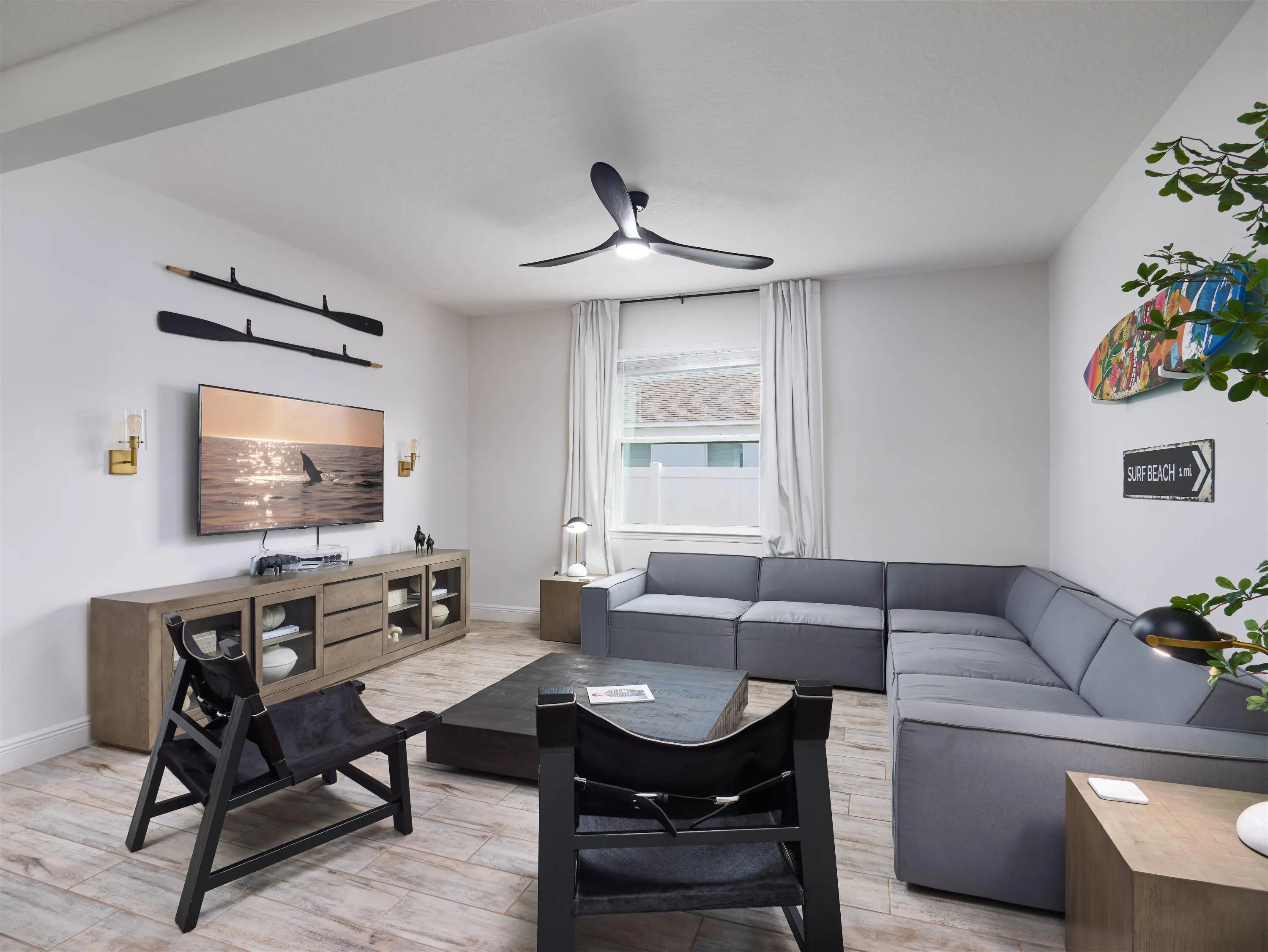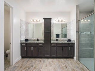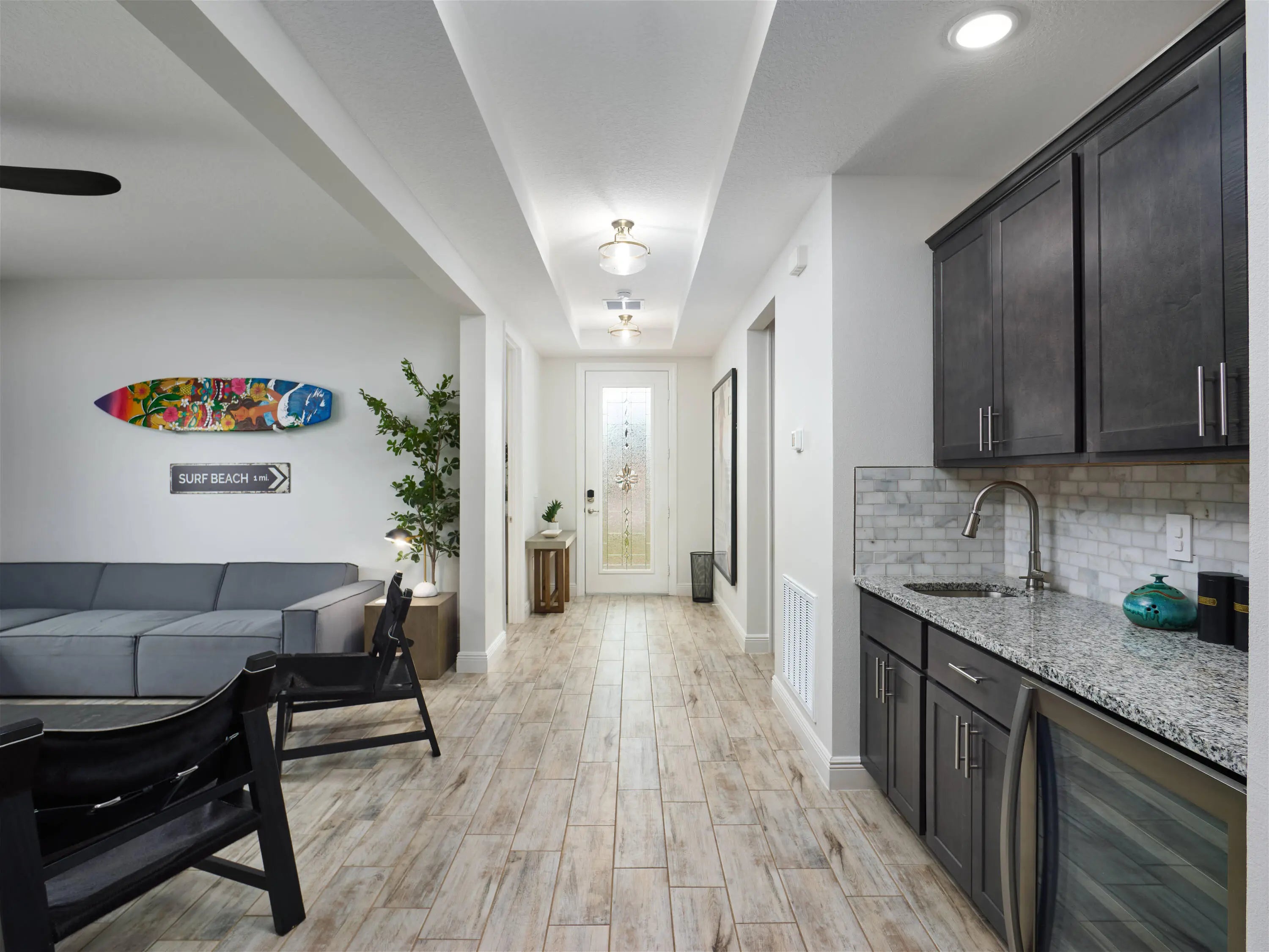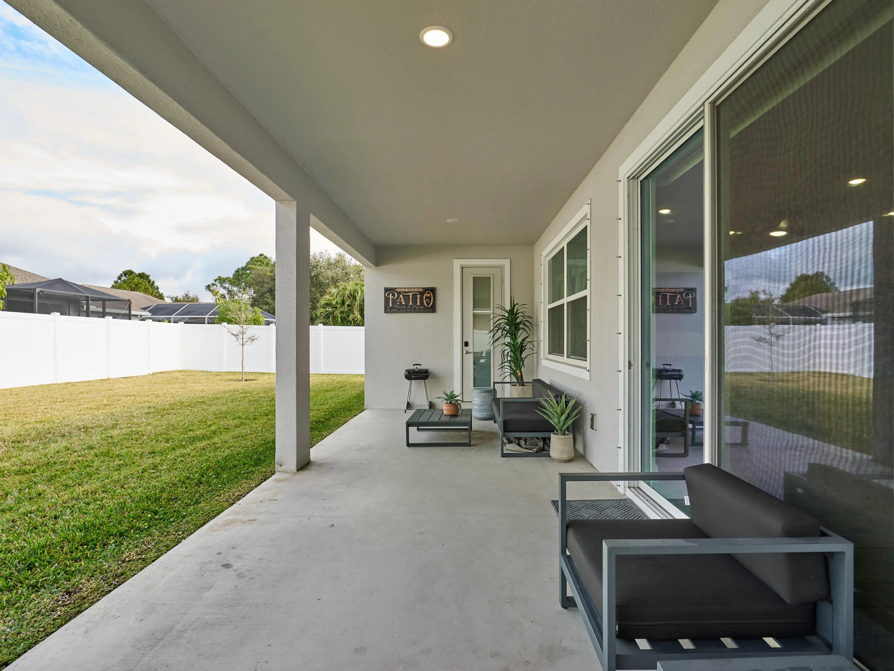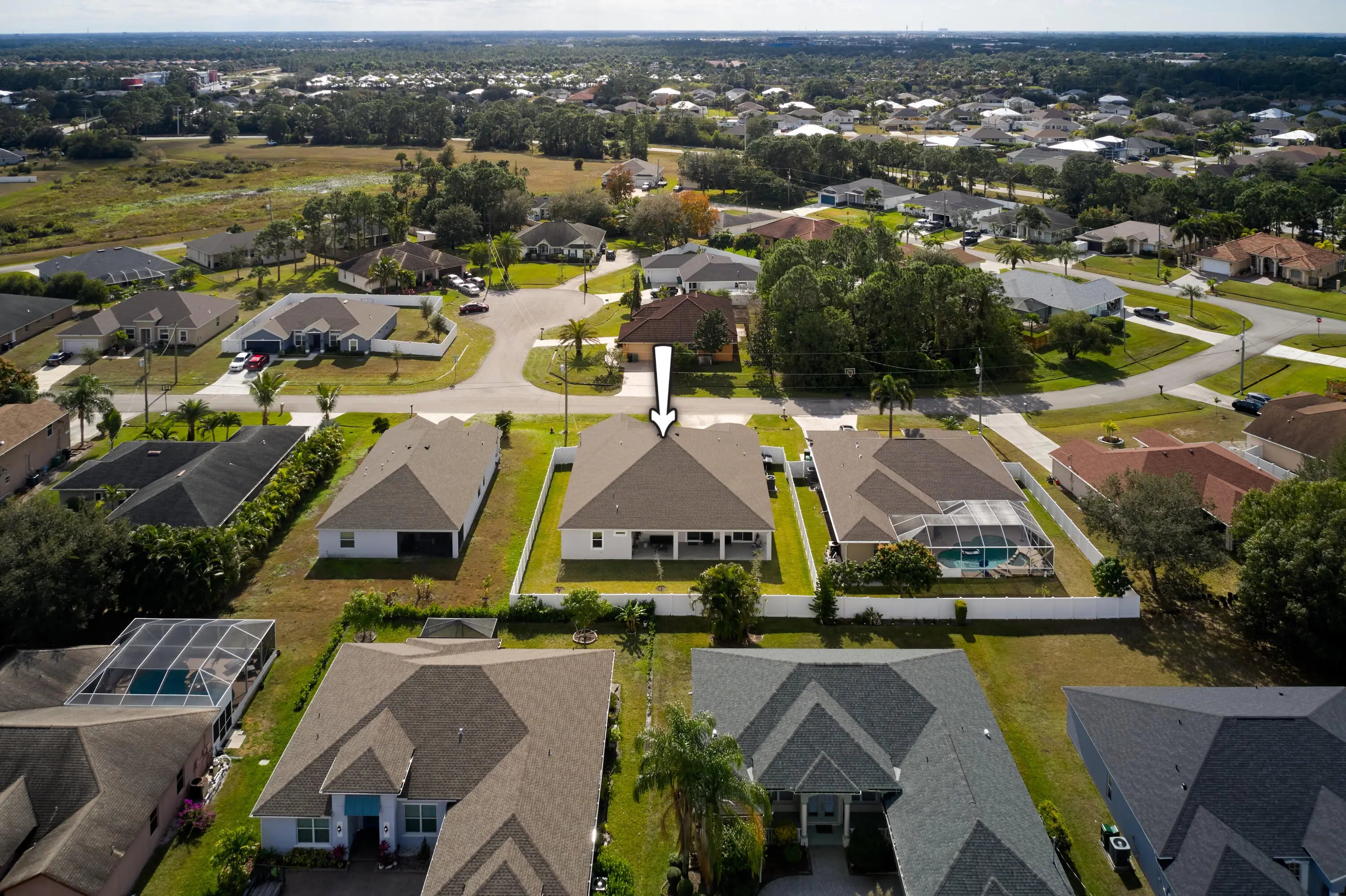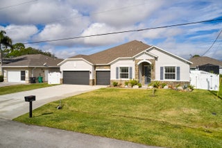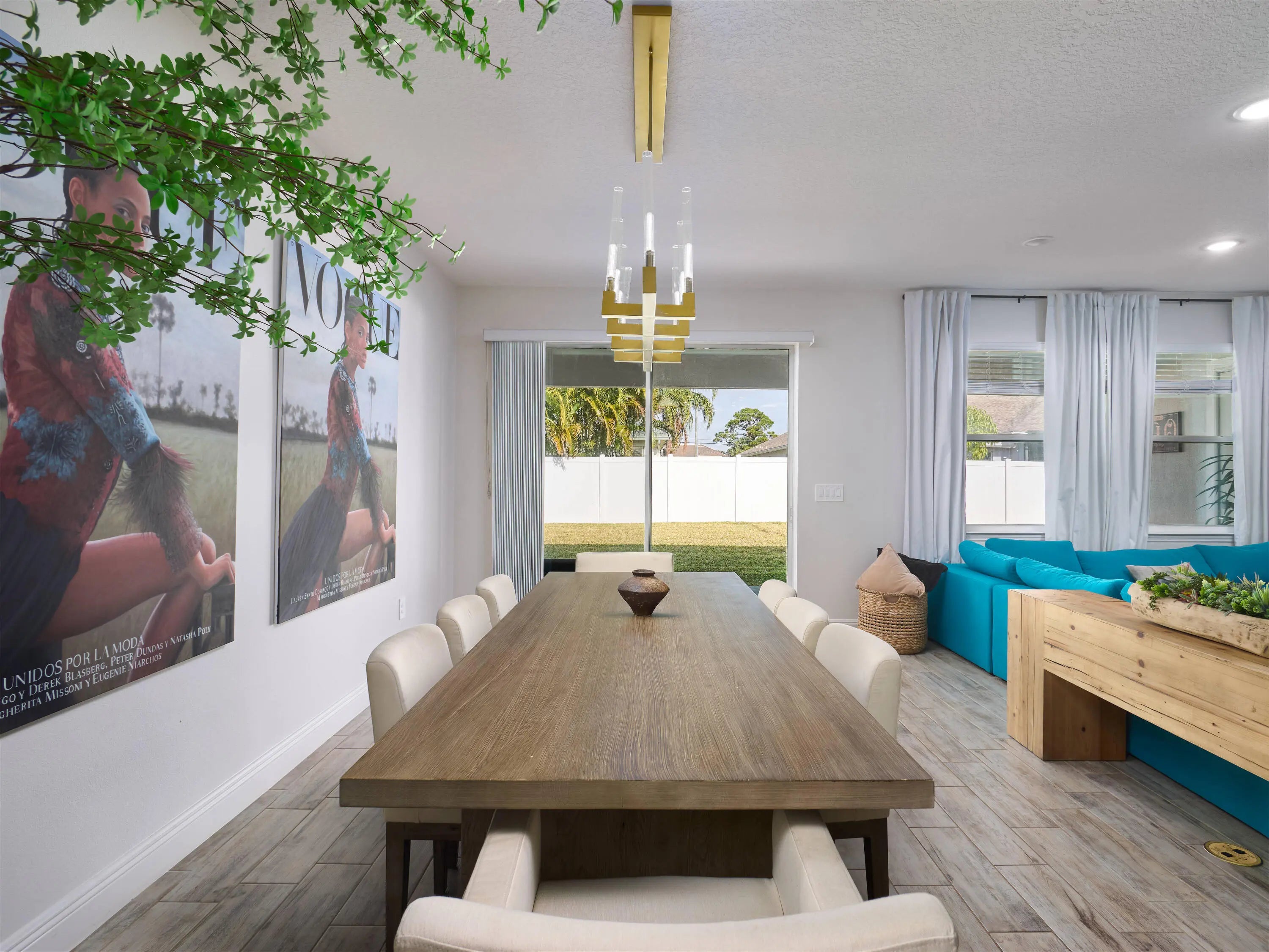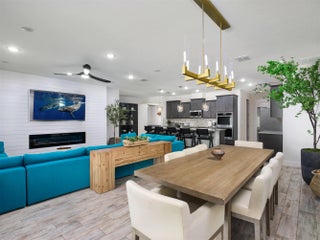 Step into this like new meticulously maintained home in the popular community of Torino in the northern section of Port St Lucie. This large newer 5 bed 3 bath 3 gar garage home is sure to impress and shows like a model home. Some of the many features include: Large custom designer kitchen with dark wood cabinets w/ soft close doors, double ovens, granite counters, stainless appliances, large island with seating for five, pendant lighting over the bar, tile plank floors throughout the home, modern fans and lighting, accent wall in living room with built-in electric fireplace, wet bar with wine cooler adjacent to the den, spacious walk-in closets, built in office in primary bedroom, stylish bathrooms with rain shower head and frameless glass doors, fashionable windows treatments, large