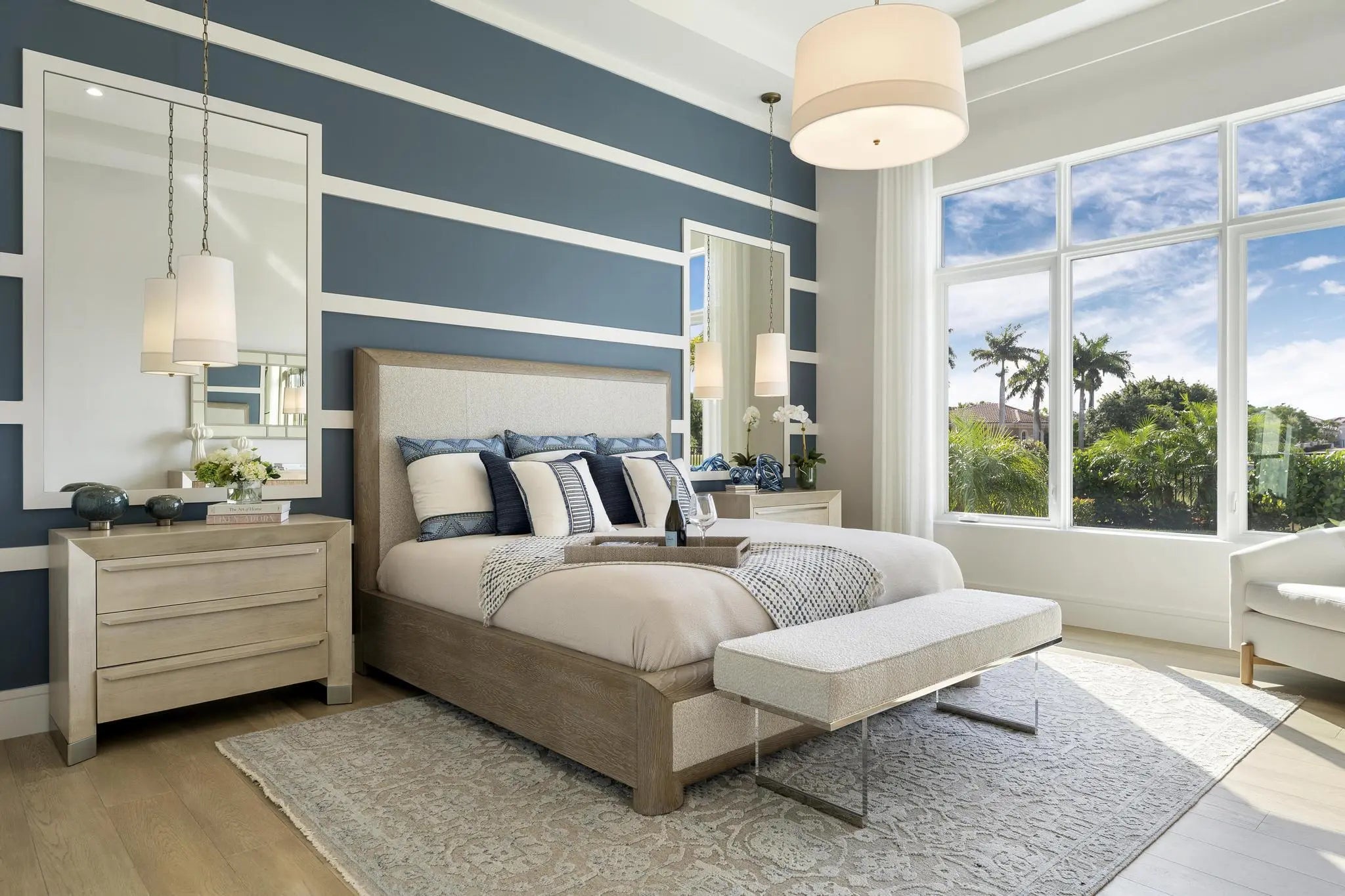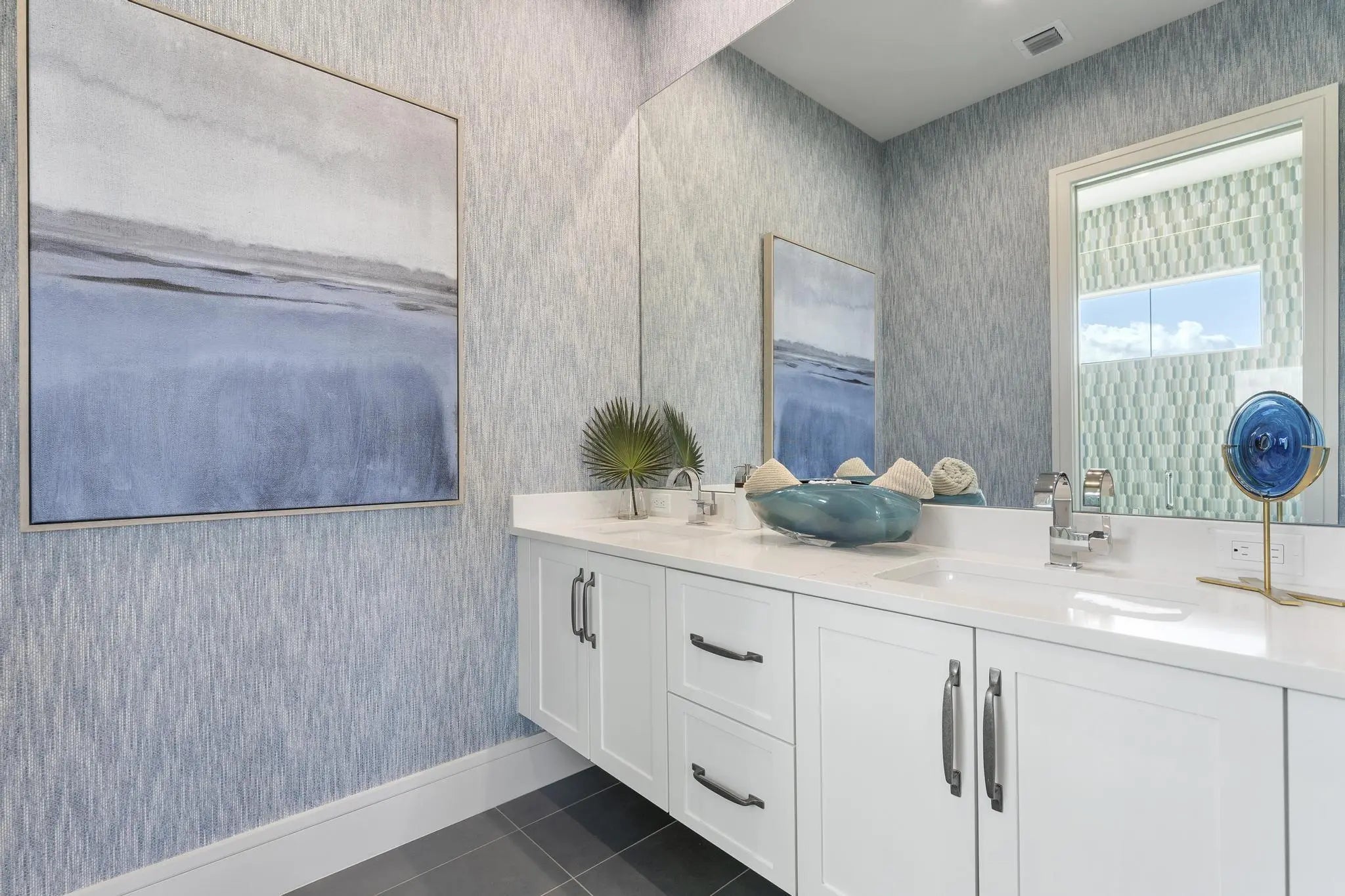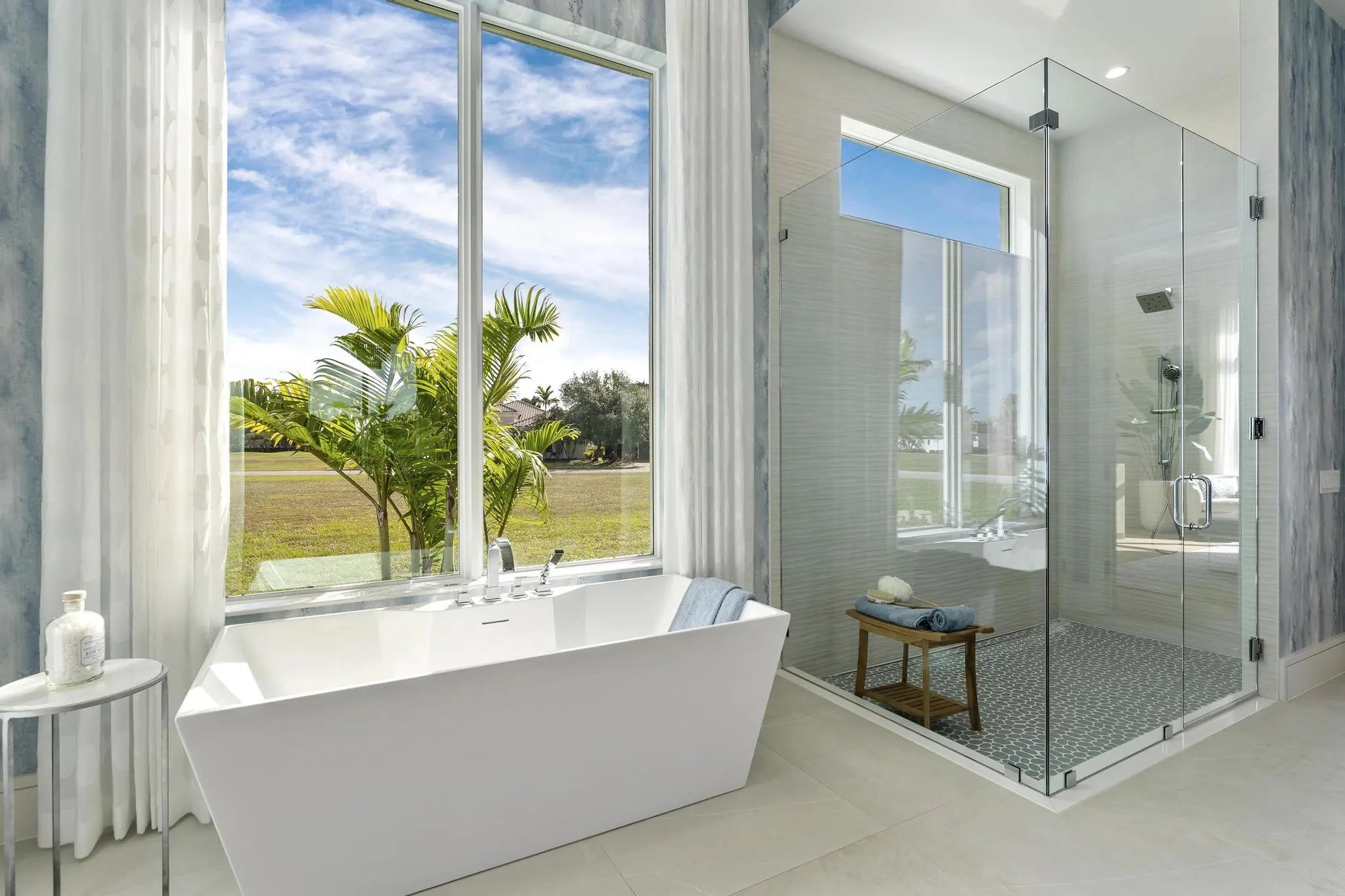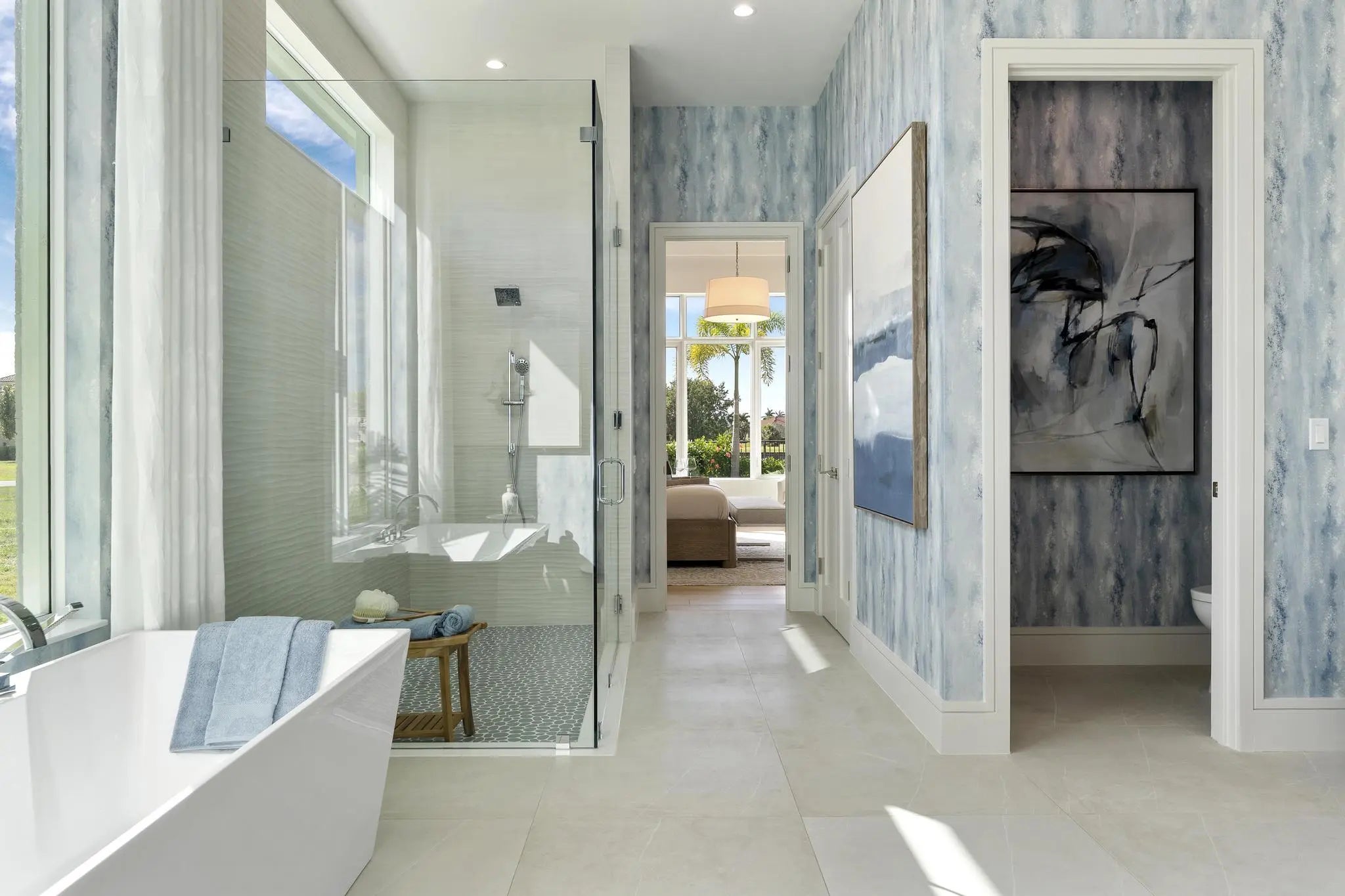 Beyond the gates of Tesoro awaits a lifestyle of luxury in this stunning model home by Ecclestone Signature Homes. Featuring three bedrooms plus a flexible den, the residence offers sweeping golf course and water views, premium upgrades, and designer finishes throughout. The Coastal Modern open floor plan boasts soaring ceilings and seamless indoor-outdoor living, highlighted by a spacious patio with a custom TV wall. Impact windows and doors add peace of mind, while the home's impeccable decor curated by a renowned South Florida designer completes this exceptional offering.