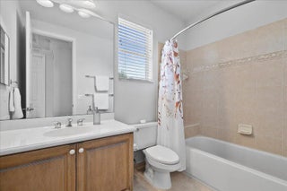 Welcome to this updated home in the desirable Palm Beach Plantation community. Featuring 3 bedrooms plus loft (could convert to 4th bedroom), & 2.5 baths, this home offers flexible living space & modern comfort on an oversized lot. Recent upgrades include a NEW ROOF, impact glass slider doors, & Levolor automatic blinds. The stunning kitchen showcases Quartz countertops, a large island w/ storage, stainless farmhouse sink, touchless faucet, & stainless appliances including a Viking gas stove, & microwave drawer. LPV flooring throughout, complemented by a Ring doorbell & camera system. Enjoy the private covered patio overlooking a heated pool & spa w/ a tranquil lake view--perfect for relaxing & entertaining. This exceptional home offers the ideal Florida style--don't miss this opportunity!