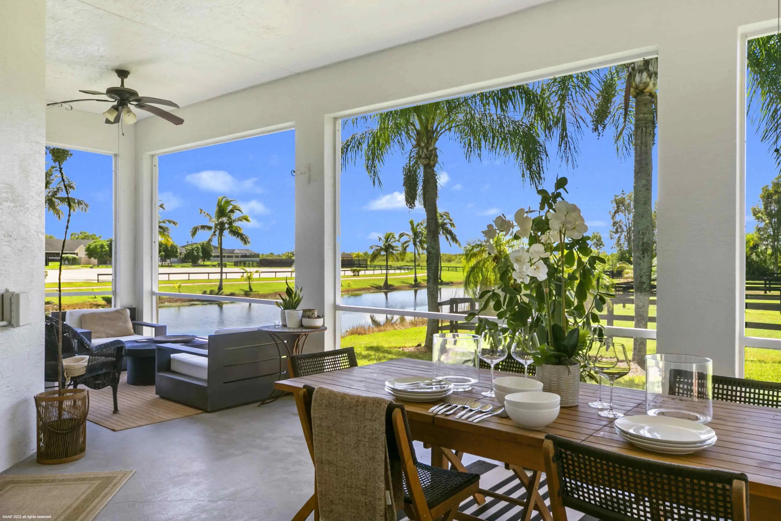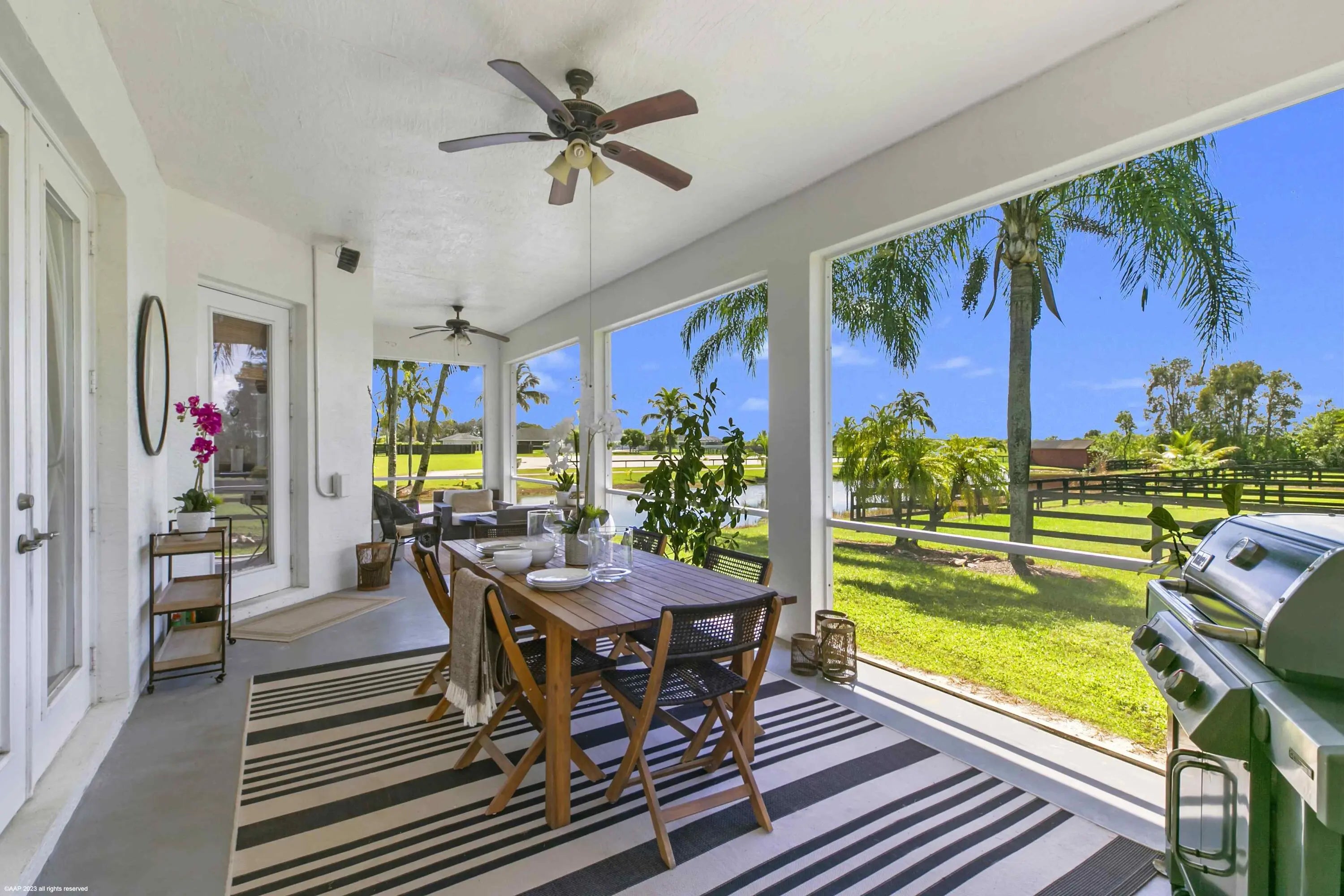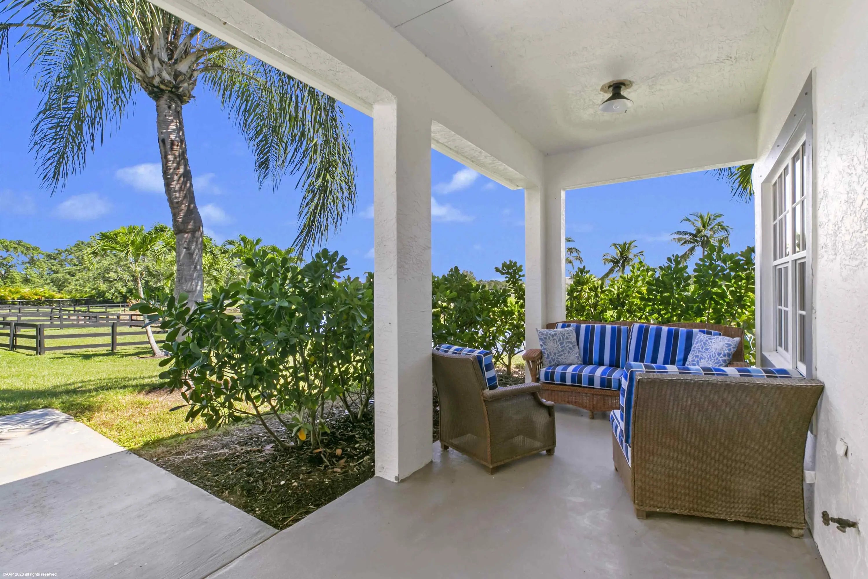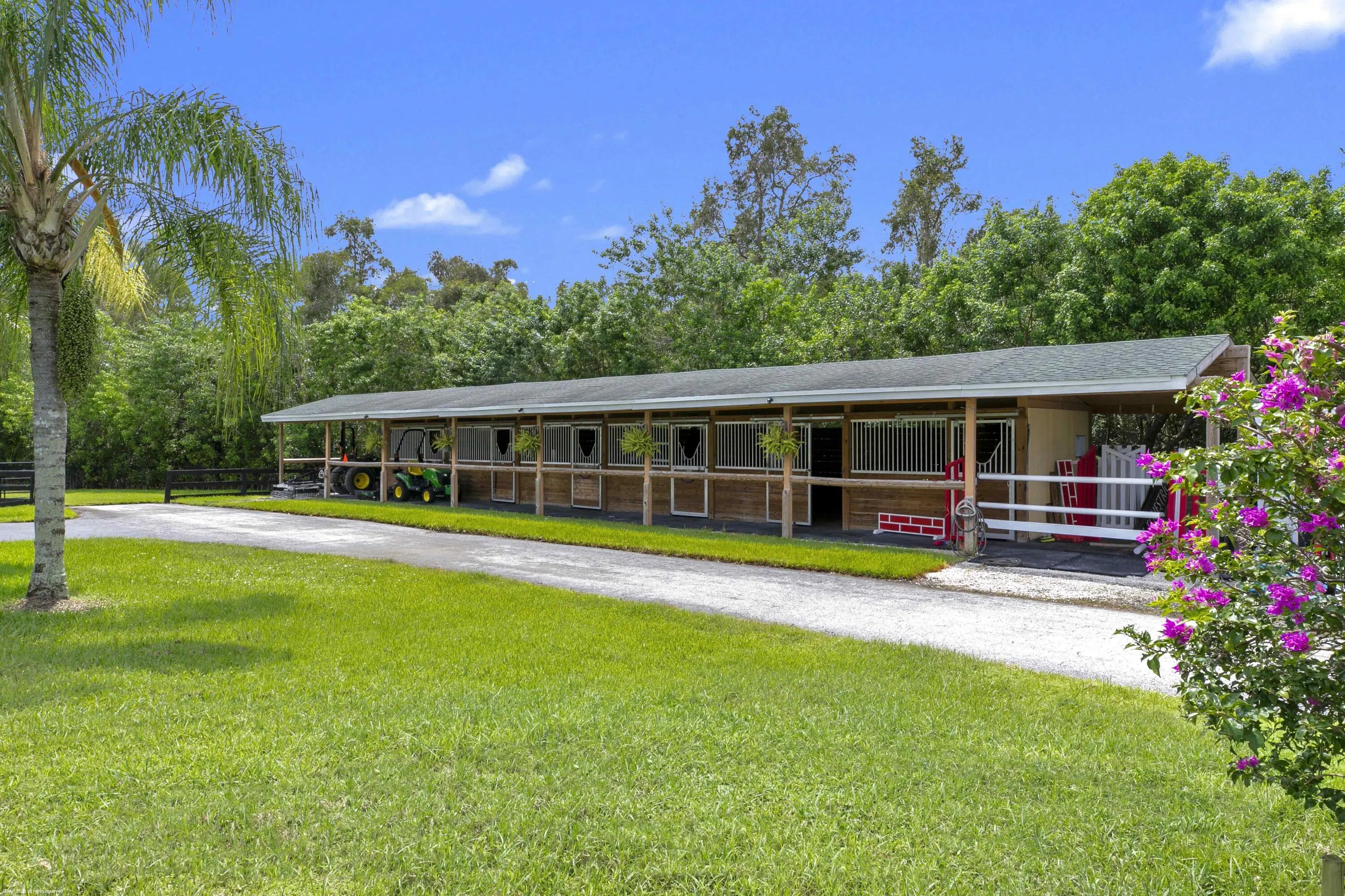 Best opportunity in Wellington!! Live inside the Palm Beach Point gates, but without the same rules and regulations and to a much more affordable price! This ultra private, well-equipped farm just under 5 acres, is located at the end of the street in Sunglade, Wellington and has so much to offer. The property features 2 barns, one 9-stall center-aisle barn with rubber pavers, a 1 bed/1 bath apartment, A/C'd tack & feed rooms, fly spray system, a full barn bathroom and 4 covered wash stalls. The second barn has 6 stalls and 2 covered wash racks. There is water and fans to each of the stalls and they are all matted.