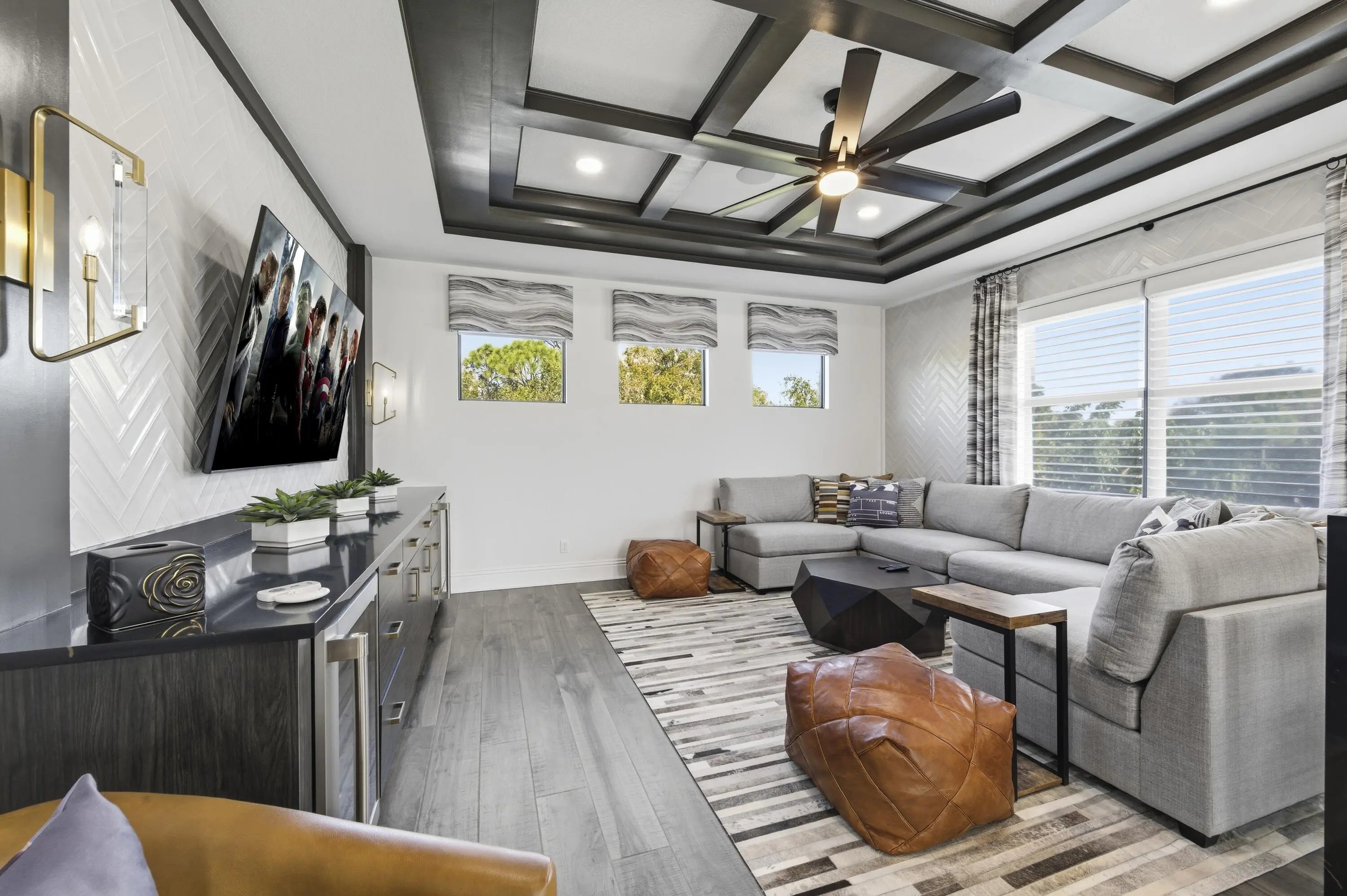 This move-in ready, fully furnished home sits on a rare oversized lot on a quiet cul-de-sac of Artistry Palm Beach. Located in the model row section, the street is free from through traffic offering exceptional privacy. This original model home, showcases all of the most extravagant upgrades and decorator-selected furnishings. The main living areas include a chef's kitchen with butler's pantry, elegant dining area and an expansive great room. The first-floor primary suite features a large walk-in-closet and spa-inspired bath with custom-tiled shower and soaking tub. Upstairs are three additional bedrooms and bathrooms and a large den/game room. The rear yard backs to a nature preserve and features a resort-style pool, spa, summer kitchen, and covered lanai. Luxury living at its finest!