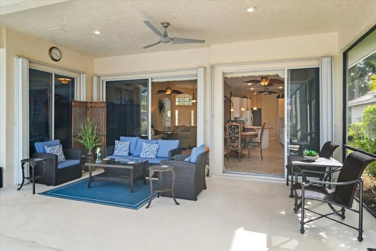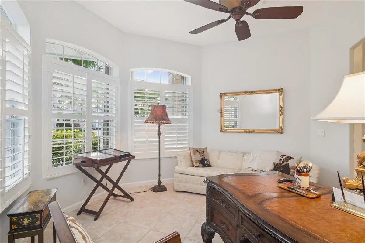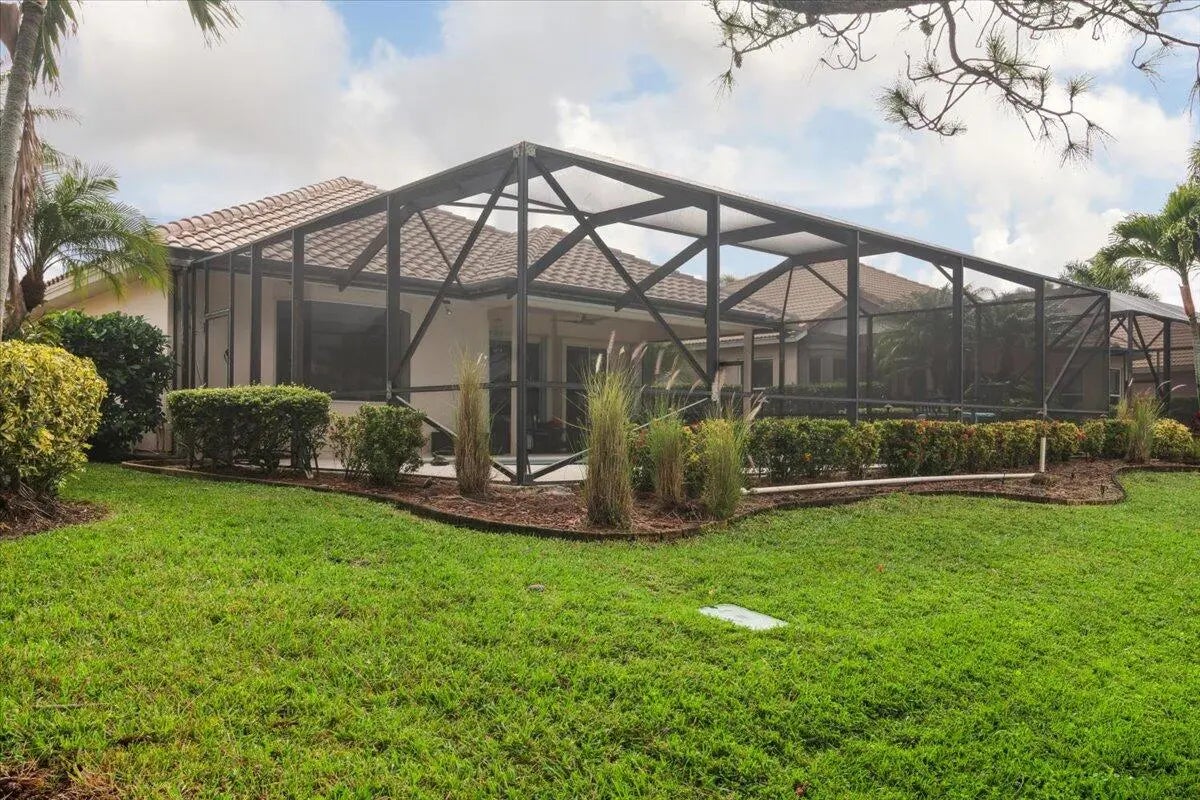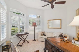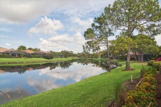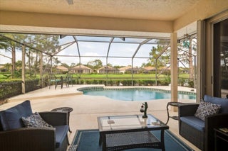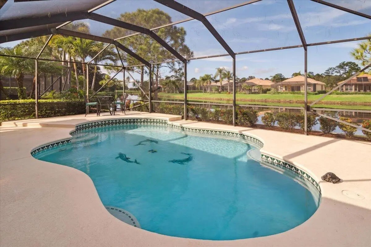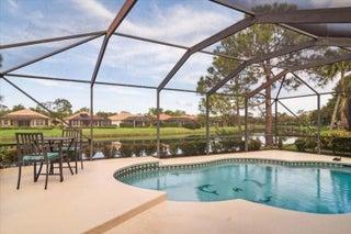 Welcome to this beautifully maintained home located in the highly desirable PGA Village- Oakhill HOA, ideally situated close to the front gate for easy access. This freshly painted 2bedroom 2bath PLUS DEN/OFFICE features a popular great room floor plan that is both open and inviting. Plantation shutters add timeless elegance throughout, while accordion shutters around the entire home provide convenience and peace of mind. Step outside to a covered lanai and enjoy a refreshing pool enclosed by a screened cage, all overlooking a serene lake, perfect for relaxing or entertaining. This home has been lovingly cared for, with roof valleys professionally redone in 2023, offering added value and confidence for years to come. A wonderful opportunity to enjoy comfort, style, and the Florida life.