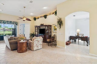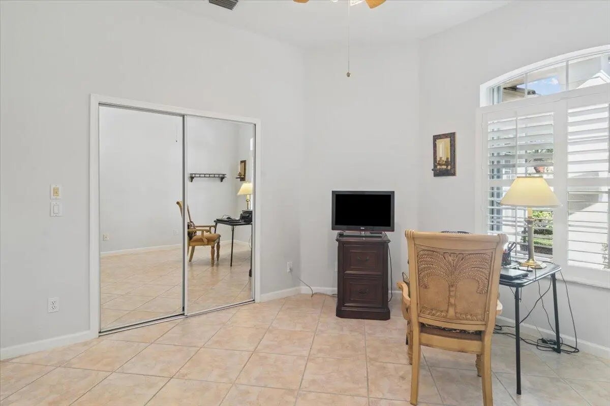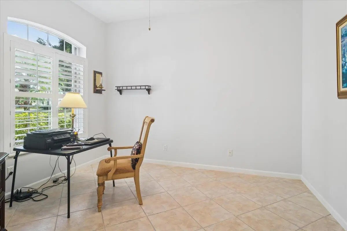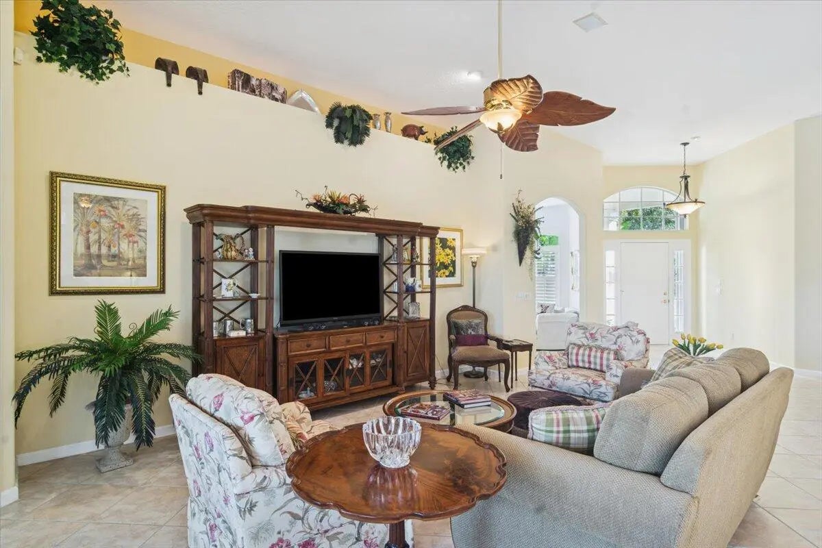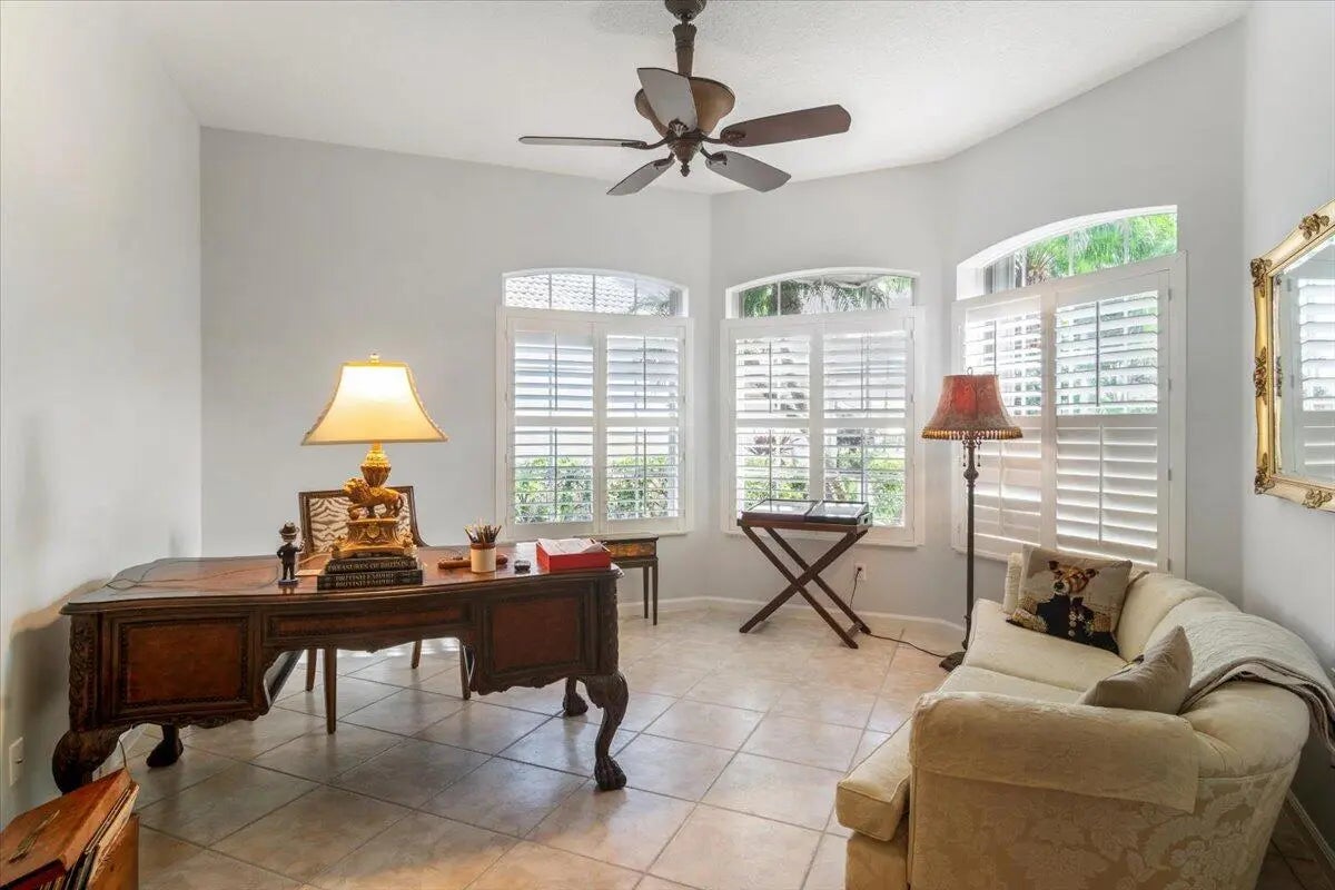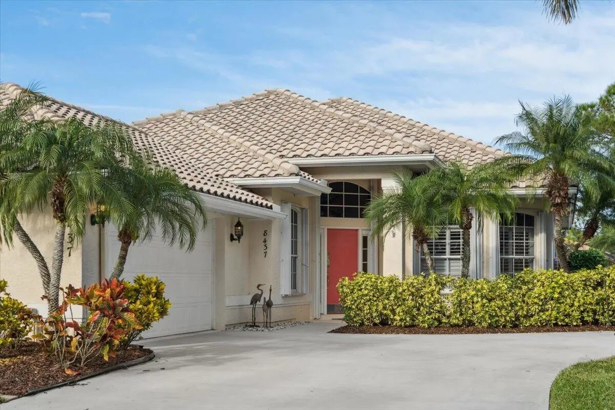 Welcome to this beautifully maintained home located in the highly desirable PGA Village- Oakhill HOA, ideally situated close to the front gate for easy access. This freshly painted 2bedroom 2bath PLUS DEN/OFFICE features a popular great room floor plan that is both open and inviting. Plantation shutters add timeless elegance throughout, while accordion shutters around the entire home provide convenience and peace of mind. Step outside to a covered lanai and enjoy a refreshing pool enclosed by a screened cage, all overlooking a serene lake, perfect for relaxing or entertaining. This home has been lovingly cared for, with roof valleys professionally redone in 2023, offering added value and confidence for years to come. A wonderful opportunity to enjoy comfort, style, and the Florida life.