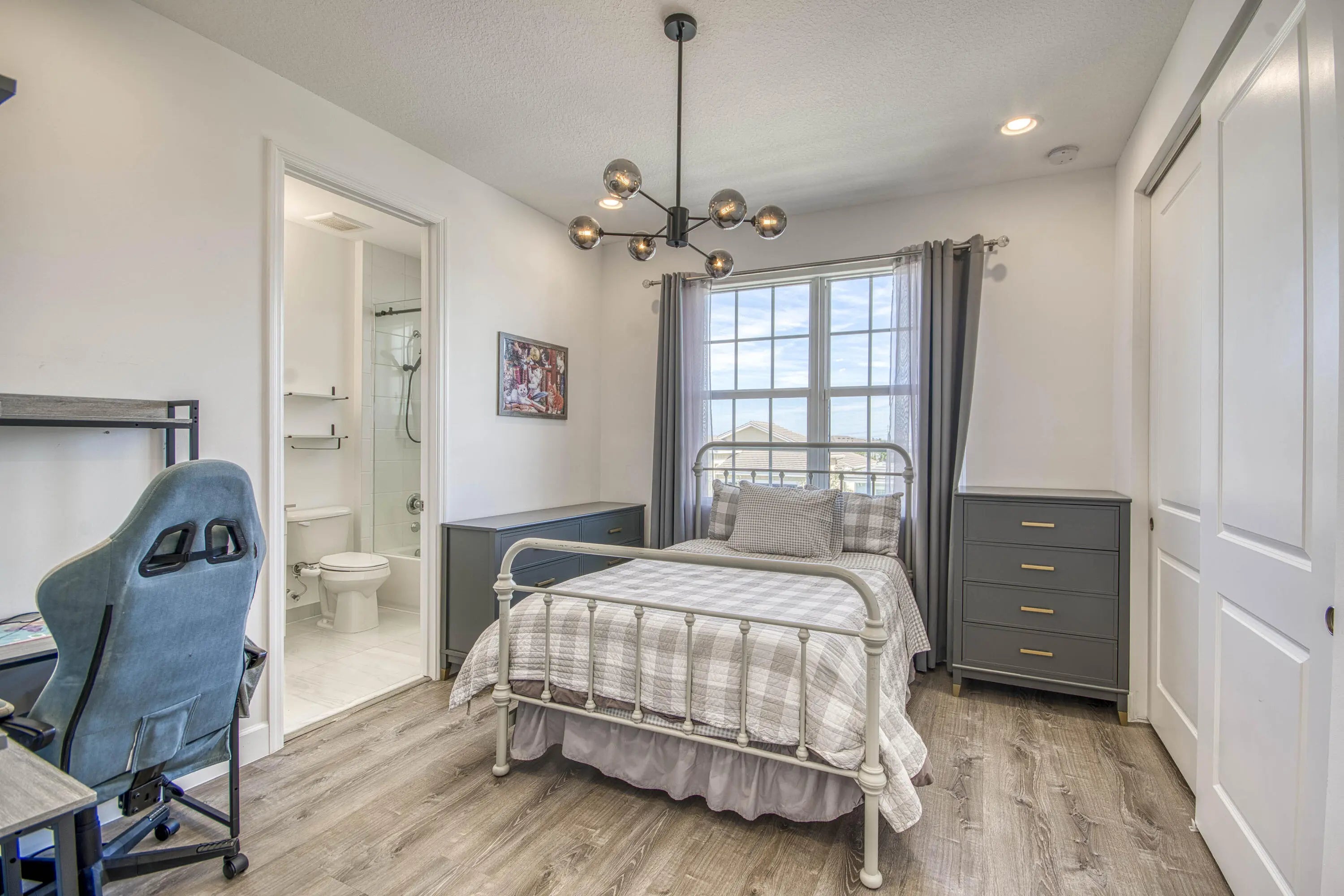 Available furnished at $6,000 or unfurnished at $5,500. Beautiful 4-bedroom + den, 4.5-bath home with a custom dressing room (converted 5th bedroom) and private heated pool and spa. Rare first-floor bedroom with full bath, closet, and private entrance -- ideal for guests, multi-generational living, or a home office. Open-concept layout with gourmet kitchen featuring built-in gas range, dual ovens, and large island overlooking the backyard oasis. Upstairs offers luxury vinyl plank flooring and an expansive primary suite with pool views and spa-like bath with tub and separate shower.