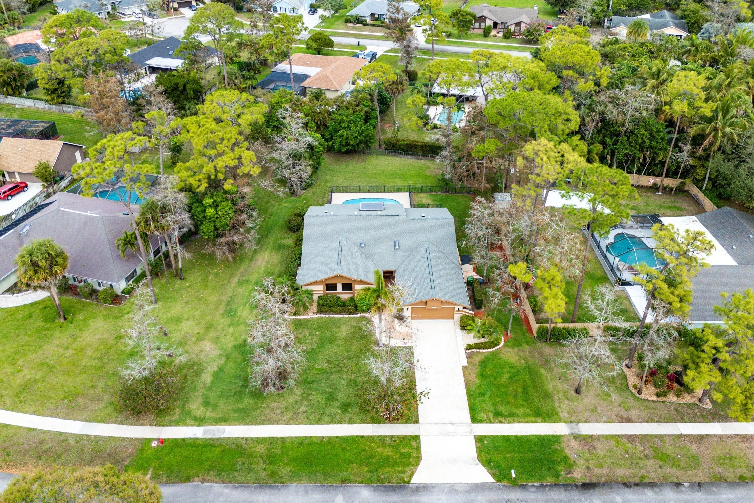 This beautifully maintained 4 bedroom, 2 bath home is located in the heart of The Pines, a private community with no HOA. Set on a generous 1/2 acre lot, the property offers exceptional privacy and tranquility. The open concept custom kitchen features granite countertops, updated stainless steel appliances, and abundant cabinetry, seamlessly flowing into spacious living and dining areas.Hardwood flooring enhances the main living spaces, while laminate flooring extends through the bedrooms and primary suite. Step outside to a private backyard featuring a sparkling pool and expansive patio, perfect for entertaining or relaxing. Additional highlights include an interior utility room with washer and dryer, plus an extended garage offering ample storage.