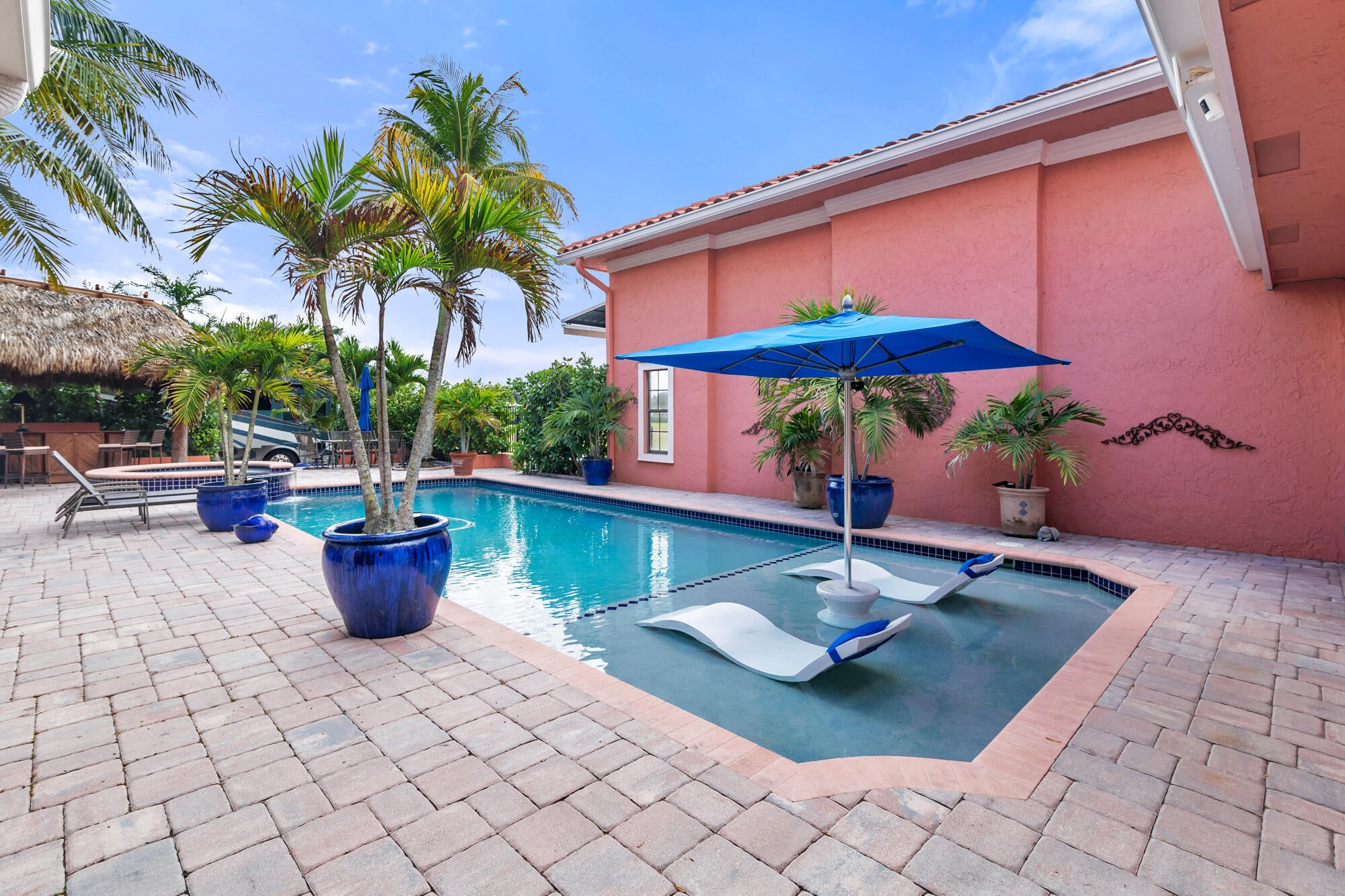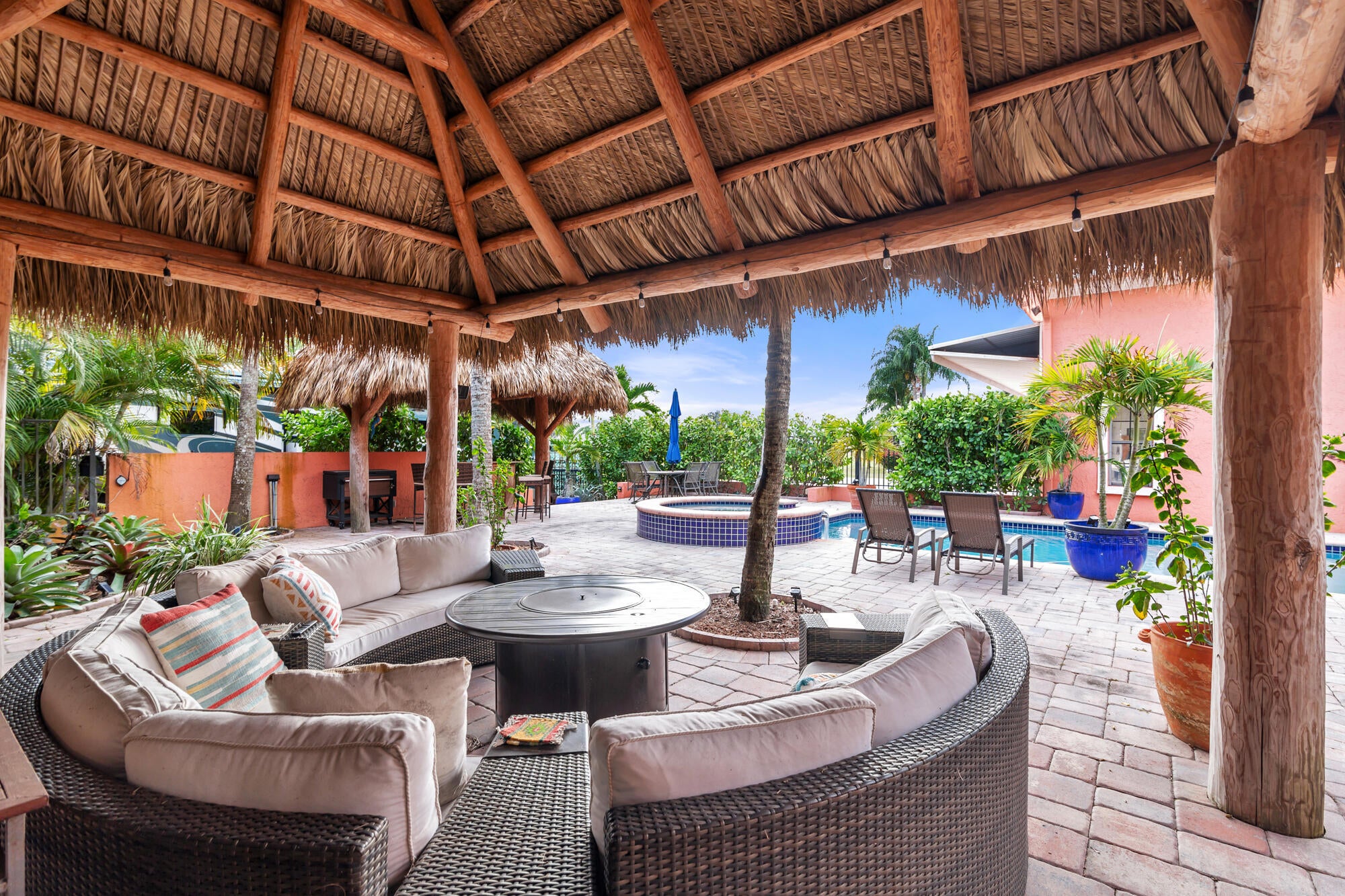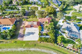 Beautifully situated 1+ acre Aero Club Hidden Treasure! Currently the lowest priced direct taxi-way home with a hangar in the community! This lovely 5 Bedroom home features a split floorplan with a stairway leading to 3 Bed/3Bath including the Primary Bedroom. The kitchen features an island with fully equipped appliances including a viking gas range (500gal propane tank), sub-zero refrigerator with freezer, walnut cabinetry, and a spacious dining area. The large open family room off the kitchen features a coral wood-burning fireplace. An enormous sparkling heated pool + jetted spa makes for those perfect pool days. The outdoor patio has two large tiki huts perfect for shade and entertainment.This home also offers an attached 40x60 hangar with an upstairs loft that can used as an office or flex room and offers a full bathroom with patio area perfect for watching sunsets! This room has a separate entrance from the main house for ultra privacy for friends/family/guests. In addition to the circular driveway, a separate driveway was installed for RV/Hangar access on the western side of the property (see photos). It is important to note that this is 1 of 5 homes that backup to the community tie down area which means nobody will build behind you. Whether you are looking to move right in, renovate, or develop your dream home on this oversized lot, the opportunity awaits. The Wellington Aero Club (FD38) has a 4,000ft paved and lighted runway with a PAPI system in place that can accommodate jets up to 12,500lbs. The Aero Club is home to many aviation enthusiasts and entertainment/shopping venues are all readily available for residents nearby.