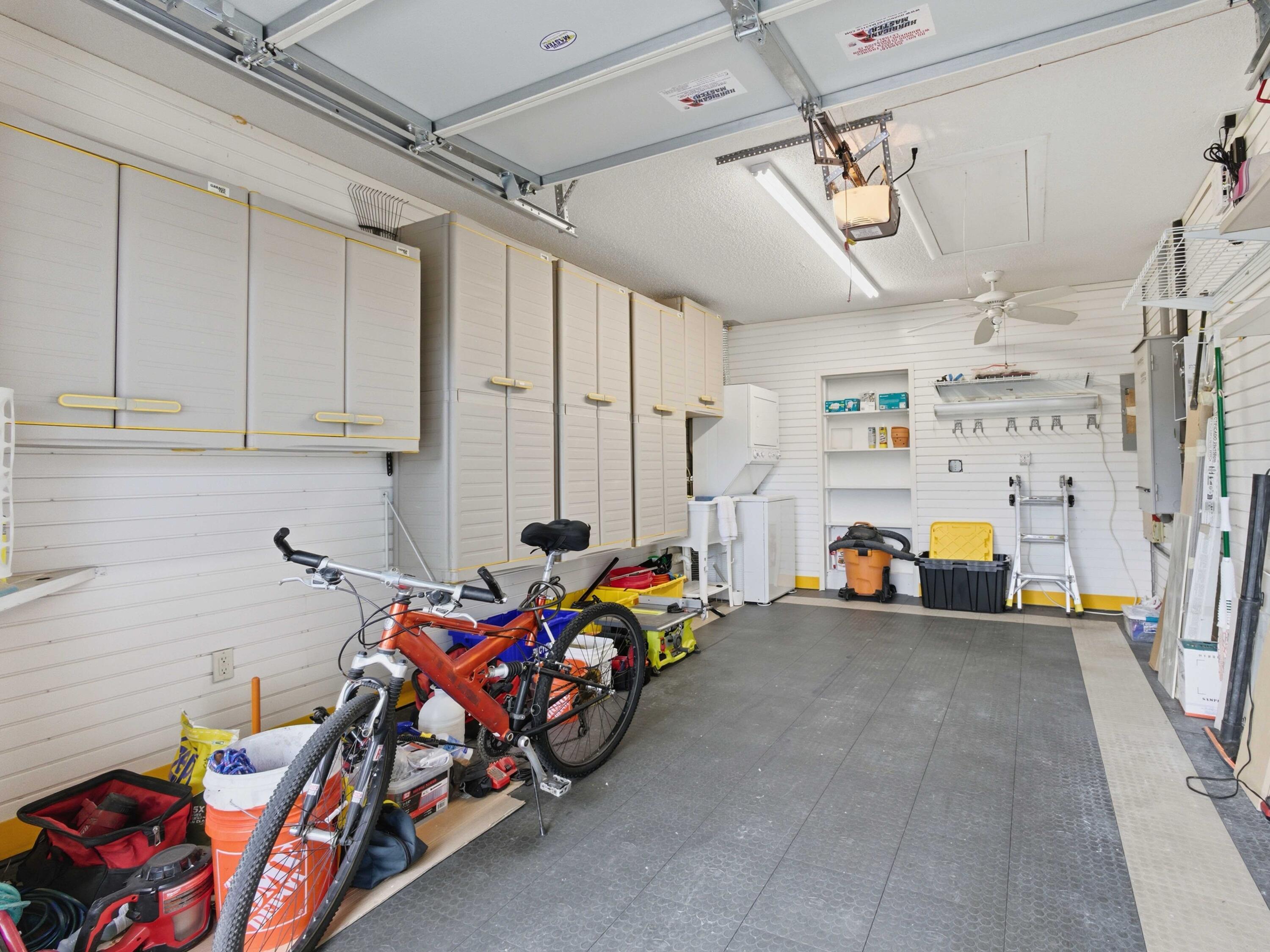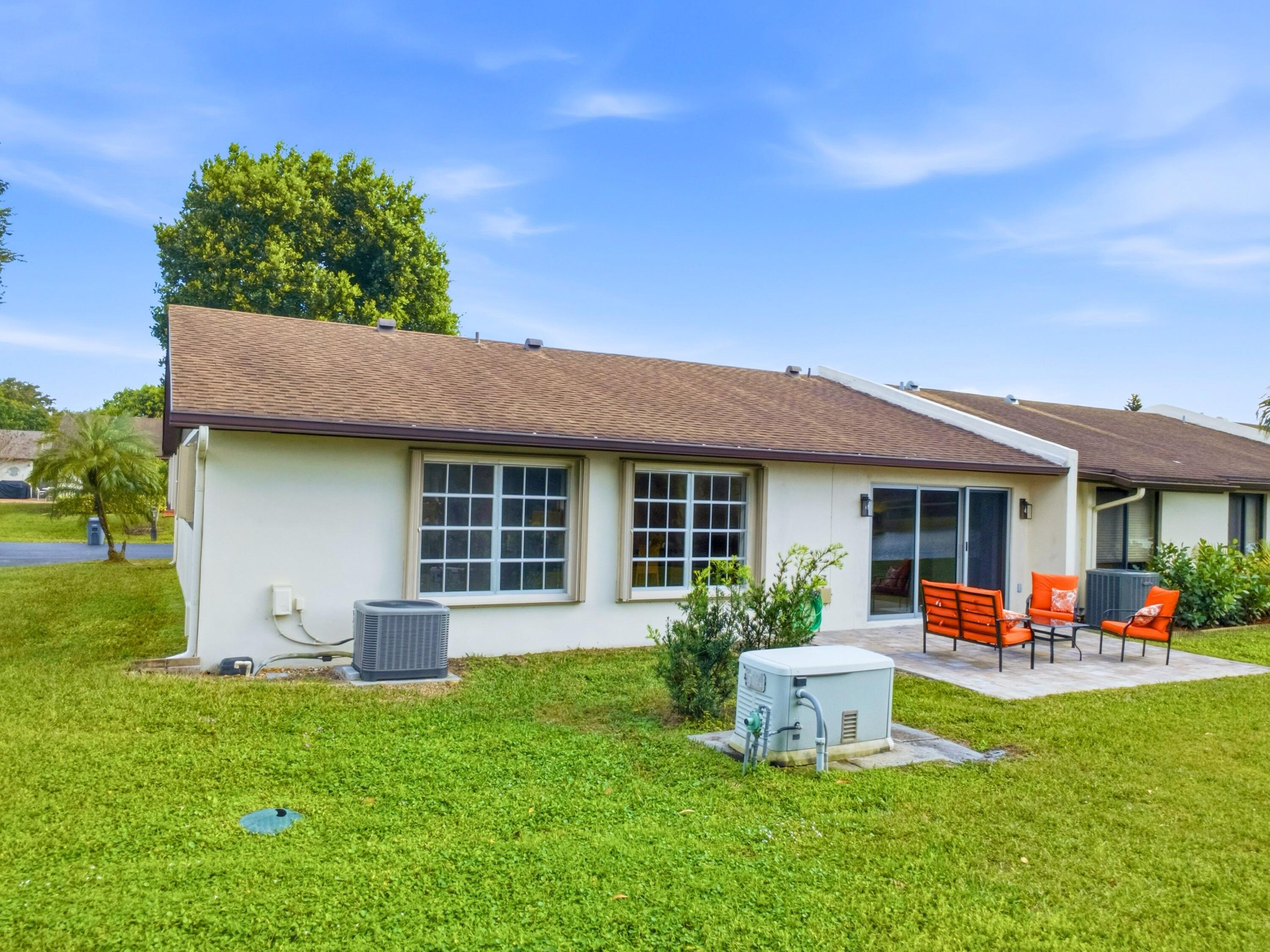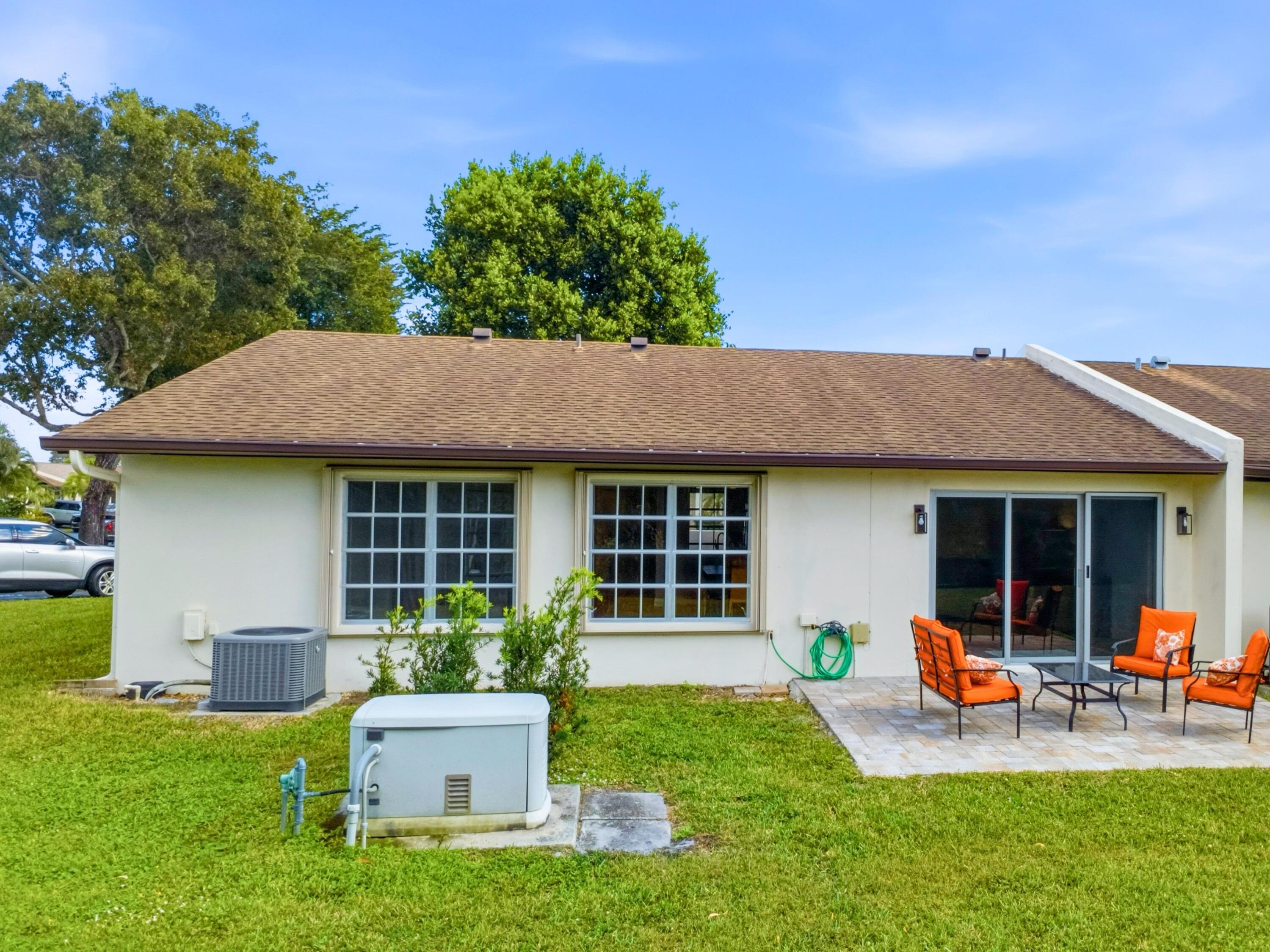 Beautifully renovated villa with absolutely stunning water views and, incredibly, this villa has a WHOLE HOME BACKUP GENERATOR! Brand new kitchen features granite countertops, cabinets, stainless steel appliances, Baths have granite as well. New flooring throughout. Custom 1 car garage professionally built out with all three walls offering adjustable shelf and cabinetry and room for vehicle. It is like having the storage space of a typical 2 car garage! Full accordian shutter protection for glass and new hurricane rated garage door! This unit shows phenominally! Photos coming soon! Click on ''more'' for extensive list of all renovation improvements. NO POPCORN!! Smooth Ceilings Light and Bright Fresh paint throughout. Lifeproof Luxurios Waterproof Vinyl Plank Flooring Throughout All New Contemporary Single Panel Solid Core Interior Doors, Modern Neo Trim and Base All new modern lever handle brushed nickel lock set hardware. Designer Top-Down Bottom-Up Window Blinds for Privacy and Light. All new electrical outlets, switches, ceiling fans, and lighting. Walk in therapeutic tub in PBR. New Modern European Design Kitchen Cabinets, Granite Counters and Wood-Look Plank Tile Floor New GE premium stainless steel appliances. 4 Stage Water Filtration System at Sink Tap Paver patio new 2022 with westerly water and fabulous sunsets and privacy. Oversized garage with Garage Tek Storage cabinets and wall hook system throughout. Front and garage door Schlage keyless deadbolts. New Rated Rear Slider, Front Door and Garage Door 1-23-23 Roof replaced 7-11-2018 AC Installed 9-6-20 Serviced 9-20-25 UV Light installed 2022 Generator Serviced: 8-26-25 Tankless Water Heater New 4-1-24
