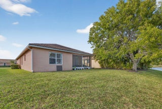 Least expensive waterfront property in the community! Beautifully maintained 3BR/2BA lakefront home in the gated Heritage Oaks community of Tradition. This single-story residence features tile flooring throughout, open layout, and a spacious kitchen with stainless-steel appliances, breakfast bar, tile roof. Primary suite offers a walk-in closet, walk-in shower, and vanity makeup station. Enjoy peaceful lake views from the covered, screened-in patio and relax in the tranquil backyard. Enjoy resort-style amenities including clubhouse, fitness center, pool, and hot tub. Cable, internet, security, lawn maintenance, pest control included w/ HOA. Passed 4 point inspection. Insurance premiums attached. Prime location near Tradition Square's shopping, dining, and easy I-95 access. Move-in ready!