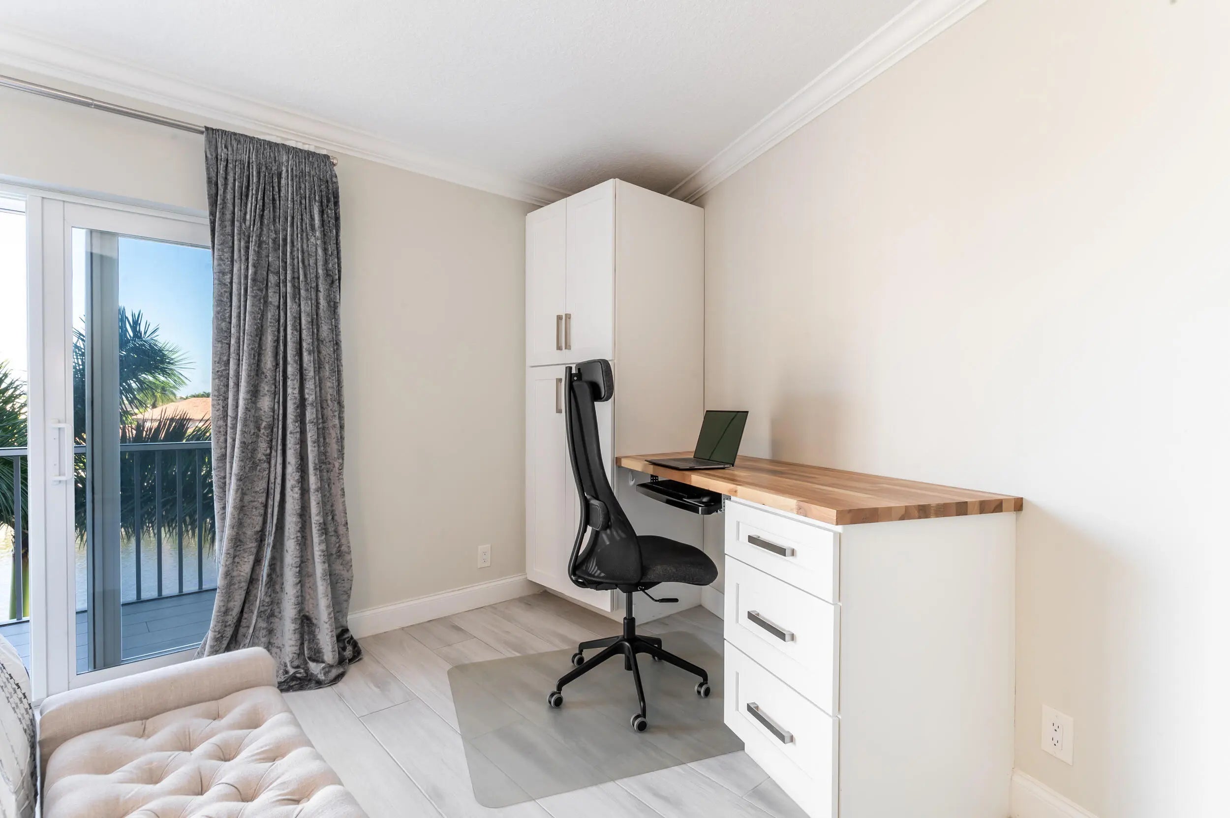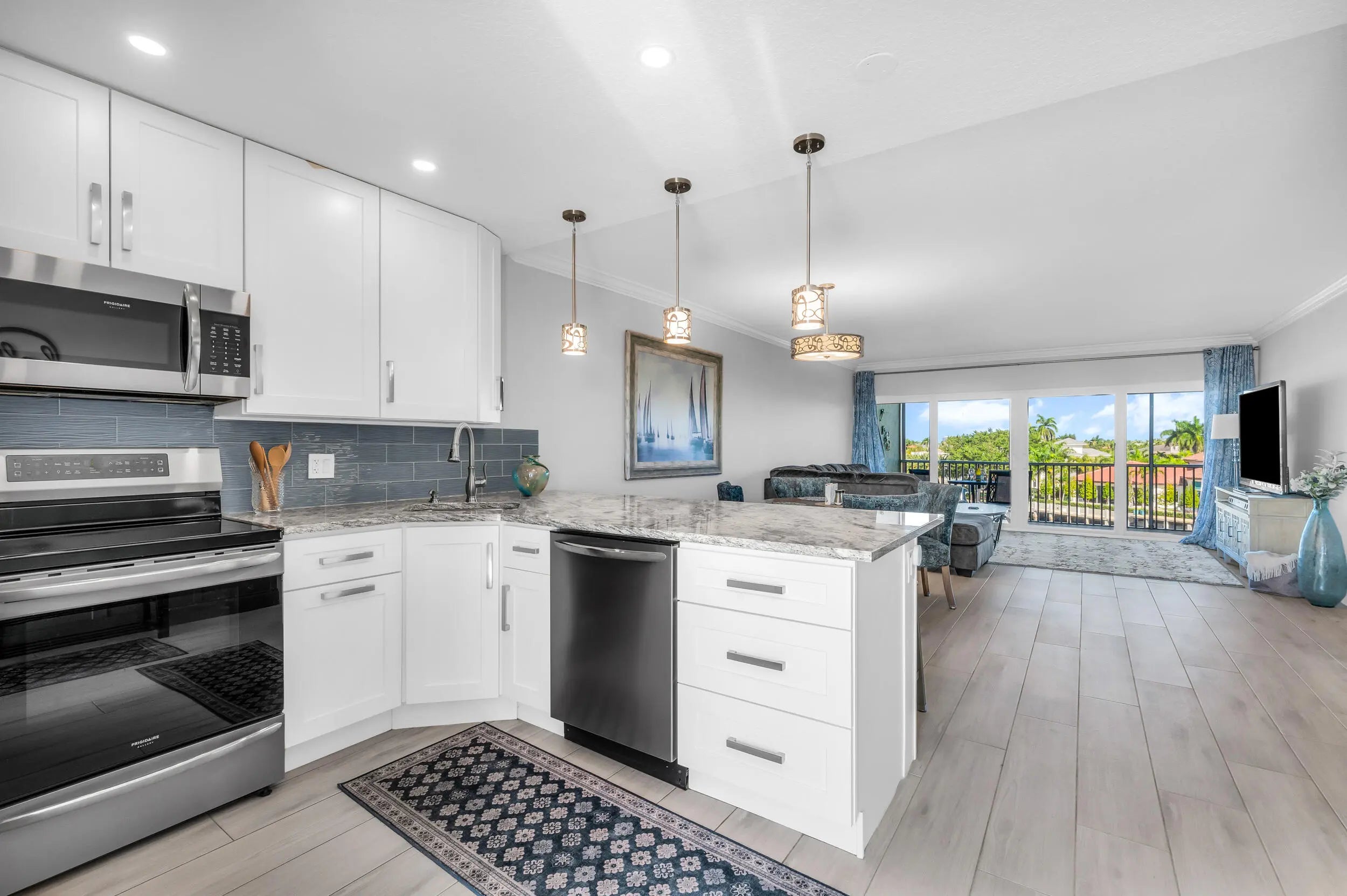 This deluxe 2-bedroom, 2-bath waterfront condo offers breathtaking views of one of the main deep-water canals with no fixed bridges to the ocean--delivering a front-row seat to a constant boat parade. The highly desirable deluxe model provides over 20% more living space than standard units, featuring an oversized primary closet and both bedrooms oriented to capture serene water views.The residence has been completely renovated from top to bottom with exceptional attention to detail, including expanded kitchen cabinetry, a dedicated coffee bar, and a thoughtfully designed workstation in the primary bedroom. Quartzite countertops elevate both the kitchen and bathrooms, while elegant wood-plank ceramic tile flooring extends throughout the condo and onto the balcony,