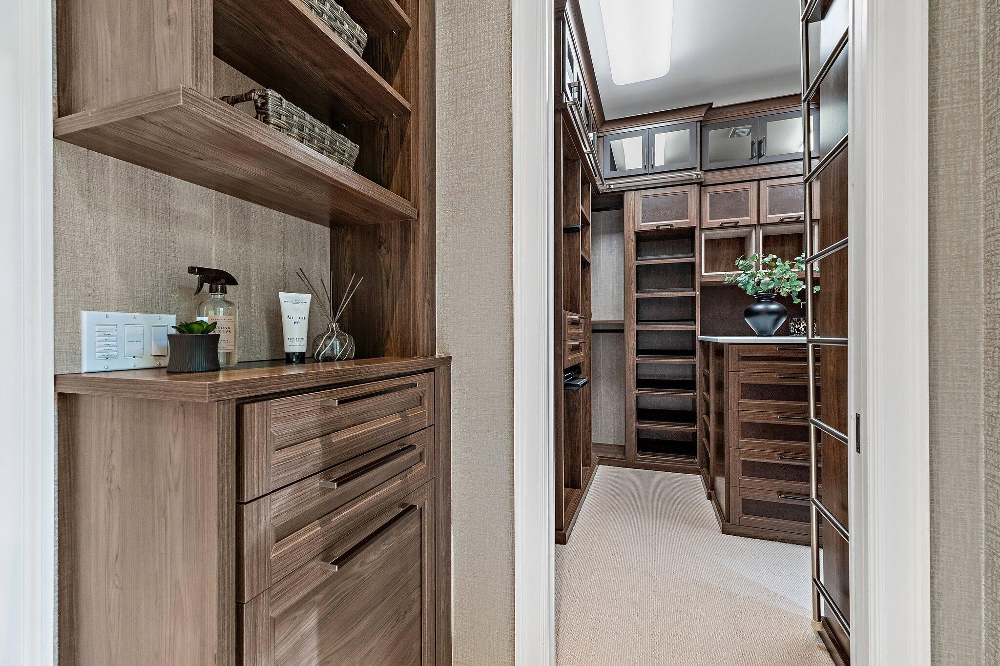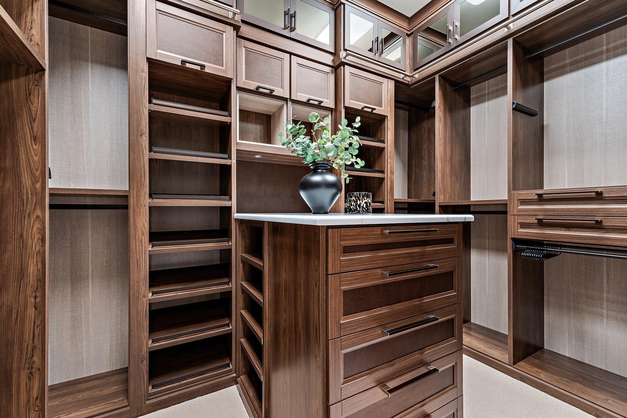 Closet Cabinets, Elevator, Fireplace(s), Cook Island, Pantry, Split Bedroom, Volume Ceiling, Walk-in Closet, Wet Bar