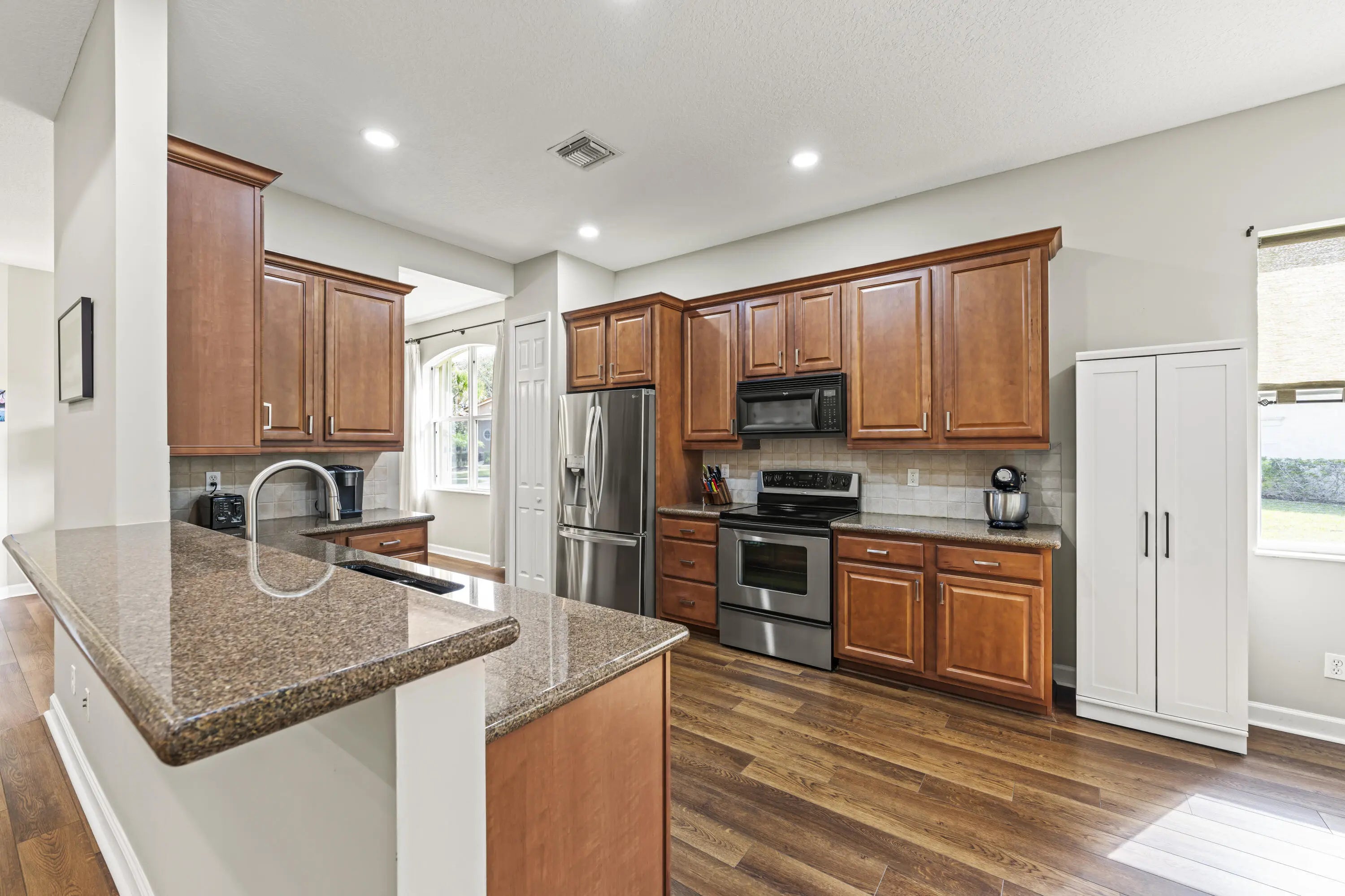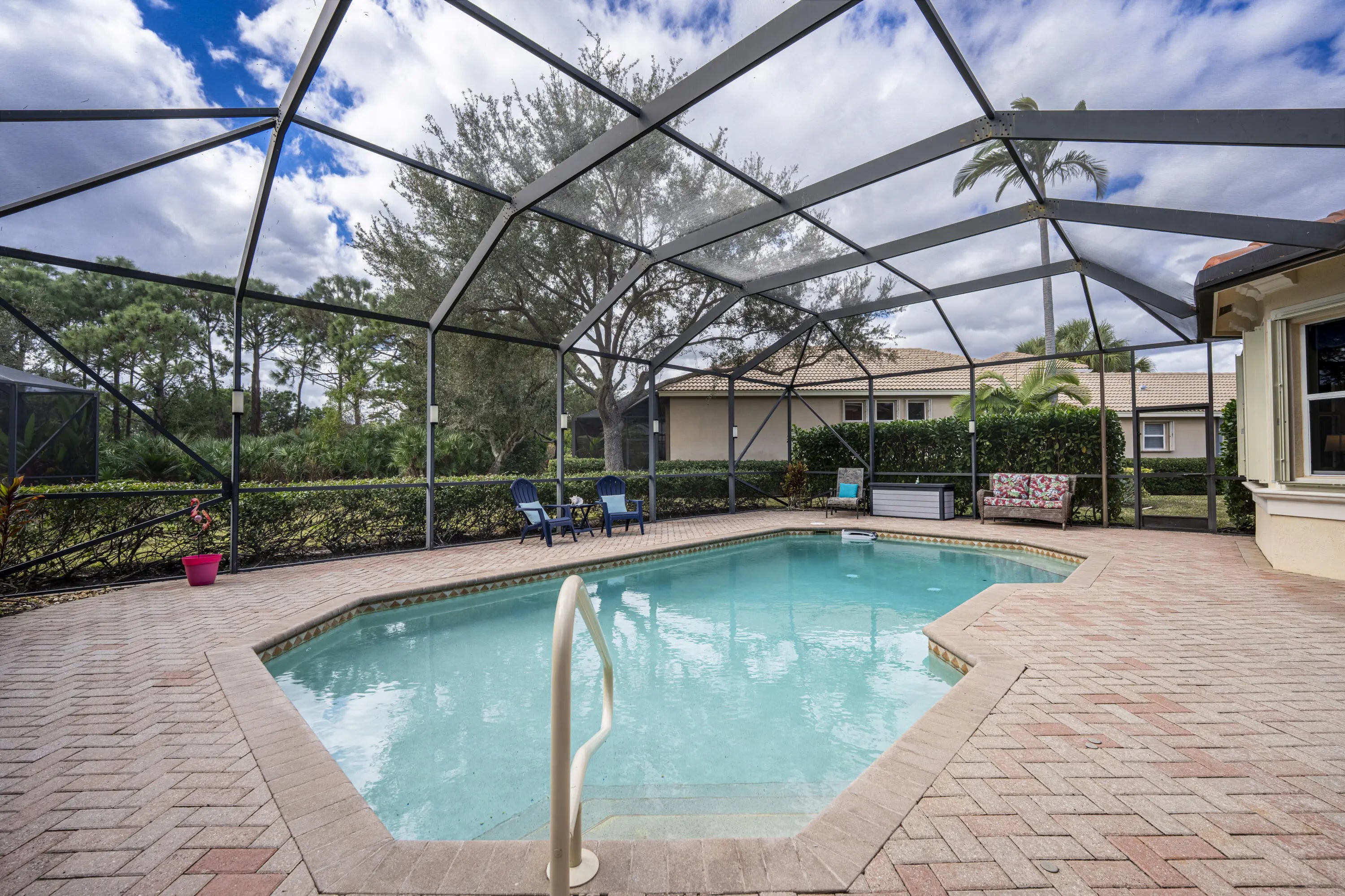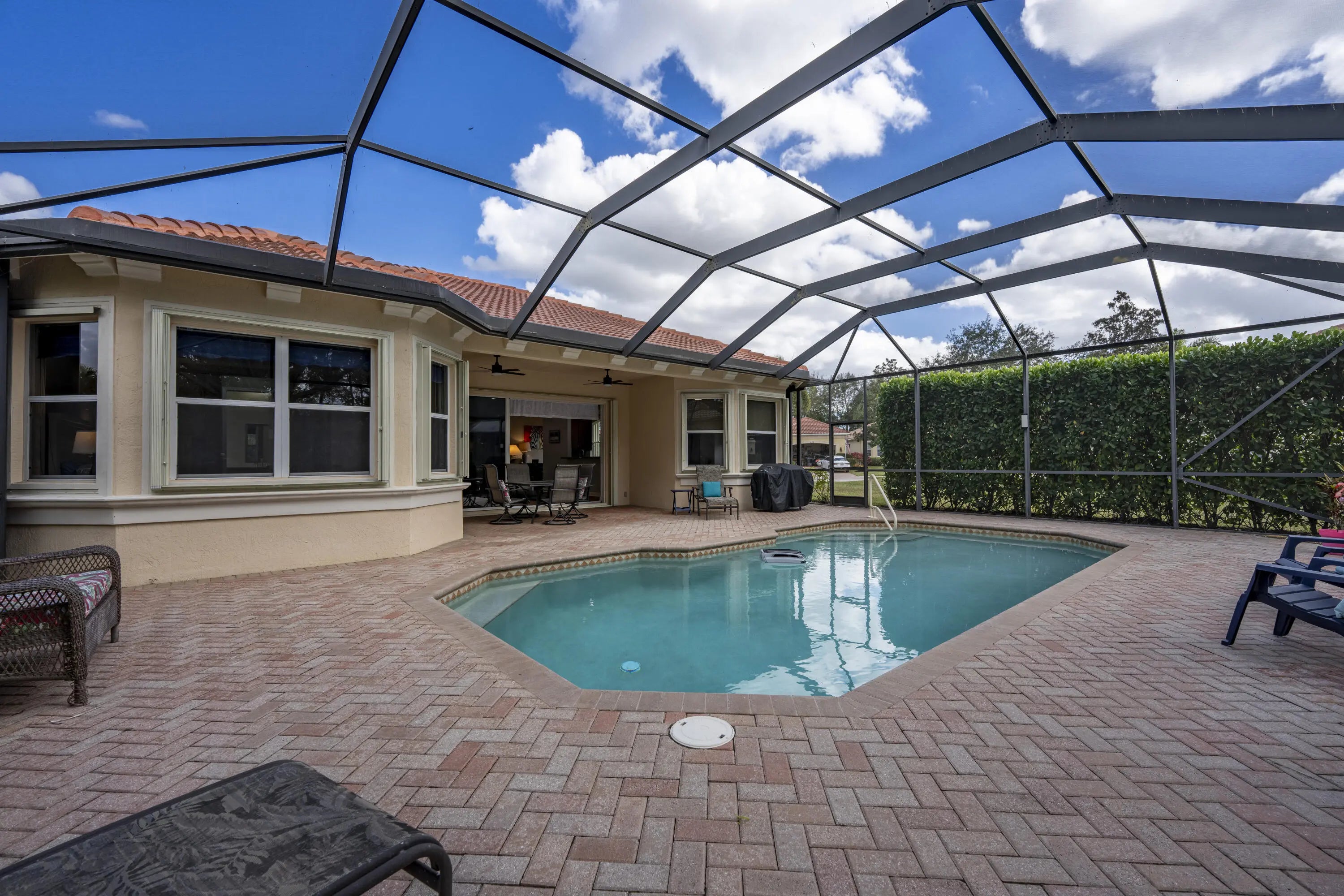 BRAND NEW TILE ROOF & STORM PROTECTION ON ENTIRE HOME FOR ULTIMATE PEACE OF MIND. 2BR + DEN, 2.5BA, 2 CAR OVERSIZED GARAGE. Oakmont floor plan in PGA Village offers rare privacy with one of the largest lots in Maidstone subdivision. Pride of ownership shows with upgrades that include beautiful bathrooms offering quartz countertops and new vanities, LVP wood-look flooring throughout the entire home, updated lighting, hurricane rated front door installed 2024, A/C unit installed in 2023, washer/dryer replaced in 2021, Water heater 2020, refrigerator 2022 & dishwasher 2024. Pool heater ,filter, pump & salt generator added 5 years ago. Along with an amazing outdoor lighting system. Accordion shutters on all but 2 windows that have panels. Click for more...