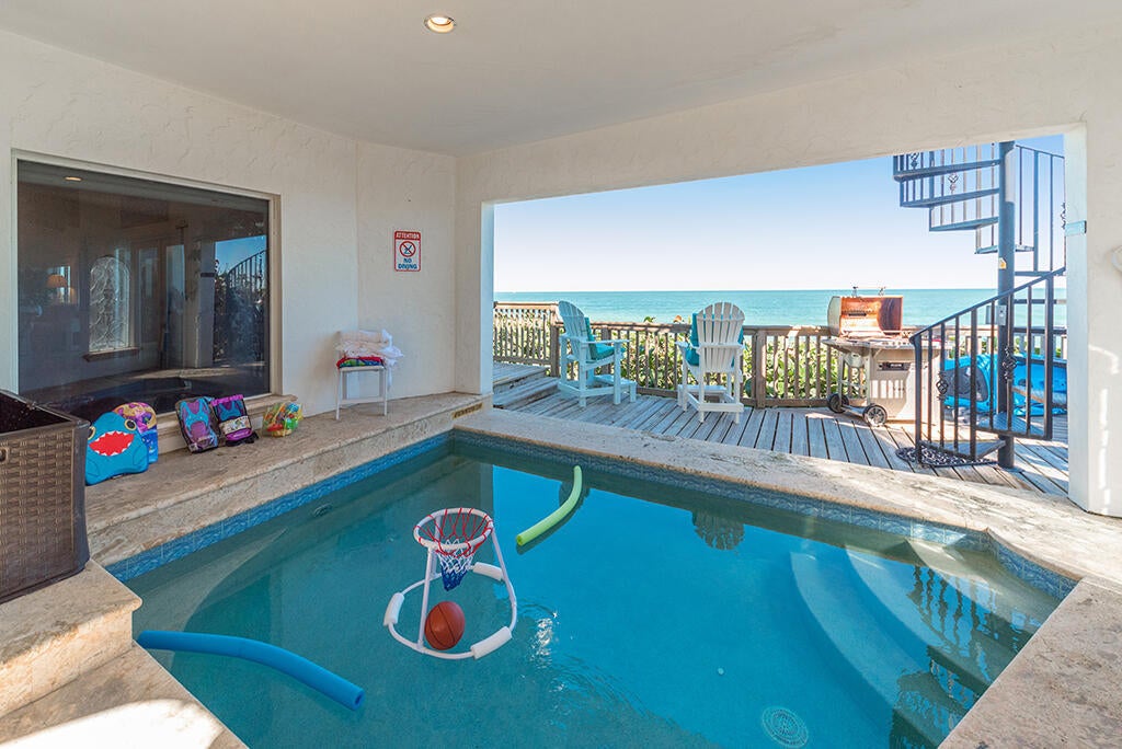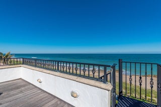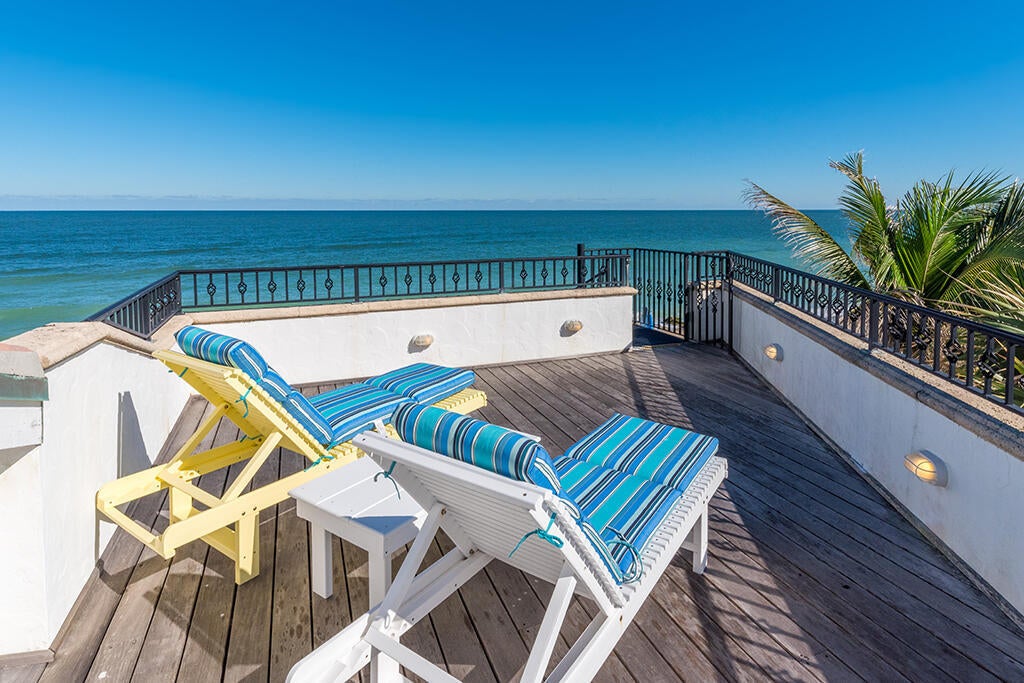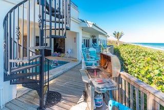 La Dolce Vita or The Sweet Life. is an impeccable ocean-to-river estate, perfectly designed for the consummate water lover. This CBS construction home features impact windows and doors, an elevator, heated swimming pool a rooftop sundeck and an ocean front leisure relaxation deck. The Home has been meticulously maintained throughout. The spacious chef's kitchen has double ovens with plenty of counter space and abundant cabinetry. The dining area is perfectly situated for entertaining large gatherings, showcasing breathtaking views of the Atlantic Ocean. The primary bedroom is a private retreat, highlighted by exquisite ocean views that greet you every morning. Over 100' feet on the ocean and river. A deep water dock with two lifts, a floating platform, kayak and paddleboard launch areaand convenient access to fuel at the near by Marriott Marina. Located a few miles North of Jupiter Island, Hutchinson Island is poised to substantial long-term capital appreciation and income every year. Ample parking accommodates up to 10 vehicles. Close to shopping and restaurants and only a 15 minute drive to Witham Field (SUA), a public airport popular for private jets and Jet charters, with a US customs clearance office and less than an hour to West Palm Beach International Airport. With panoramic ocean-to-river views, premium amenities, and unmatched dual waterfront access, this property delivers both lifestyle and long-term income power. This home is a must see!!