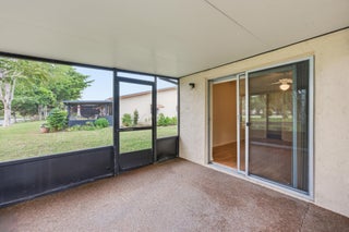 Welcome home to this charming two bedroom, two full bathroom waterfront villa featuring a screened-in patio with tranquil lake views. As you enter, you'll immediately notice the wood-look laminate flooring throughout the main living areas, complemented by updated recessed lighting and modern fixtures that create a bright and inviting atmosphere.The kitchen offers solid wood cabinetry, durable wood laminate countertops, a tiled backsplash, and an oversized dual sink with disposal. A convenient laundry closet is located within the kitchen, adding to the home's functional layout. The kitchen flows seamlessly into the living and dining areas, both generous in size and enhanced by updated trim, recessed lighting, and contemporary fixtures.The primary bedroom features wood-look vinylflooring, a spacious walk-in closet, and peaceful views of the lake. The primary bathroom includes a solid wood shaker-style vanity and a fully tiled shower-tub combination. The secondary bedroom also offers wood-look laminate flooring, a full walk-in closet, and sliding glass doors that lead to the private screened patio overlooking the water. The secondary bathroom is equally updated with a solid wood vanity and modern hardware. The HOA covers lawn care and common area maintenance, making this a low-maintenance option for buyers seeking an easy lifestyle. Delray Villas 3 is a well-established 55+ community located just off Atlantic Avenue. You are minutes away from essential shopping, dining, and medical facilities, while the vibrant energy of Downtown Delray and award-winning beaches are just a short drive away. Community amenities include a pool and shuffleboard, providing the perfect balance of relaxation and activity.