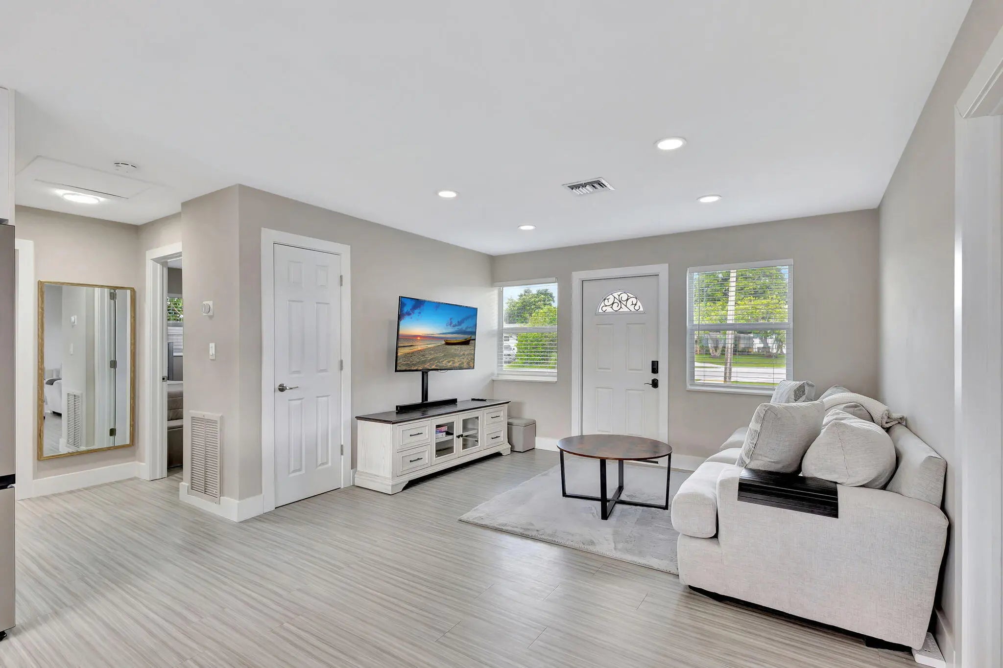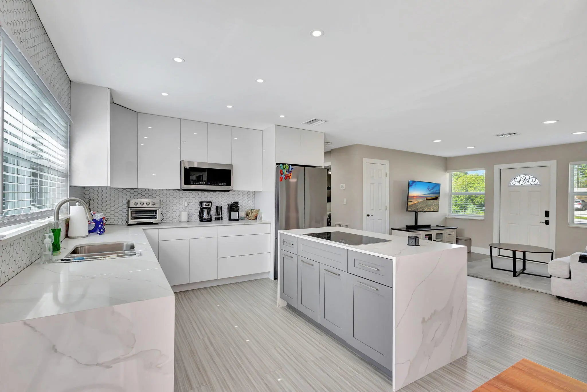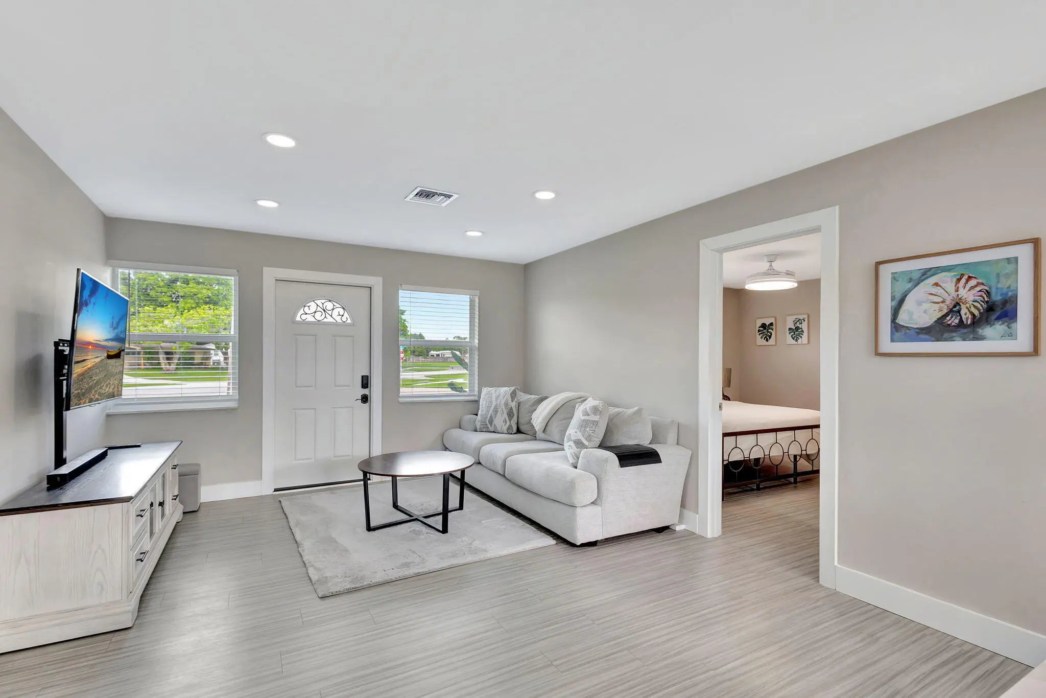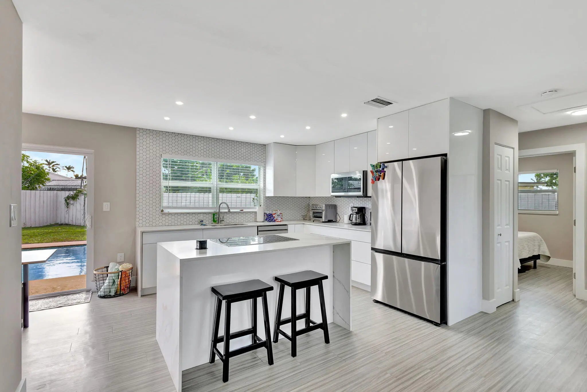 Current Air B&B/ Move in Ready/ No HOA. Fully renovated 3-bedroom, 2-bath pool home in Palm Beach Gardens--perfect for a primary home or short-term / long-term rental investors. This move-in ready property features new flooring throughout, a modern kitchen with stainless steel appliances, quartz countertops with waterfall edges, new cooktop, and ample cabinetry. Both bathrooms are completely updated, including a desirable en-suite. Capital improvements include a new 2023 Rheem A/C system and new vinyl PVC gates leading to a fully private pool backyard--ideal for guest appeal. Positioned on one of the larger corner lots, offering room for expansion or added amenities to increase ROI. Centrally located to beaches, golf, dining, shopping, and entertainment, this property delivers the