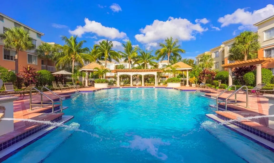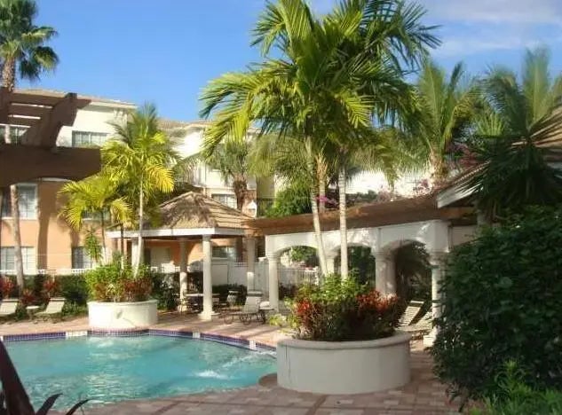 Fiore at the Gardens Condominium First Floor Unit Spacious 3-story condo in the desirable Fiore at the Gardens community. This first-floor unit offers 3 bedrooms and 2 bathrooms, perfect for comfortable living. Enjoy an open dining and living area, a kitchen equipped with appliances, and a countertop ideal for casual meals or entertaining. Washer and dryer are included, along with the freezer, refrigerator, microwave, and stove. Complete hurricane shutters provide peace of mind and protection for all windows.