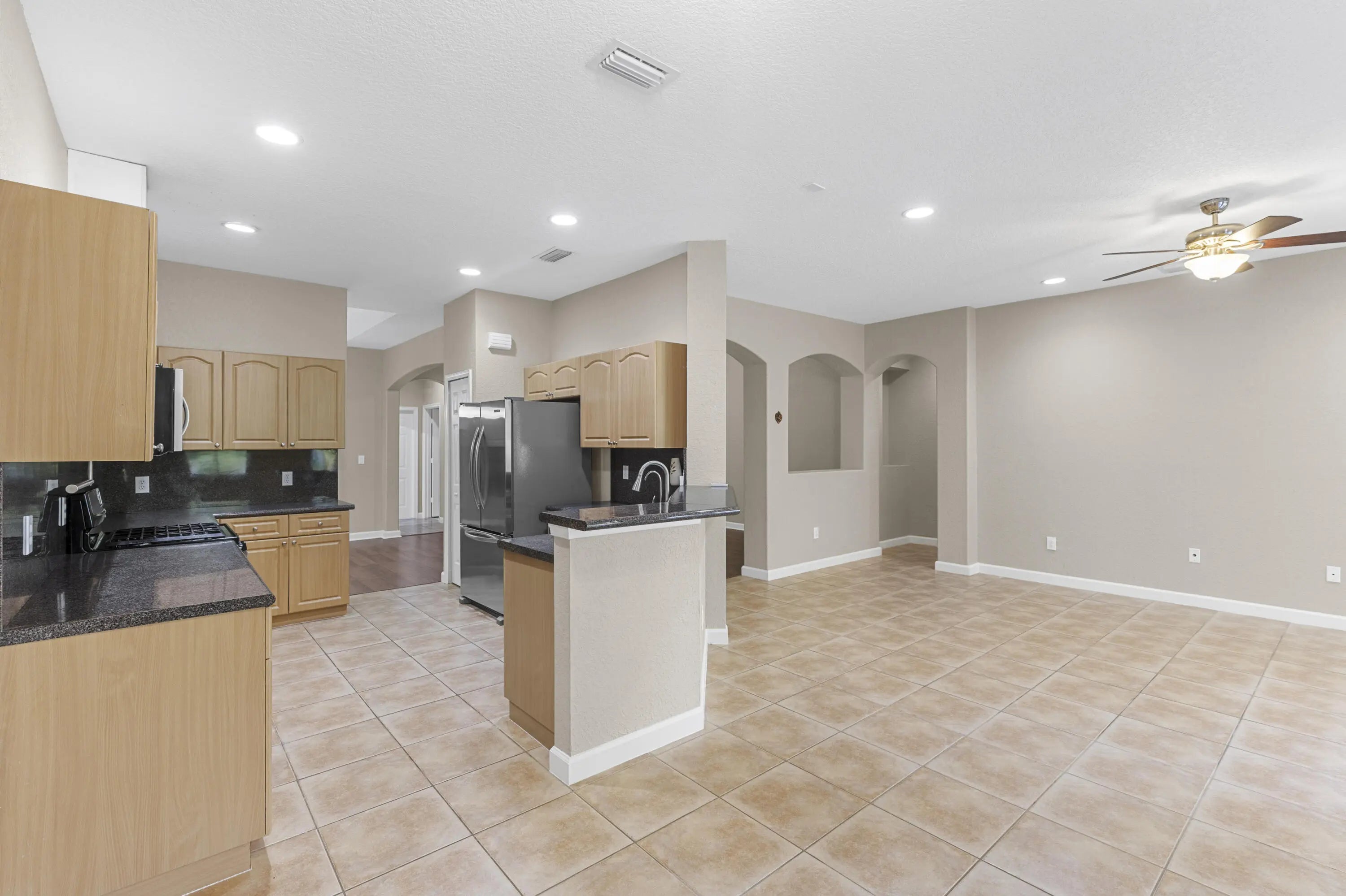 Step into one of Black Diamond's most desirable single-story layouts, boasting over 2,200 sq ft of impeccably maintained living space in prime Wellington.This 3-bedroom, 2.5-bath concrete-built home with a 2-car impact-rated garage has been meticulously cared for by the owners as a primary residence, and it shows in every detail. Step inside to discover a light, open layout with luxury vinyl flooring (2025) in all bedrooms and elegant finishes throughout. The kitchen is spotless and functional, featuring stainless steel appliances, a Waterdrop filtration system, and plenty of space for everyday living and entertaining. The spacious master suite offers a true retreat with newer tile flooring in the primary bathroom and a sleek frameless glass shower that creates a spa feel.