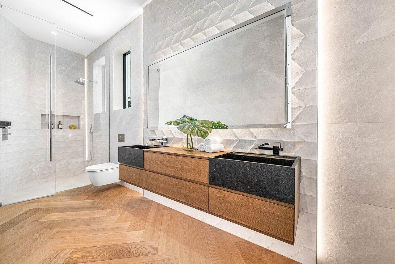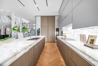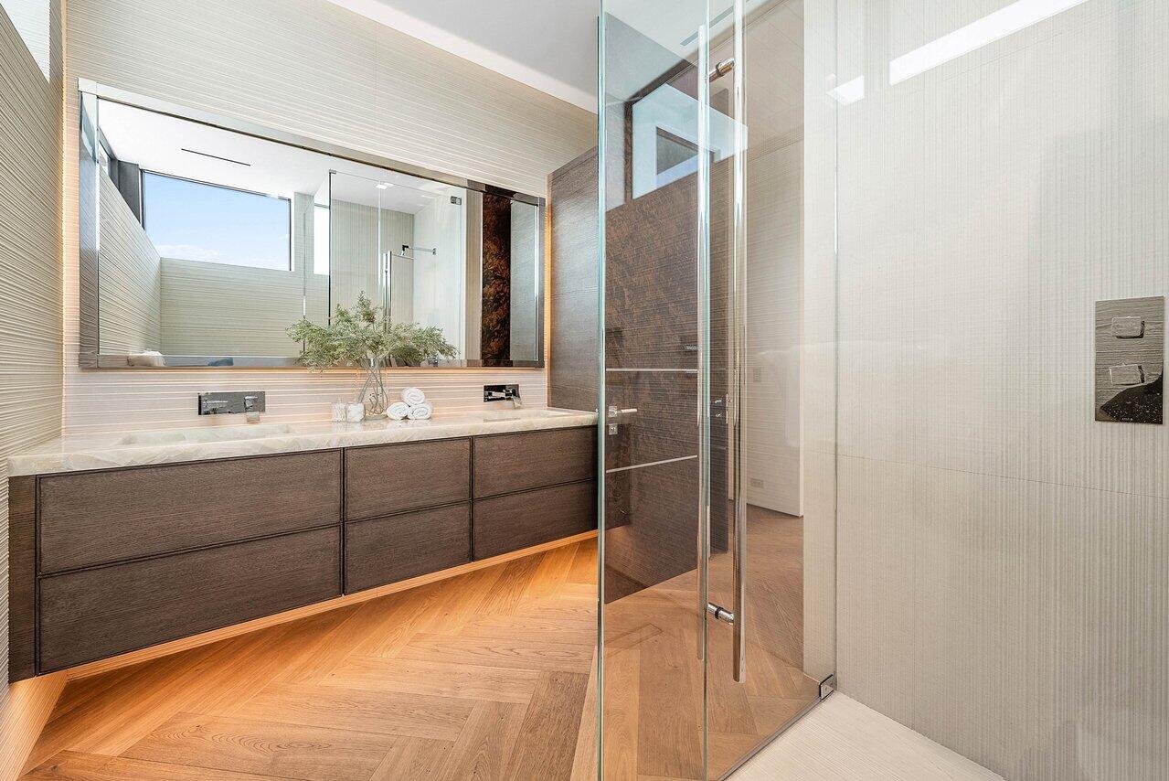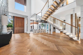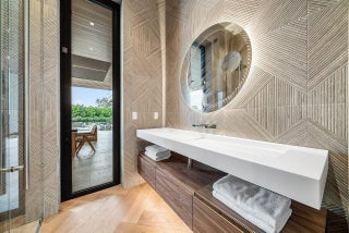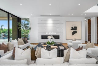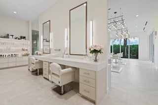 Step into unparalleled luxury in this brand-new custom estate located in the prestigious guard-gated community of Admirals Cove. Perfectly positioned on a quiet cul-de-sac just steps from the main clubhouse. This residence offers effortless access to world-class amenities, dining, spa, golf, and marina. A dramatic travertine and silver-leaf feature wall welcomes you, while the floating Cristallo staircase serves as a striking architectural centerpiece. Offering approximately 9,971 SF under air and 12,600 SF total. The home features 5 bedrooms including a first-floor primary suite, 6.1 baths, MAFI Austrian wood floors, and exceptional craftsmanship throughout. Two designer kitchens include a chef's kitchen and a stunning show kitchen with illuminated Cristallo quartzite countertopsUltra-high-end Eggersmann cabinetry, professional-grade appliances, and a custom coffee center define the designer kitchen. The primary bedroom is a serene retreat with La Finestra glass walls opening to the spa and pool, plus a spa-inspired bath with backlit agate countertops, integral stone sinks, dual water closets, freestanding soaking tub, titanium-tiled shower, and two custom walk-in closets. First-floor features include a VIP guest suite, two powder rooms, elevator, striking office, clubroom, hair salon, butler's pantry, formal dining room, wine room, laundry and dog wash station. The private wellness suite offers a state-of-the-art gym, white aspen finishes, infrared sauna, red-light and salt therapy. The office showcases custom Brazilian teak blocks with brass inlays and a stone biofuel fireplace. A tranquil family lounge overlooks the pool, gardens, and golf course. Upstairs offers a loft and three VIP suites with balconies capturing water, mangroves, and fairway views. The resort-style outdoor living features a Euro-edge heated and chilled saltwater pool with lap lanes, fire bowls, spa, sun shelf, summer kitchen with pizza oven, cabana bath, retractable screens, premium sound, and lush privacy landscaping. Additional highlights include 11'9" ceilings, Cristallo underlit countertops, La Finestra windows and doors, two exotic stone fireplaces, Crestron smart home technology, full-house generator, VRF climate system, Starlink, and high-tech security. The air-conditioned five-car garage offers 13' ceilings, EV charging, and lift capability. Front Entry: Elegant stainless steel sculpture by renowned artist, Alexander Krivosheiw featured in Architectural Digest. Required Admirals Cove golf membership includes two clubhouses, 45 holes of championship golf, marina, yacht club, five restaurants, tennis, pickleball, spa, salon, fitness, and kids club. Close to PBI. A rare and irreplaceable offering.