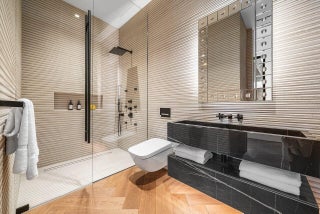 Bar, Built-in Shelves, Closet Cabinets, Custom Mirror, Decorative Fireplace, Elevator, Entry Lvl Lvng Area, Fireplace(s), Foyer, Cook Island, Pantry, Roman Tub, Split Bedroom, Upstairs Living Area, Volume Ceiling, Walk-in Closet, Wet Bar