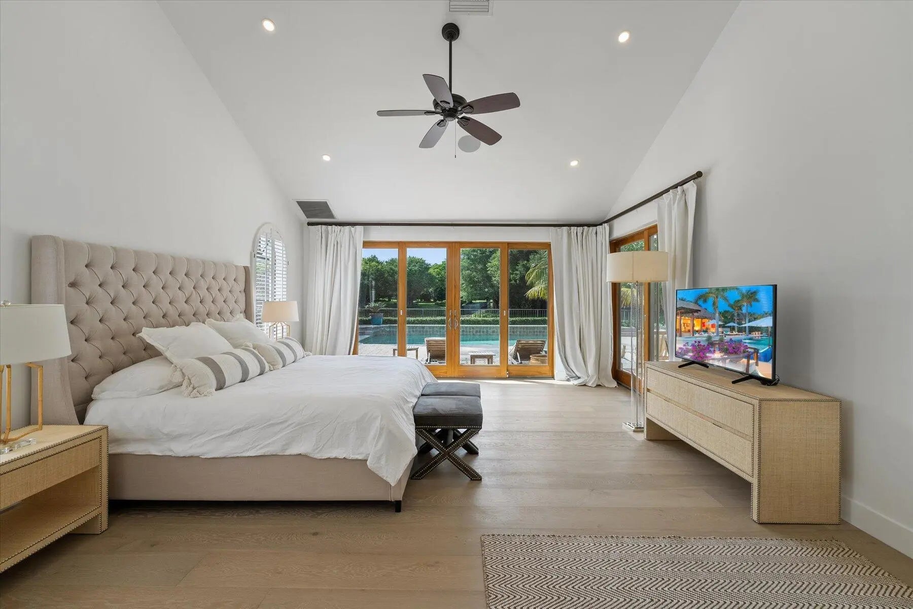 Modern residence in the most perfect setting offering iconic water views- one of the best views in Palm Beach Polo. Located in Bent Cypress neighborhood, this 2 story 5 bedroom, 5.1 bath home welcomes you with a grand open space wrapped by natural light. The Kitchen offers an oversized island with custom Dacor panel appliances perfect for entertaining. The Main Bedroom is set apart from the other bedrooms and provides an inviting peaceful sanctuary also with serene views. Upstairs there is a large Bedroom with ample sitting area affording extra privacy. Relax poolside or in the comfort of the covered patio as you watch the sun set each afternoon. Resort living at its best!