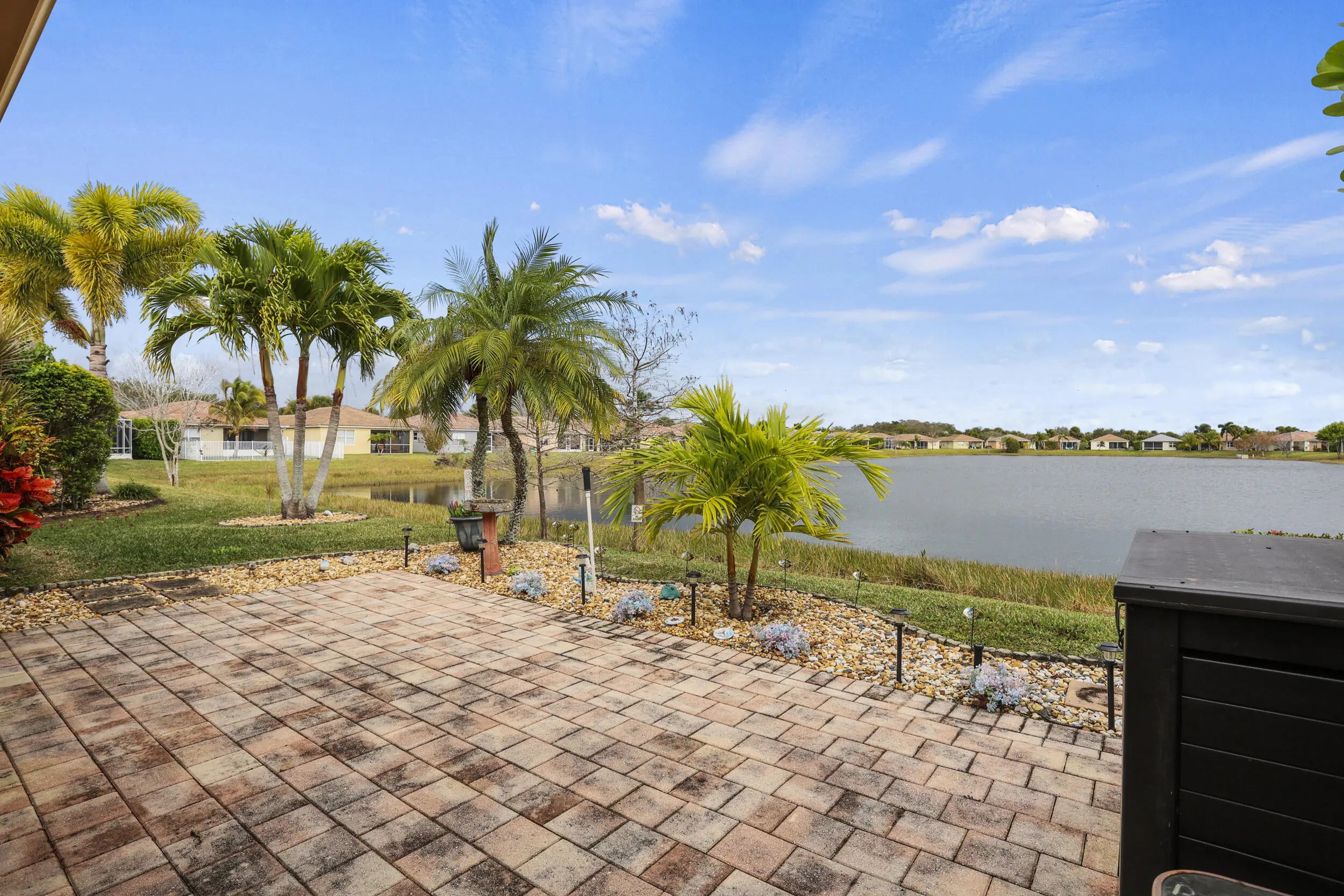 Stunning 3/2 CBS Waterfront Home with Breathtaking Views & Endless UpgradesThis beautifully maintained 3 bedroom, 2 bath CBS waterfront home features upgraded tropical landscaping and the water view you've been waiting for. Move-in ready with upgrades galore including a new AC, new hot water heater, new refrigerator, and accordion hurricane shutters for peace of mind.Enjoy true Florida living with an enclosed Florida bonus room overlooking the water, plus a screened patio and paver patio--perfect for relaxing and taking in gorgeous sunset views. The home also offers a private, fully fenced courtyard entrance for added privacy and charm.Interior highlights include updated flooring with no carpet, plantation shutters, and a spacious laundry room with cabinets, deep sink,