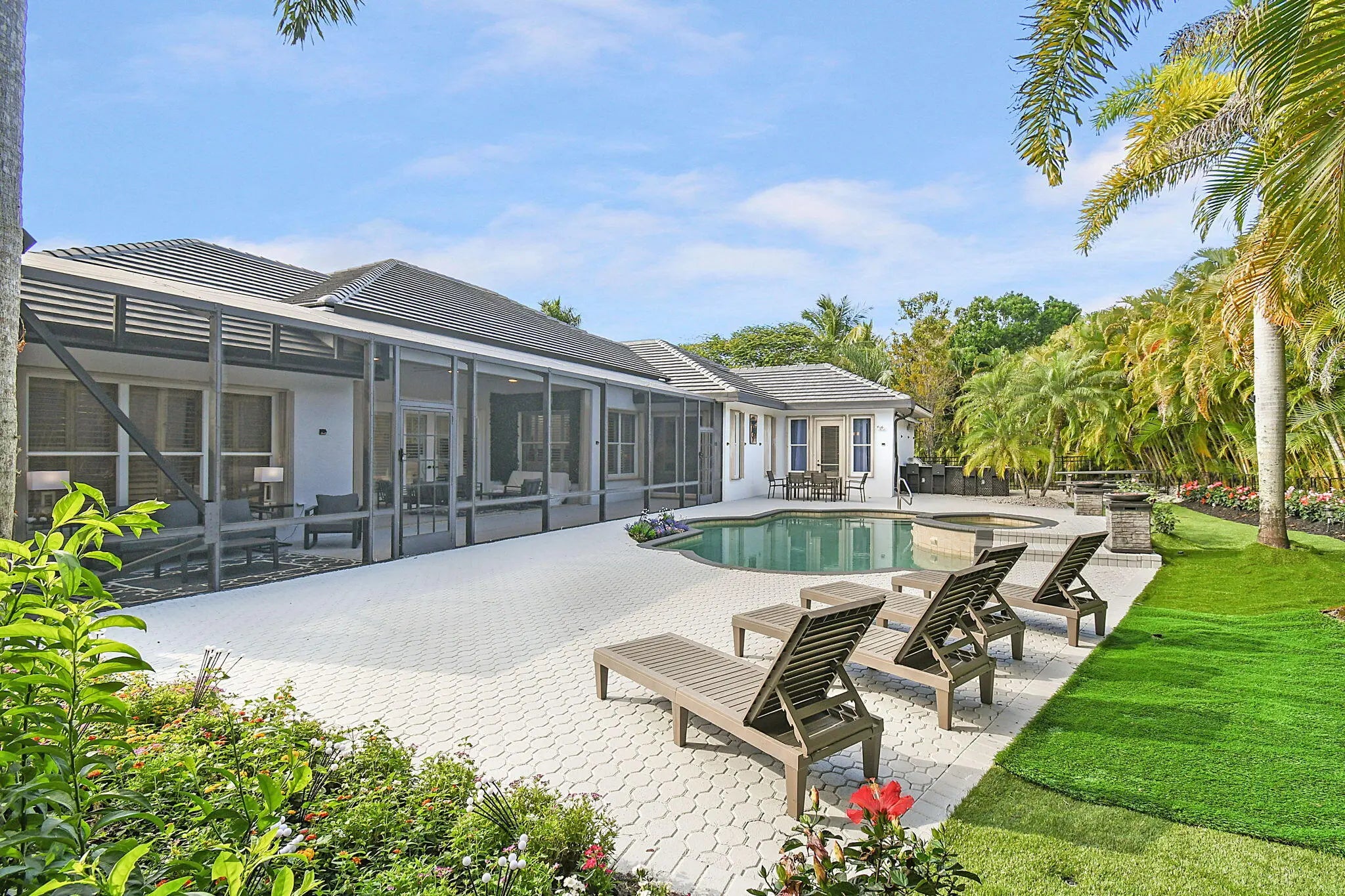 Enviably set on the Wanderers Golf Course, this astonishing 6-bed, 4-bath estate within the gated Lakefield West community is a must-see! This charming home, redesigned to be a peaceful retreat, is just a short distance from the horse show. It sits on about 1/2 acre of land, offering privacy and great views of the golf course. With six bedrooms and four bathrooms, the house has a modern style and covers 3,352 square feet. The main living areas have stunning pool views, blending indoor and outdoor spaces perfectly. The property also includes a spacious three-car garage with lots of storage space. Everything in the house has been redone, including the roof, appliances, kitchen, flooring, and lighting. Located in a quiet golf court.