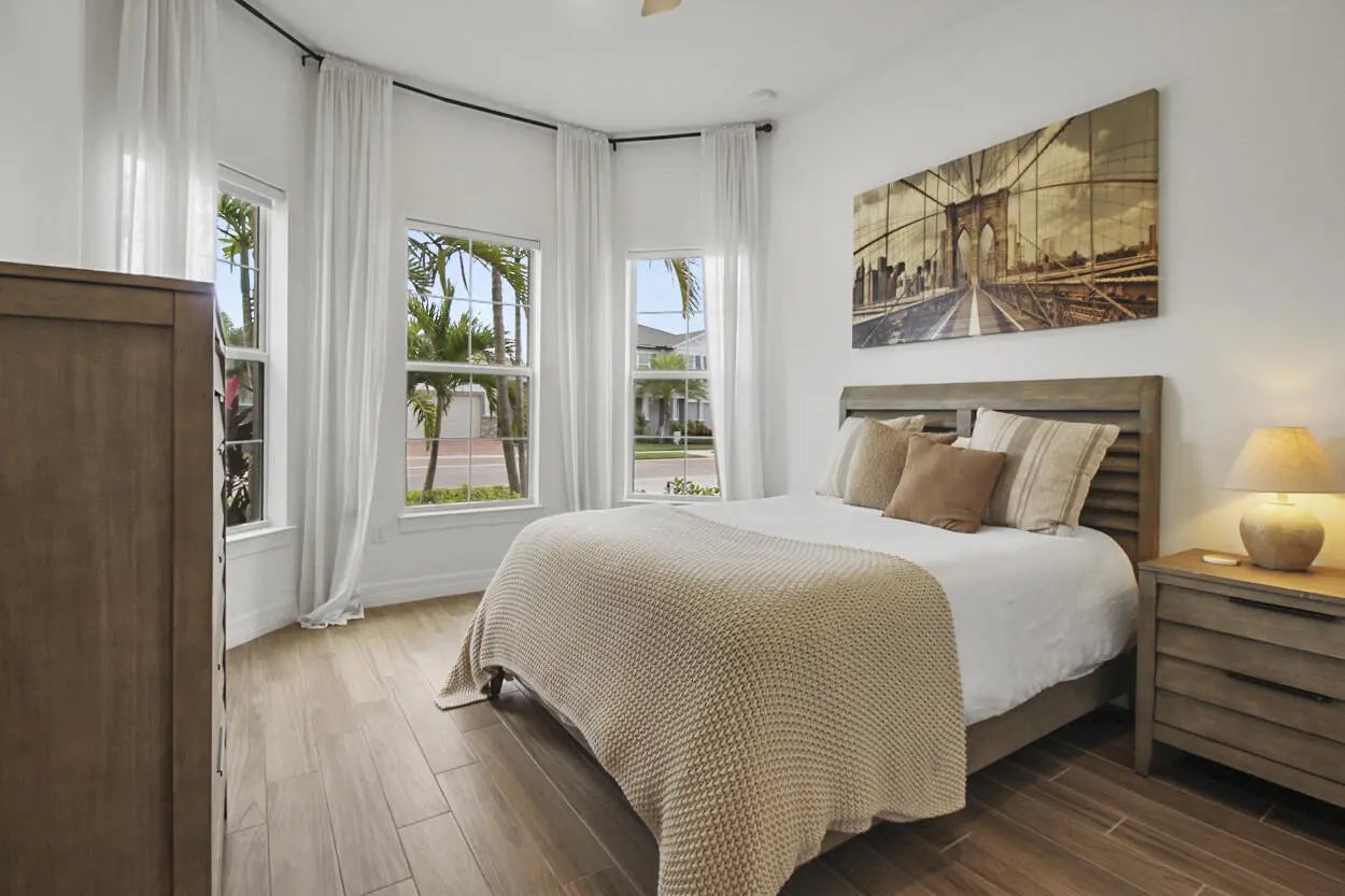 Welcome to this like new, designer decorated 3 bedroom, 2 bath home in the prestigious Avenir community. Thoughtfully upgraded with over $100,000 in premium enhancements, plus $35k of garden and closet built in upgrades. The open concept living area features high ceilings, upgraded cabinetry, and stainless steel appliances. Retreat to the serene primary suite featuring custom California Closets and a spa inspired bath. Enjoy the privacy of a fully fenced backyard, ideal for outdoor gatherings. Resort Style, gated community with access to pools, clubhouse, and walking trails. This home includes an electric car charger.