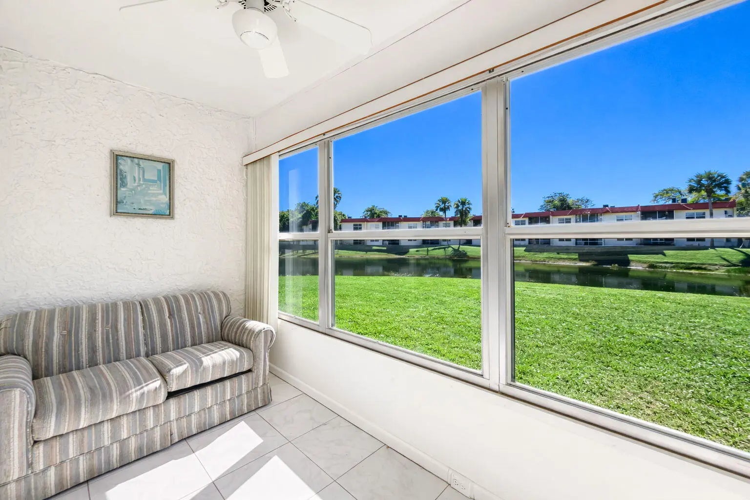 FIRST FLOOR W/LAKE VIEW. TURNKEY 1st FLOOR CONDO IN THE ACTIVE 55+ COMMUNITY OF GOLDEN LAKES, PHASE ''A''. MOVE RIGHT IN TO THIS LIGHT AND BRIGHT 1 BEDROOM 1 1/2 BATH CONDO. RELAX ON YOUR PRIVATE, ENCLOSED PATIO/LANAI WITH BEAUTIFUL WATERVIEW. SPACIOUS KITCHEN WITH LARGE PANTRY/STORAGE. WASHER/DRYER IN UNIT! TILED FLOORS THROUGHOUT. ACCORIDAN SHUTTERS ON WINDOWS (Partial). COMES FURNISHED (NEGOTIABLE). Golden Lakes is a 55+ manned Gated Community with many amenities to enjoy such as Tennis, Pool & Spa, Cafe, Billiard's, Bocce, Fitness Center, Card tables, Library, and shows in the Clubhouse. Golden Lakes is close to Restaurants, Shopping, City Place, and all Palm Beach County has to offer. MUST SEE this 1st Floor Condo to fully appreciate!