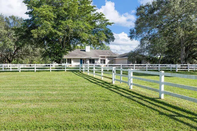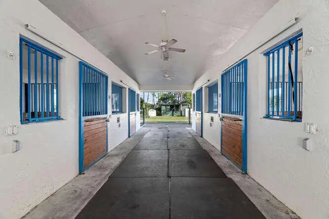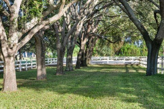 Live Oaks grace this beautiful Saddle Trail equestrian paradise, lending shade and tranquility to this 2+ ac farm located in one of theequestrian world's most sought after neighborhoods. Just a short 10 minute walk/trot hack to the show grounds, the property features a main barn with4 12'x12' matted stalls, 2 with walk-outs and all with Nelson automatic waterers; fly system, fans in the 12+' center aisle and stalls; hot & cold water onboth sides of the aisle along with the 2 wash stalls. 12'x24' riders' lounge with full bath; 12'x12' tack room; 12'x12' laundry/utility room; 12'x10' garage;12'x10' hay room all with central AC. There is an additional barn on the property with 2 12'x14' stalls for overflow. You will love riding on the excellent footing
