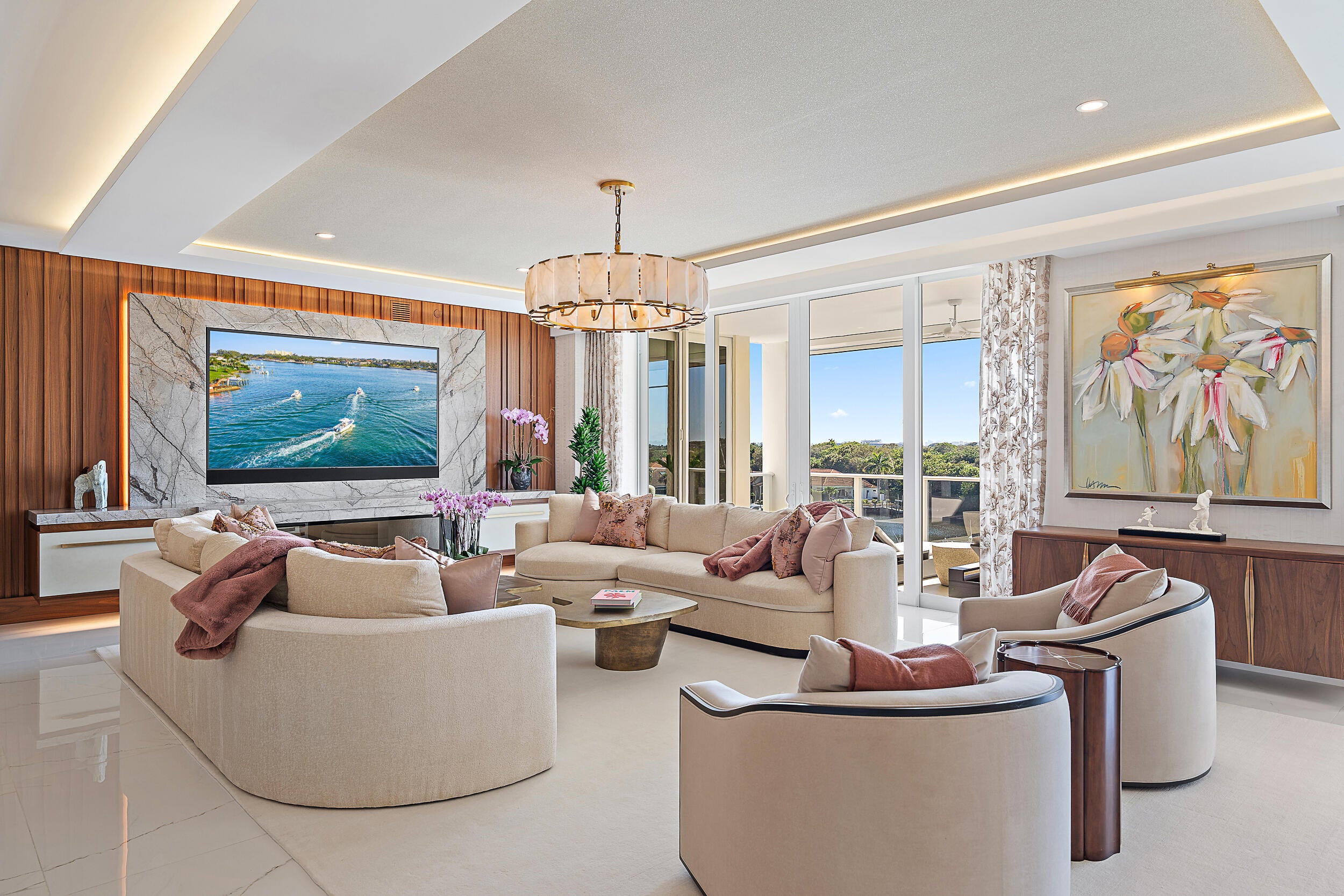 RARELY available PENTHOUSE with direct southern exposure. Luxury living at its finest in a boutique community with 24/7 manned security gate has the finest of full concierge services. One of the best kept secrets blocks from the blue water beaches & the Intracoastal waterway. Extensive remodel with privately keyed elevator to an open floor plan with 10-foot ceilings, this 5200 sqft penthouse lives like a single-family home. 3 garage spots, his/her baths, Thermador appliances, designer plumbing fixtures & more. Azure offers concierge services beyond expectation. 24/7 manned gate, full-service hurricane safe marina with dockage, fitness center, heated pool & spa, lockers & sauna, climate-control wine room, business center, club/card room, catering kitchen, golf simulator & putting green.