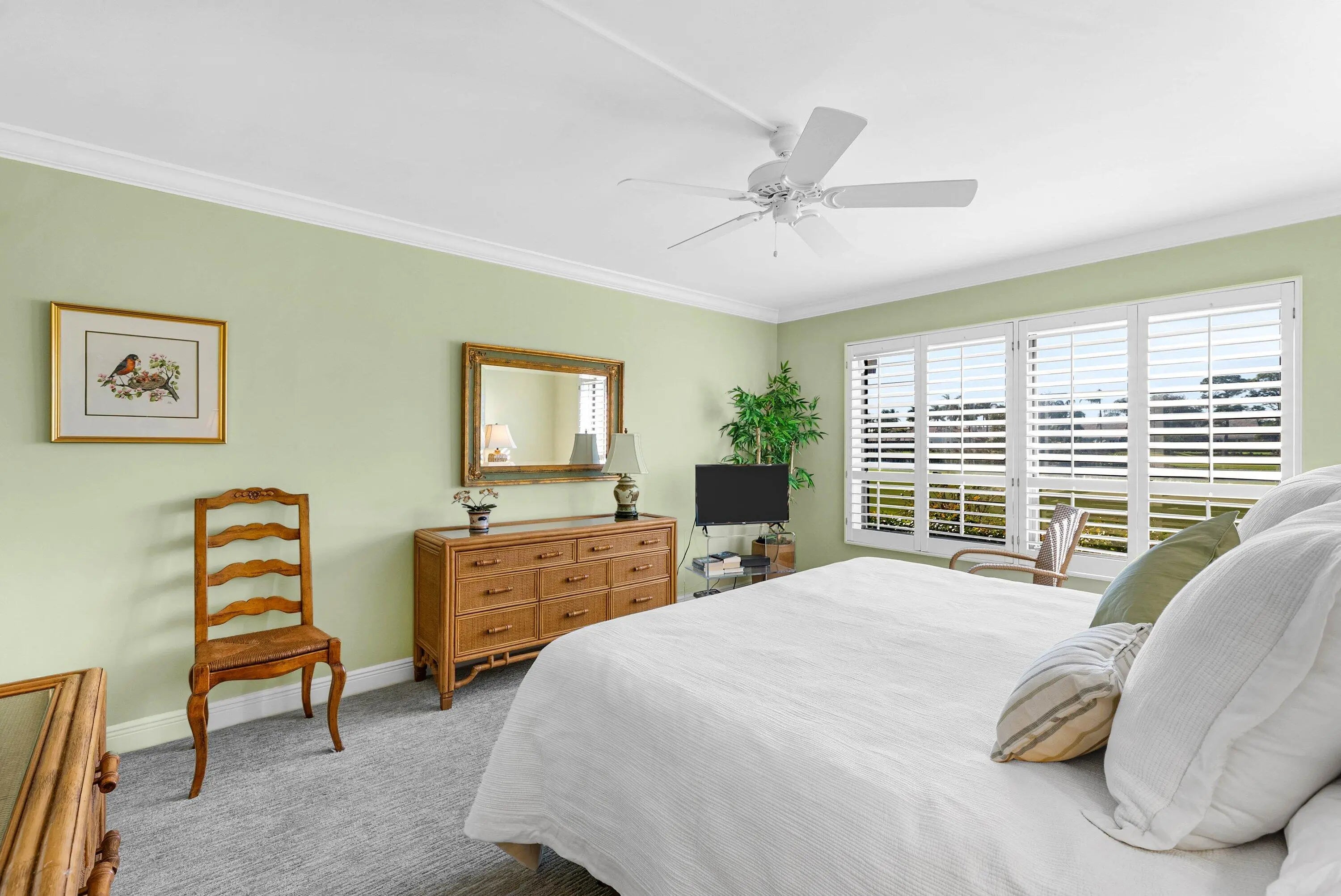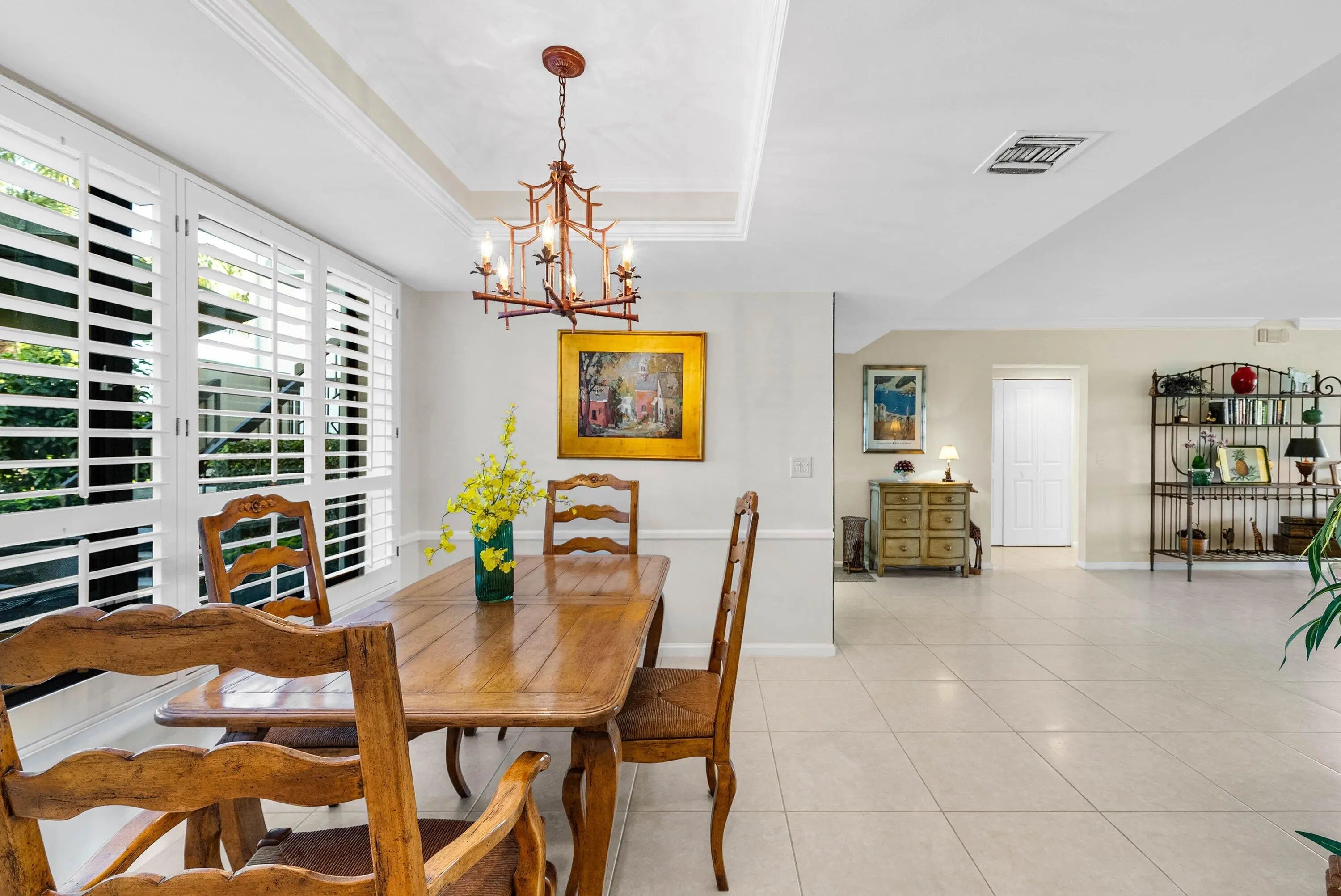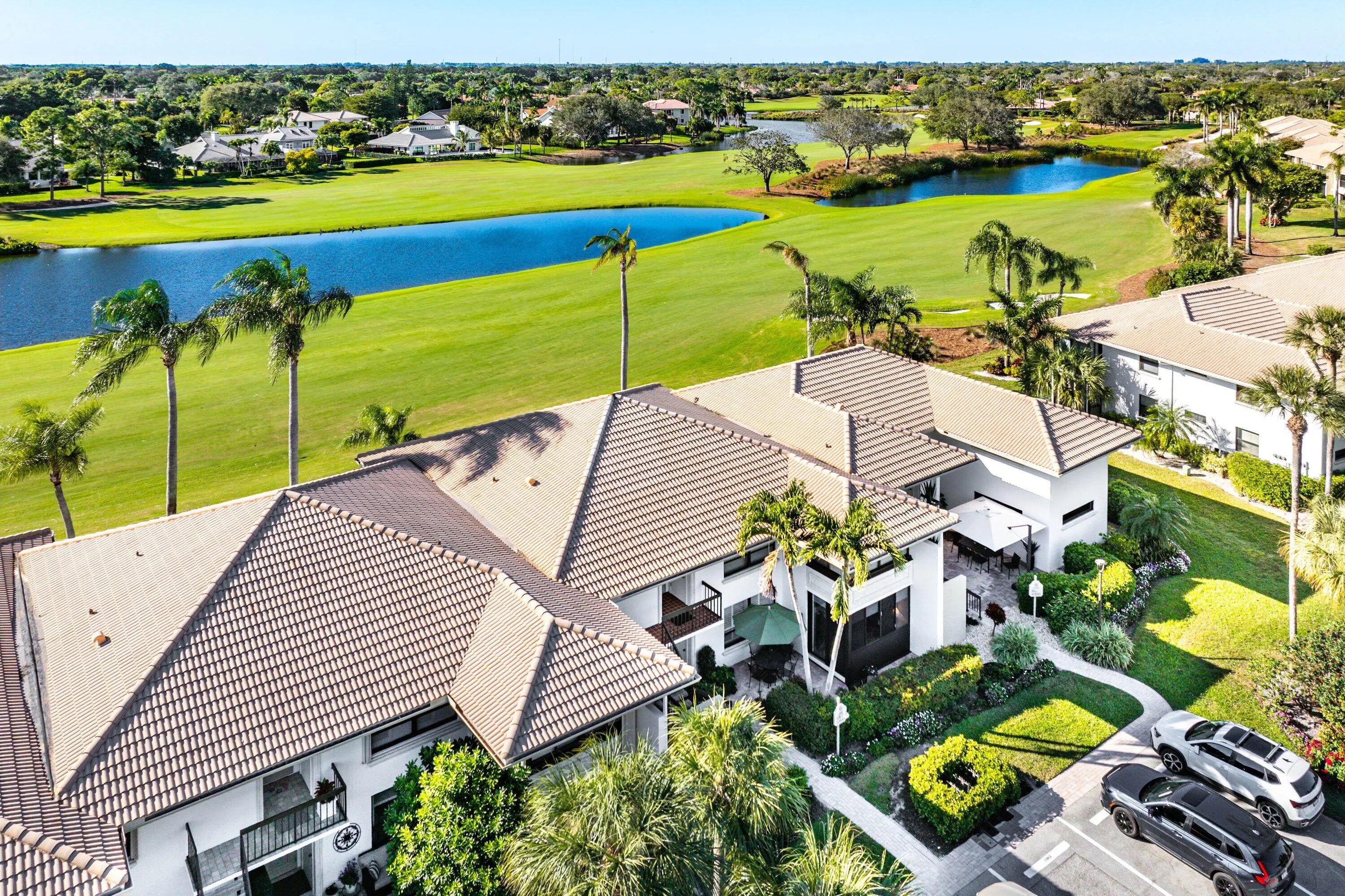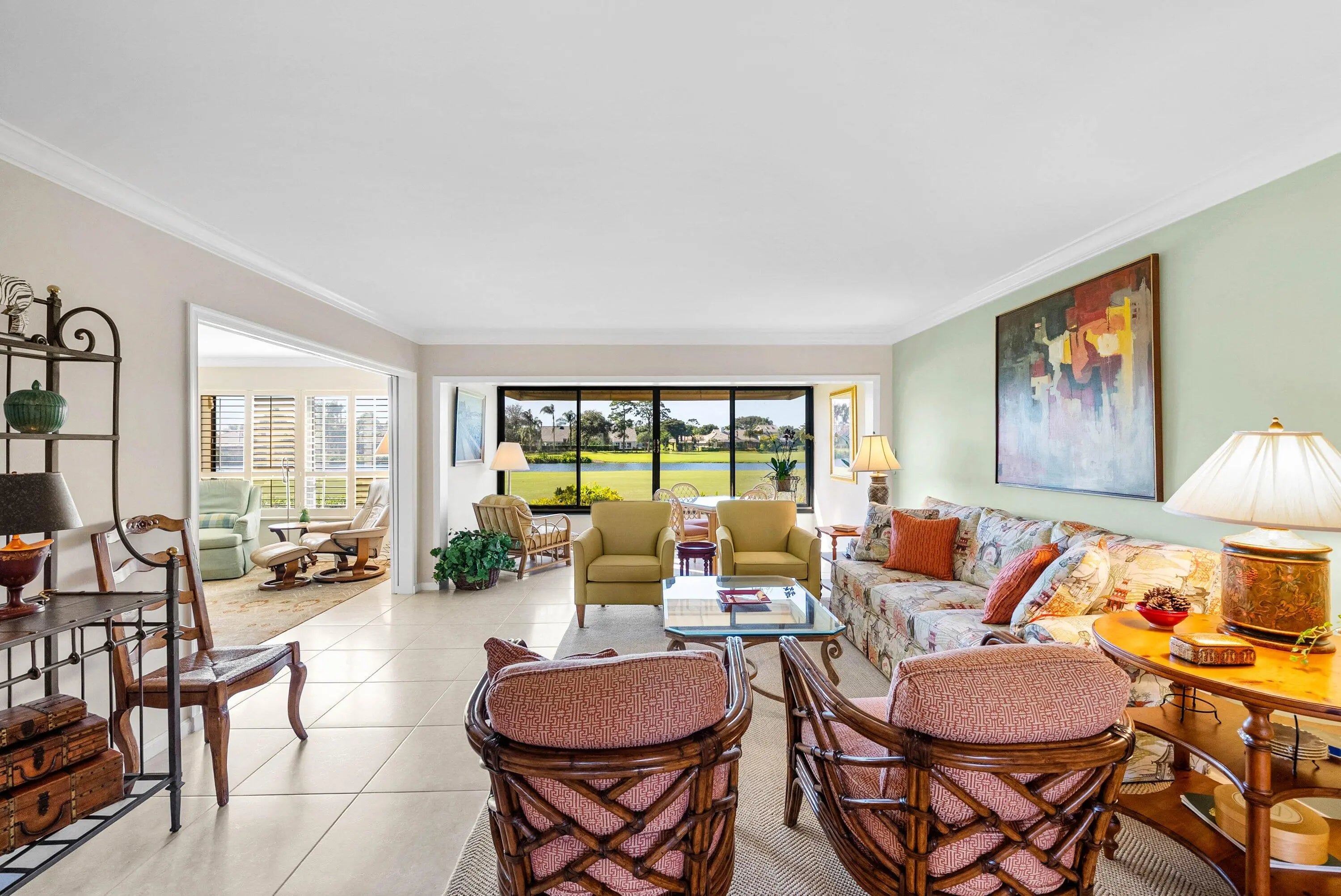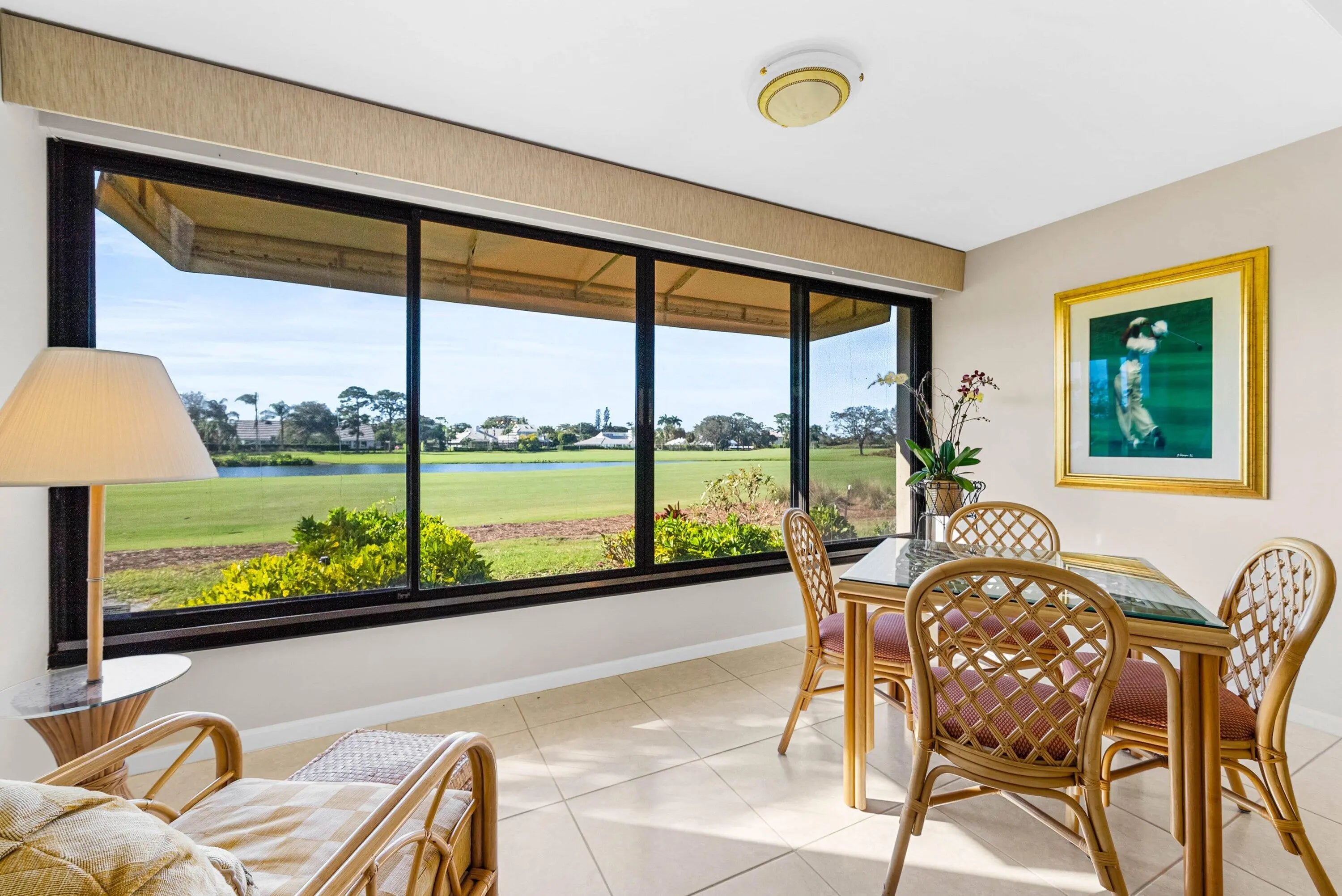 Exceptional lake and golf course views from this spacious first-floor 3-bedroom, 2-bath condo located in the beautiful Azalea area of Quail Ridge. This ground-level residence features a paved open patio, ideal for outdoor relaxation and entertaining. The dining area showcases an elegant tray ceiling, adding architectural interest and charm. The primary bedroom includes a walk-in closet, while the guest bedroom also offers its own walk-in closet for added storage. The spacious kitchen is appointed with stone countertops and ample cabinetry. Updated bathrooms enhance the home's modern appeal. Enjoy low-maintenance condo living, scenic views, and convenient first-floor access in this desirable golf course community. Quail Ridge is a mandatory membership community.