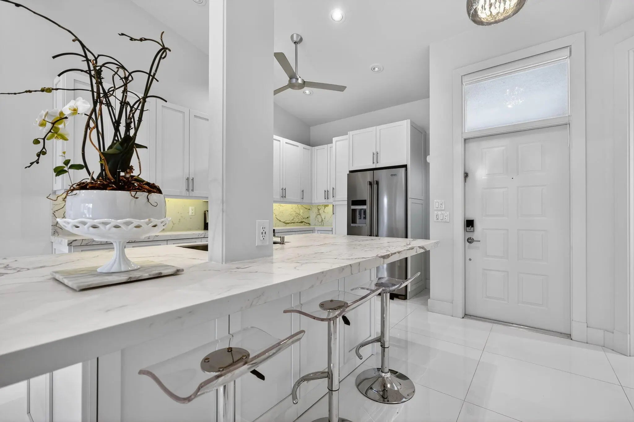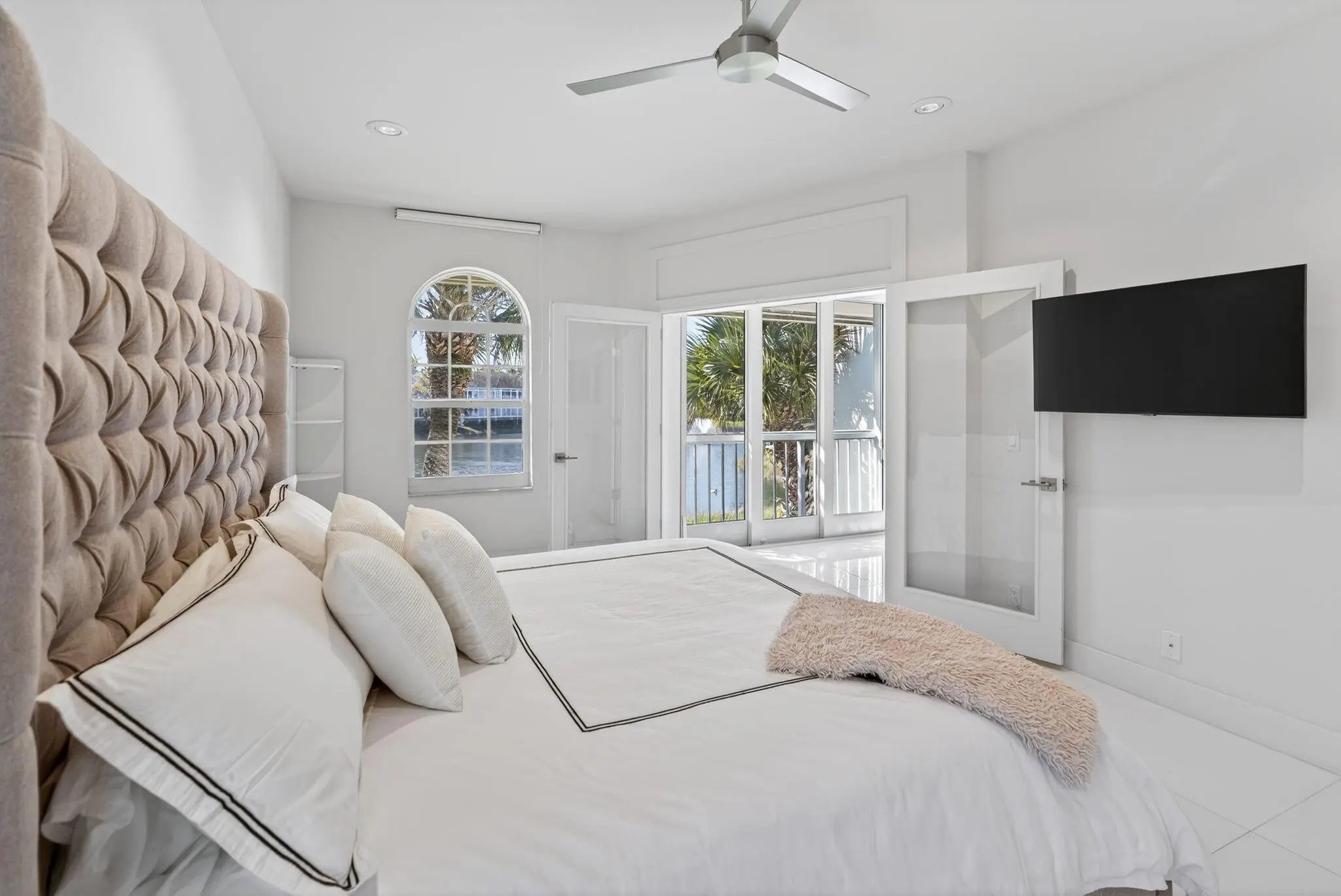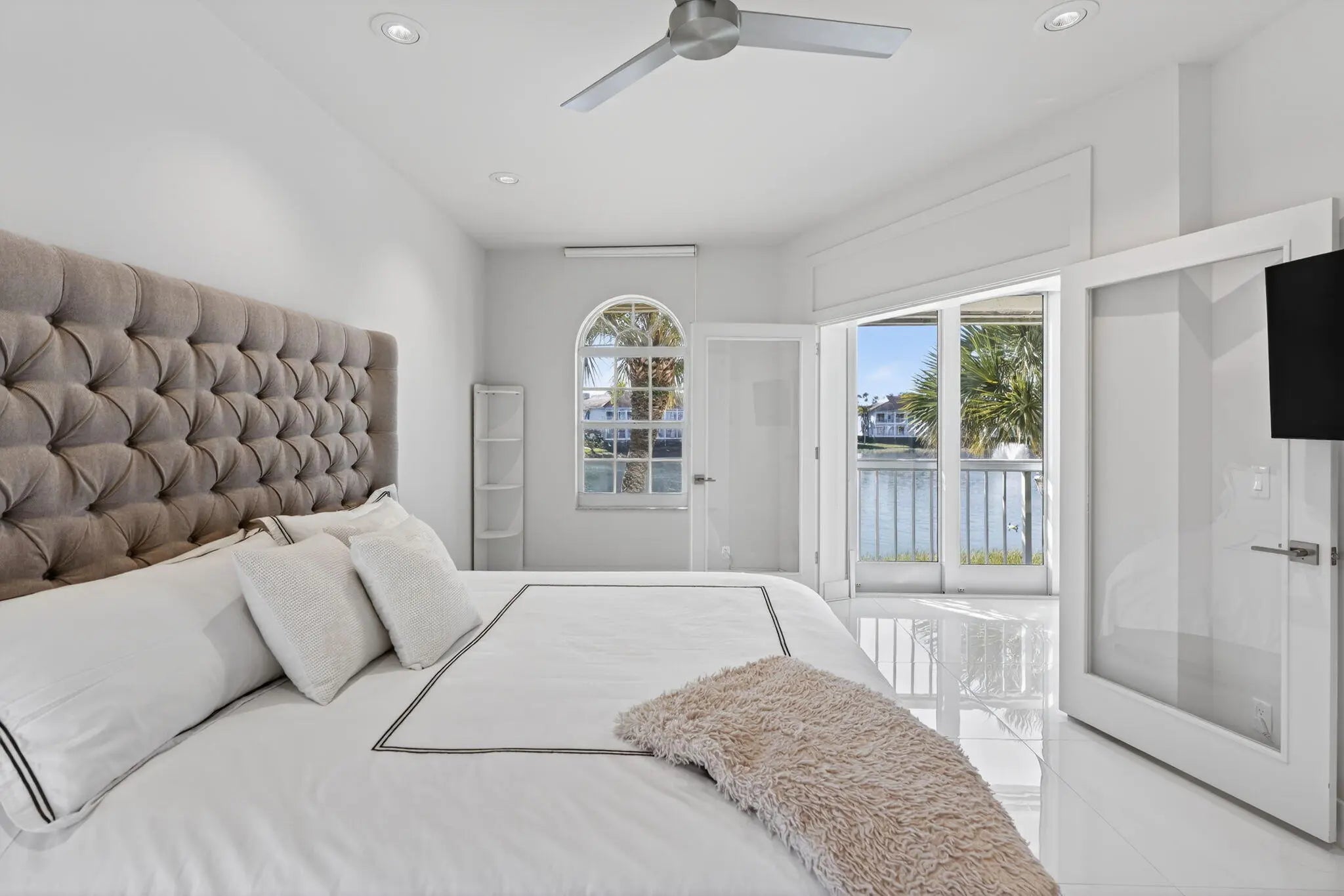 Welcome to this FULLY RENOVATED residence in the world-renowned PGA National Resort, one of Palm Beach Gardens most prestigious and iconic golf communities. This exceptional home underwent a complete top-to-bottom renovation in 2018, offering elevated design, premium finishes and a European feel.Bathed in natural sunlight throughout the day, the home enjoys tranquil lake views with moving water, creating a peaceful and visually stunning backdrop from the main living areas and the expanded patio.The interior features new drywall throughout, 8 ft custom wood interior doors, 6 inch custom base moldings, 42 recessed high-hat led lights, nest and 36 x 36 porcelain tile flooring. These features effortlessly enhance your indoor/outdoor living experience.