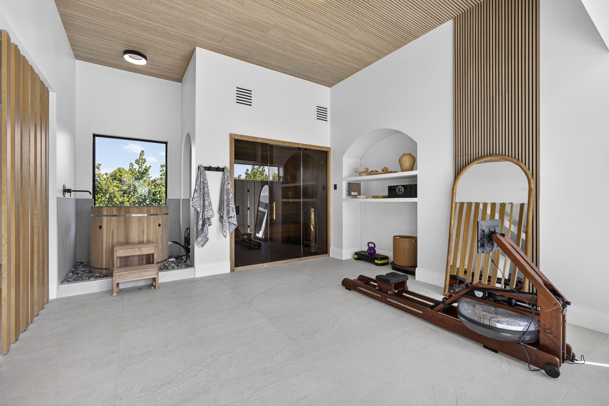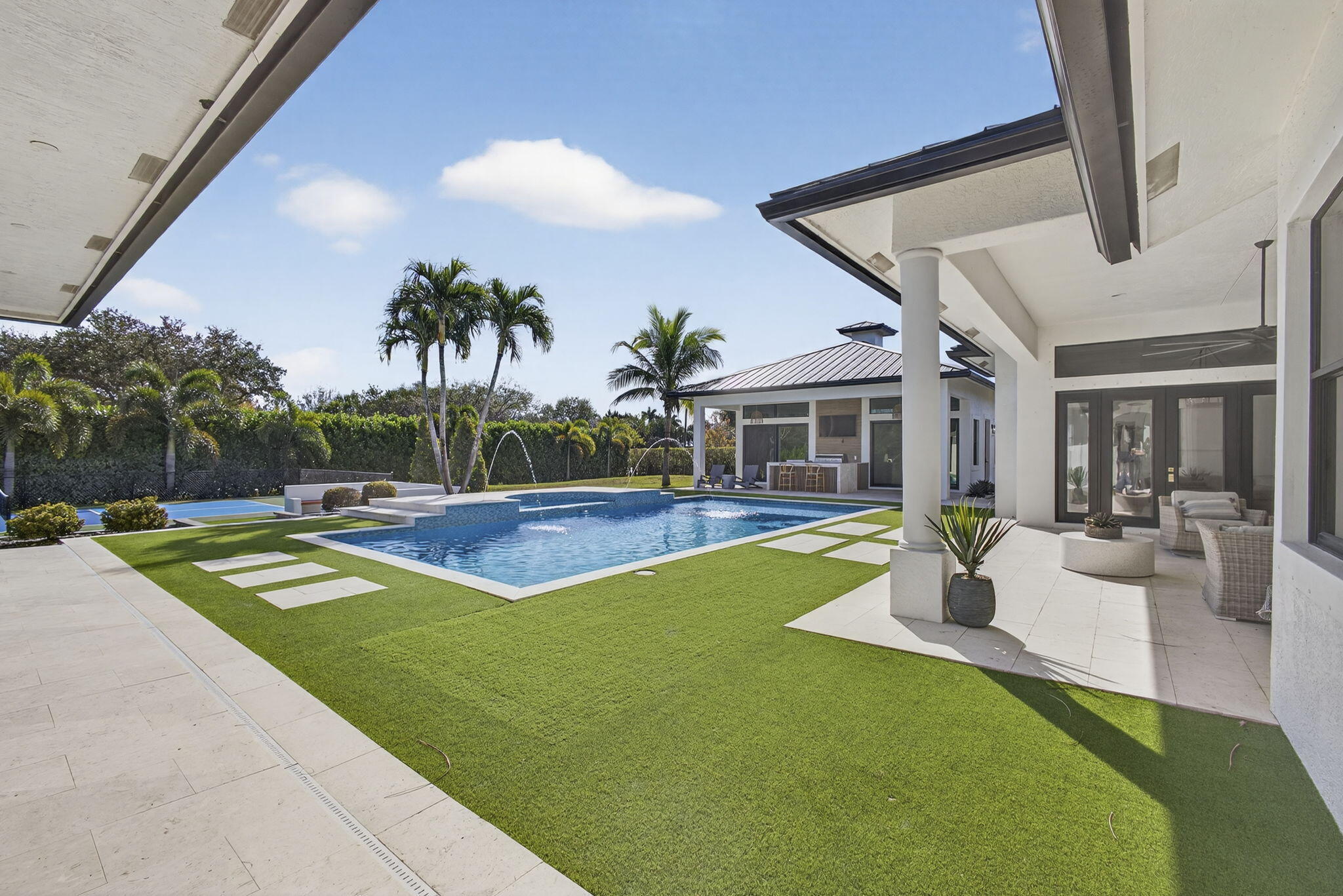 Fully renovated in 2025, this privately gated Aero Club estate offers approximately 6,500 SF of refined living space and over 8,300 SF total, with half the residence newly constructed and the remainder fully remodeled. Designed for elevated living, the home features a new metal roof, detached guest house, private pickleball court, media room, and a wellness suite with sauna, cold plunge, and gym. The chef's kitchen includes a butler pantry, gas range, and double laundry system. The primary suite offers a spa bath with steam room and walk-in closet. Executive office overlooks the heated pool. Hurricane-ready with a house generator powering the home and outdoor kitchen. Located near the entrance of the Aero Club with close proximity to horse farms, the dog park, and the private airport.