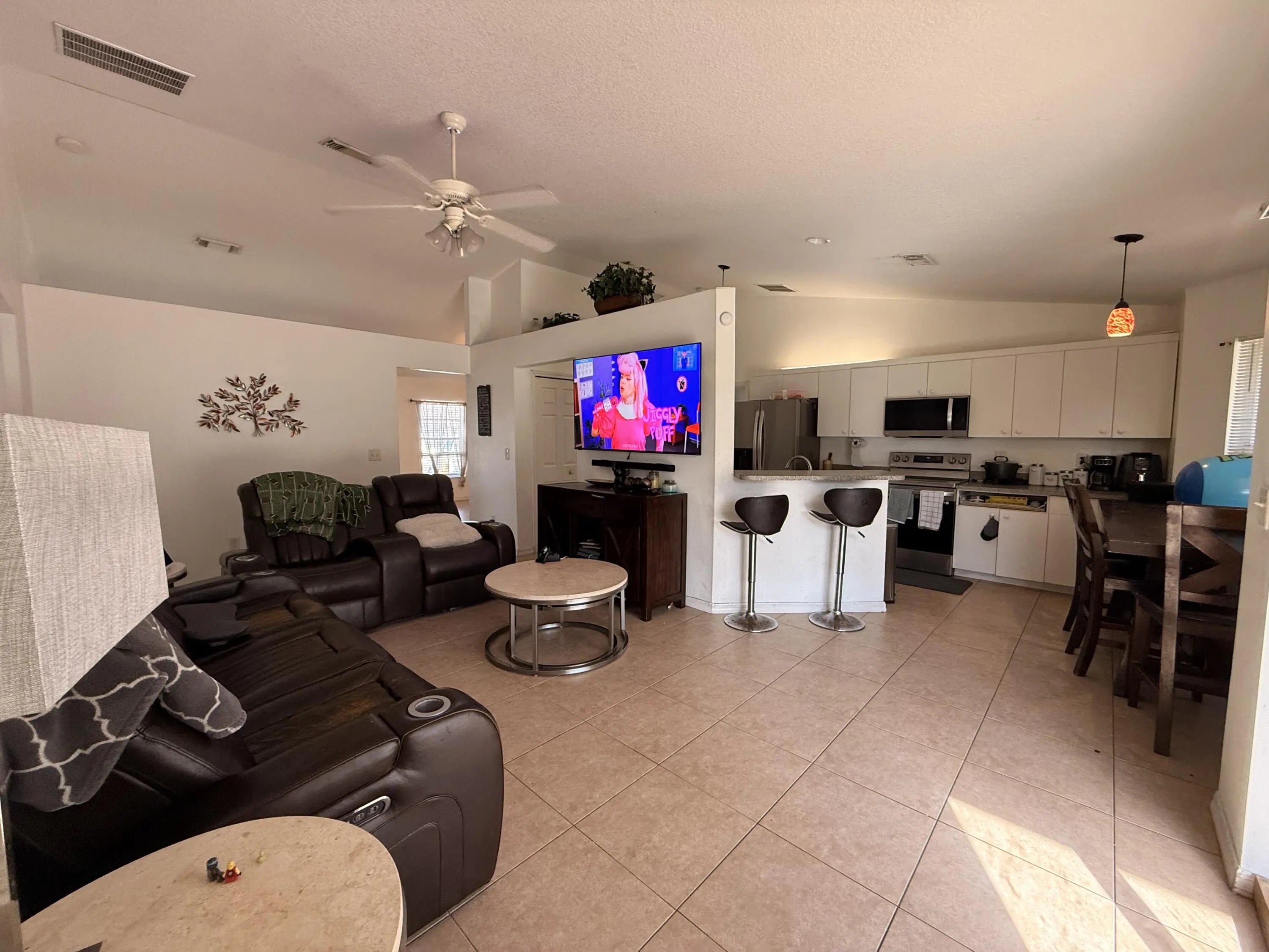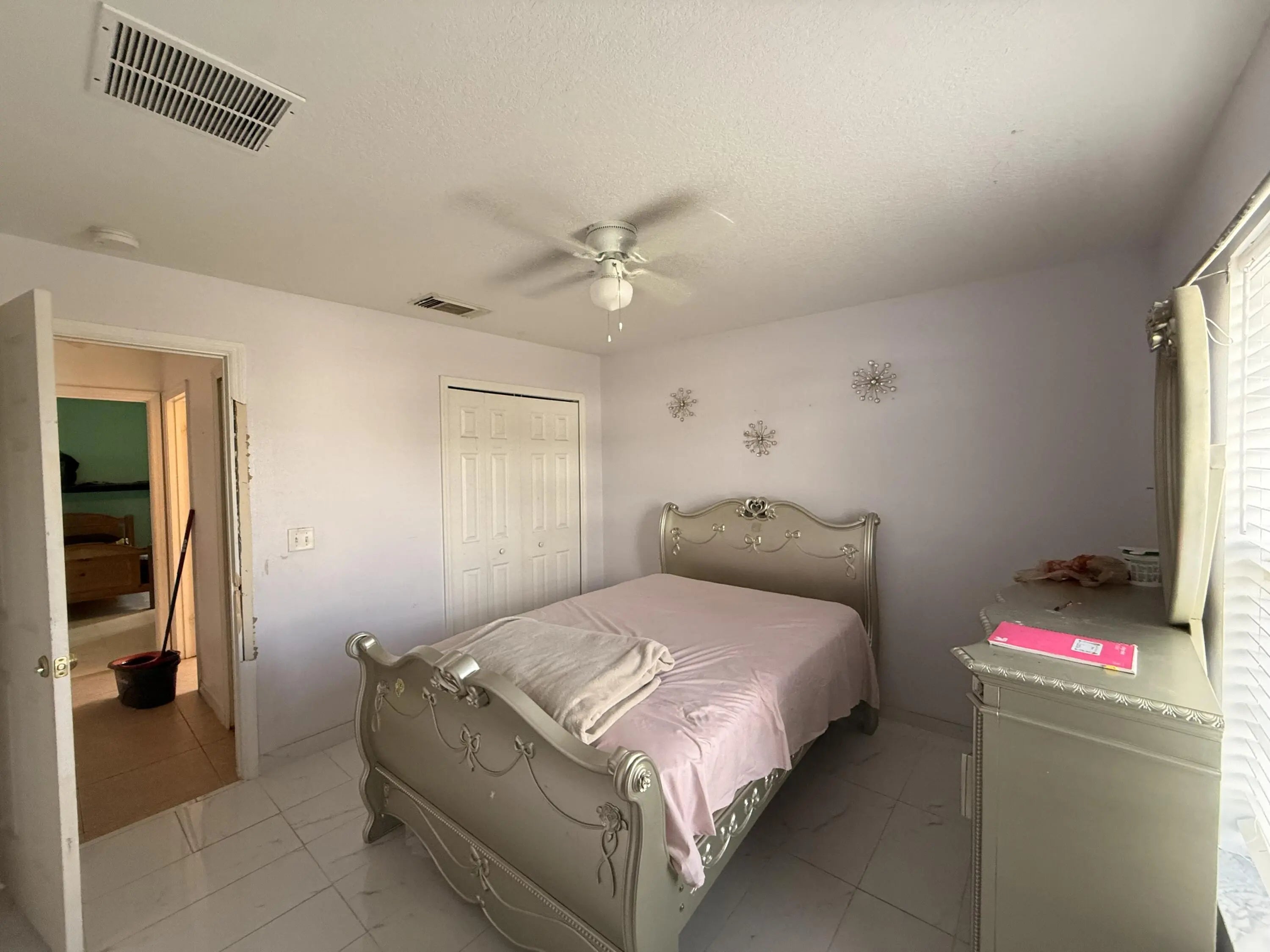 Spacious three-bedroom, two-bath single-family home with a two-car garage and private backyard--ideal for rental or value-add potential. Features an open floor plan with tile flooring throughout, formal living and dining areas, family room, and breakfast nook, offering strong appeal to long-term tenants. The backyard includes fruit trees, a large shed, and plenty of space for children to play or for future improvements, including room for a pool. A screened porch provides a relaxing space to unwind. With minor repairs and personal touches, this home is a great opportunity for a family to make it their own and build long-term value.
