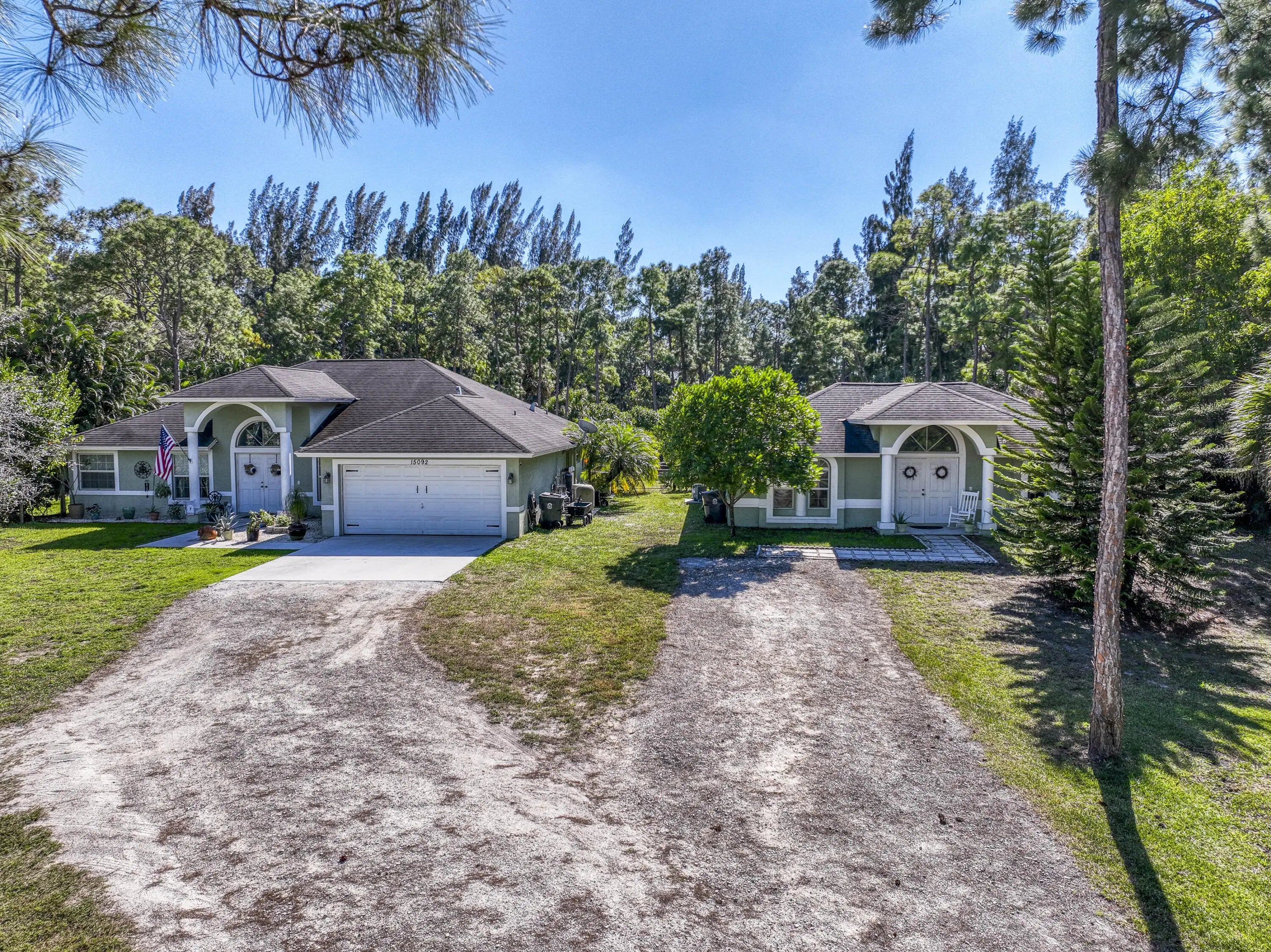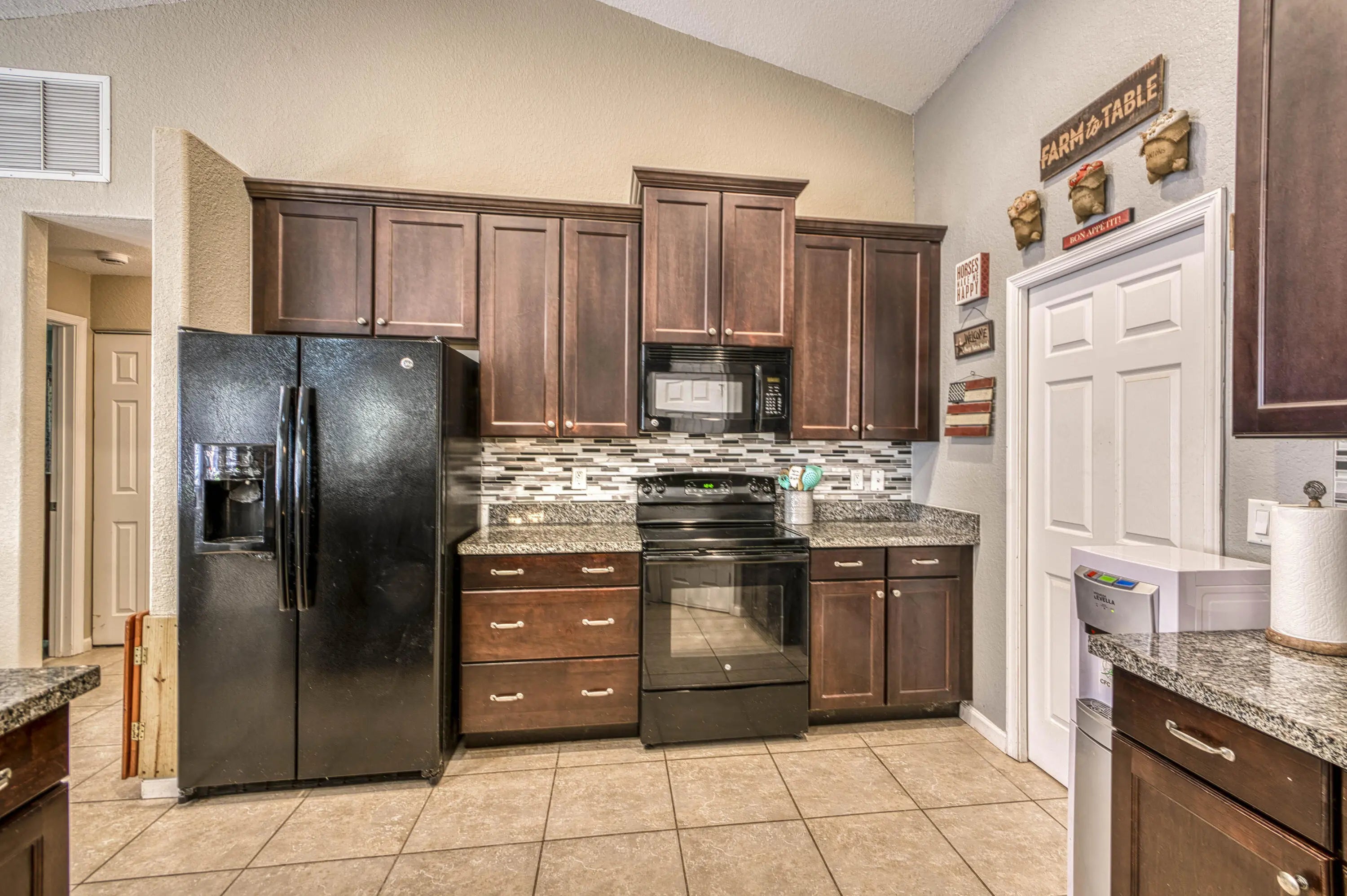 Rarely available fully fenced 2.11-acre property with lush privacy landscaping featuring a 2015-built main home and detached guest home, complete with a 3-stall barn with water and turnouts, three pastures, chicken coop, and shed with electric. Enjoy no HOA with agricultural-friendly zoning, offering endless flexibility for equestrian use, homesteading, and multi-generational living. The main residence offers 3 bedrooms plus an office/den with an open-concept, split floor plan including a formal dining room, breakfast nook, family room, and living room. Tile flooring runs throughout, complemented by a spacious kitchen with granite countertops, wood cabinetry, and pantry.