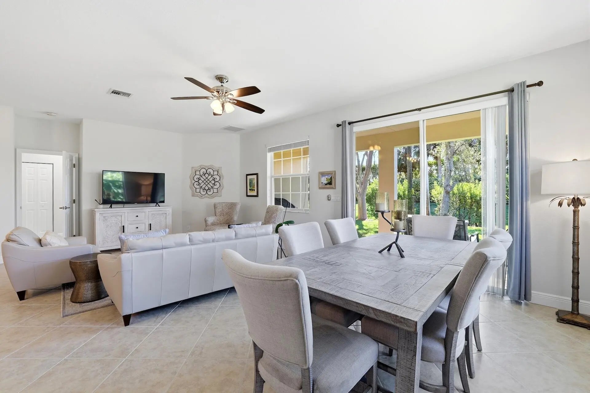 Welcome to this charming one-story home in the gated community of Oakmont Estates in Wellington, Florida. Nestled among tree-lined streets and sidewalks, this established neighborhood offers a peaceful setting and a true sense of community.This thoughtfully designed three-bedroom, two-bath residence is a rare find, as most homes in the community are two stories, making single-level living a wonderful advantage. The home offers comfortable living spaces and a warm, inviting atmosphere that makes it easy to imagine relaxing and enjoying everyday life.Step outside to a backyard that feels private and serene, with lush greenery creating a peaceful backdrop and no direct rear neighbors, which is an ideal setting for quiet mornings or relaxing evenings.
