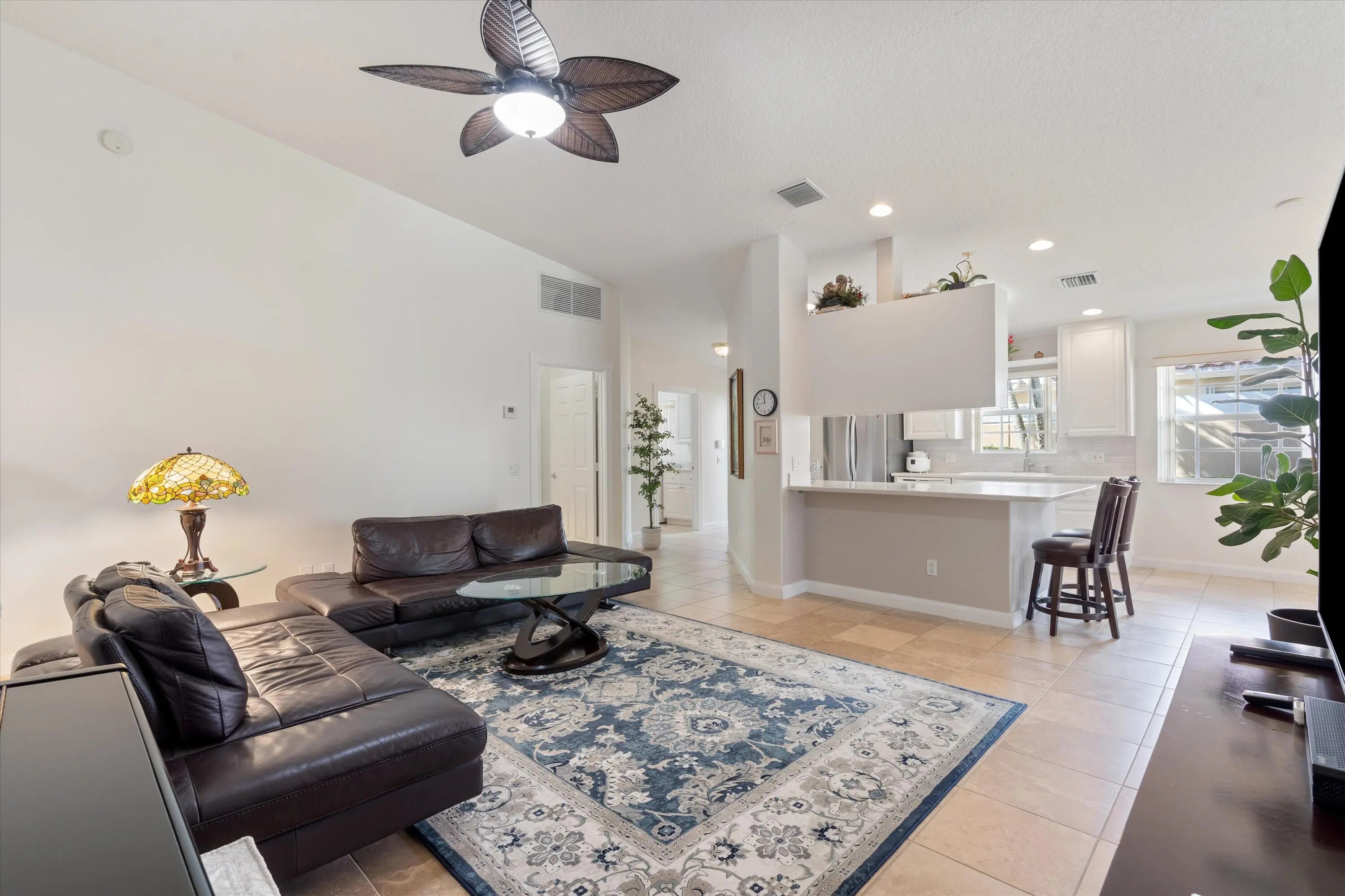 Beautifully maintained 2-bedroom, 2-bath waterfront villa in the gated, resort-style community of VillageWalk. This quiet home features an extended living area opening to the lanai, offering additional space for relaxing or entertaining. Tile and laminate flooring provide easy, low-maintenance living with serene water views.HOA covers lawn and landscaping maintenance, 24-hour manned gatehouse, exterior painting, and roof cleaning.Ideally located minutes from Wellington's top equestrian venues, championship golf courses, pristine beaches, and Palm Beach International Airport.