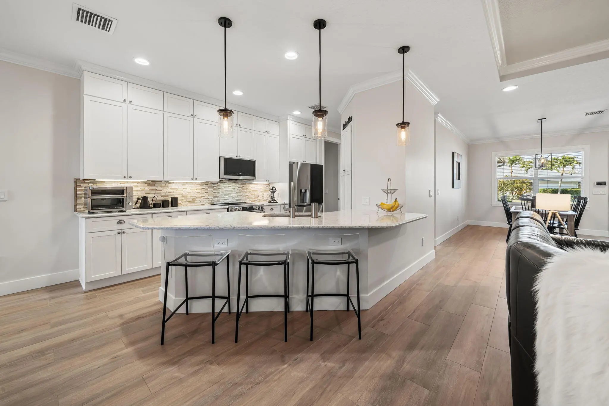 You don't want to miss this home! Built in 2018, this beautifully upgraded 4-bedroom, 3-bathroom home with a dedicated office is ideally situated on a wide-bodied waterfront canal with no HOA. Designed for both comfort and functionality, the home features hurricane impact windows and doors throughout, a generator-ready electrical panel, spray-foam attic insulation, and additional exterior wall insulation for energy efficiency. The open living spaces are enhanced by crown molding, recessed lighting, floor outlets, and Lutron automated wood blinds. The kitchen and living areas flow seamlessly to the screened-in back patio, offering peaceful canal views and outdoor living potential.Additional highlights include a central vacuum system, laundry room with built-in cabinetry and ironing board,