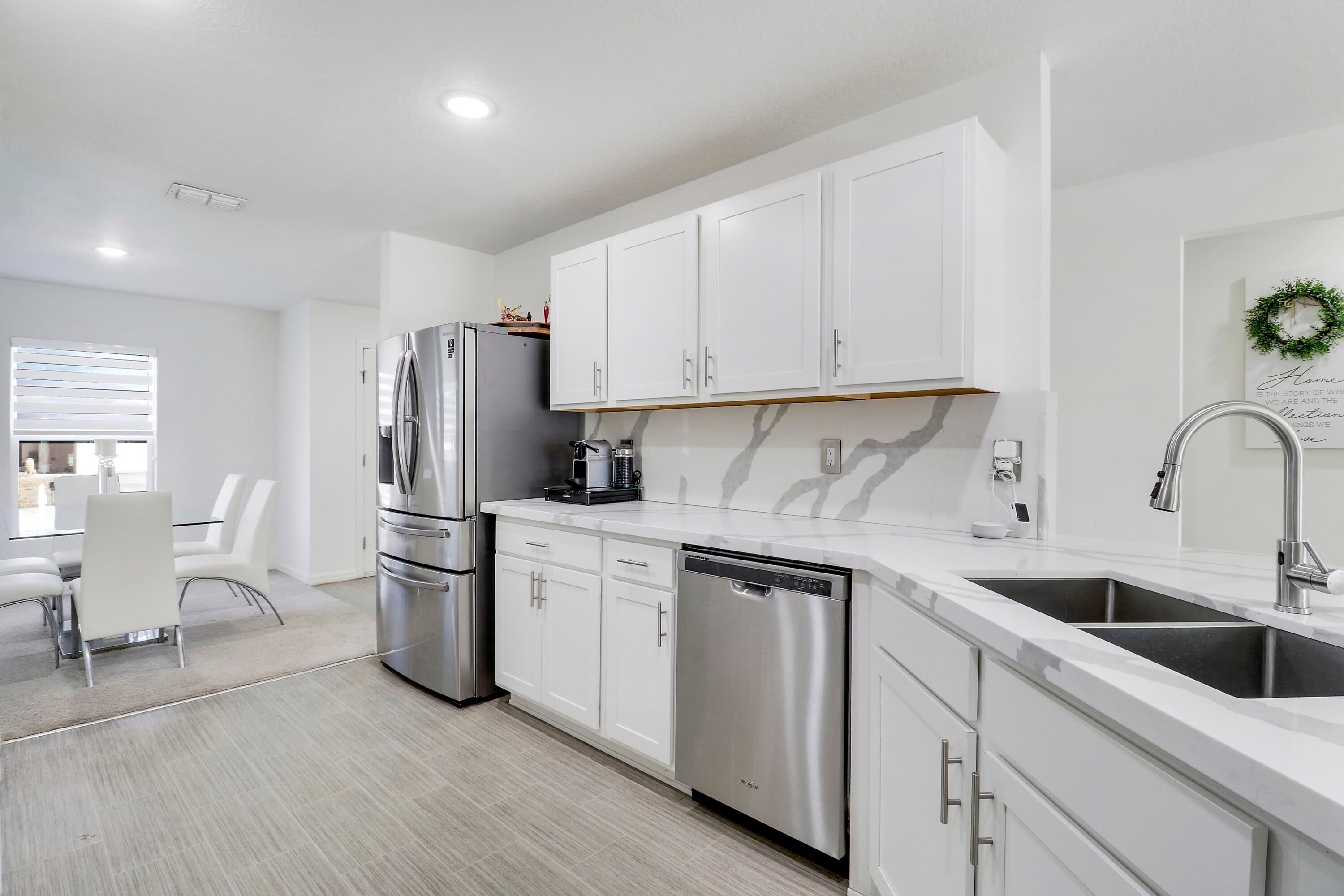 Welcome to this light and bright 3-bedroom, 2-bath home built in 2021 and thoughtfully maintained. The heart of the home features an extensively upgraded kitchen with high-end appliances, ideal for both everyday living and entertaining. Upgraded bathrooms add a modern, polished feel throughout. The spacious, fully fenced backyard is a true standout, offering a beautiful outdoor living area complete with a high-end Paradise Grills outdoor kitchen, bar area, and extended patio--perfect for gatherings and relaxing evenings. Located in a desirable neighborhood close to shopping, dining, and top-rated schools, this well-cared-for home is priced right and ready for a buyer to add their personal touch. Don't miss this opportunity.