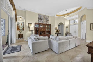 Wellington's Buena Vida community reflects the good life, with resort style community living. The featured home is one of the estate series properties offering 3 bedrooms, 2 full baths and one half bath with 2,708 SF of grand living space. This lakeside residence is elegantly appointed with a grand owners suite encompassing a spacious bedroom, attached sitting room, custom built dressing room & closet, and a richly designed owner bath. The grand kitchen area features granite counters and warm natural wood cabinets, and newer variety of stainless steel appliances. The split floor plan provides two guest bedrooms. At the hub of the home is a grand living room and formal dining area for perfection in your entertaining. Enjoy outdoor living from a screened lanai towards a tropical oasis.