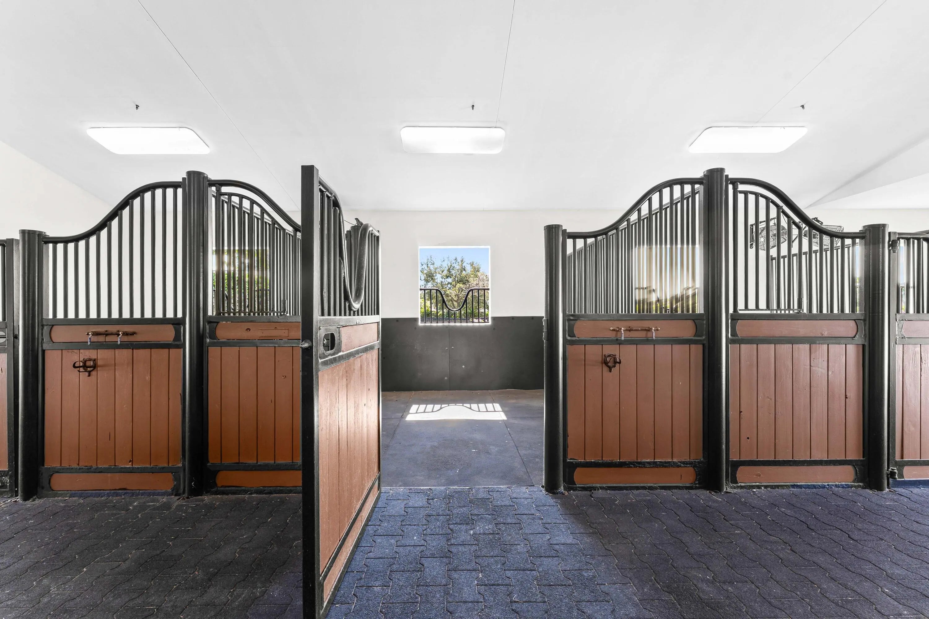 Listed price is per dry stall, per month, for annual lease. Exceptional annual rental opportunity in desirable Paddock Park! This well-maintained equestrian farm features 8 stalls, 6 paddocks, and a 100' x 200' riding ring with a full set of jumps. The hurricane-proof CBS center-aisle barn offers rubber-matted stalls, fans, and automatic waterers throughout. Situated on a corner lot with direct access to the bridle path, this property provides both convenience and privacy for serious riders and trainers. Ideal for daily training, the property also includes a studio apartment with a full bathroom and laundry, offering convenient on-site living.