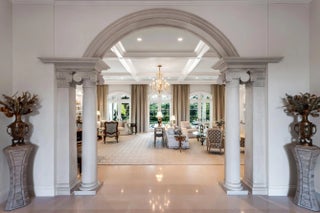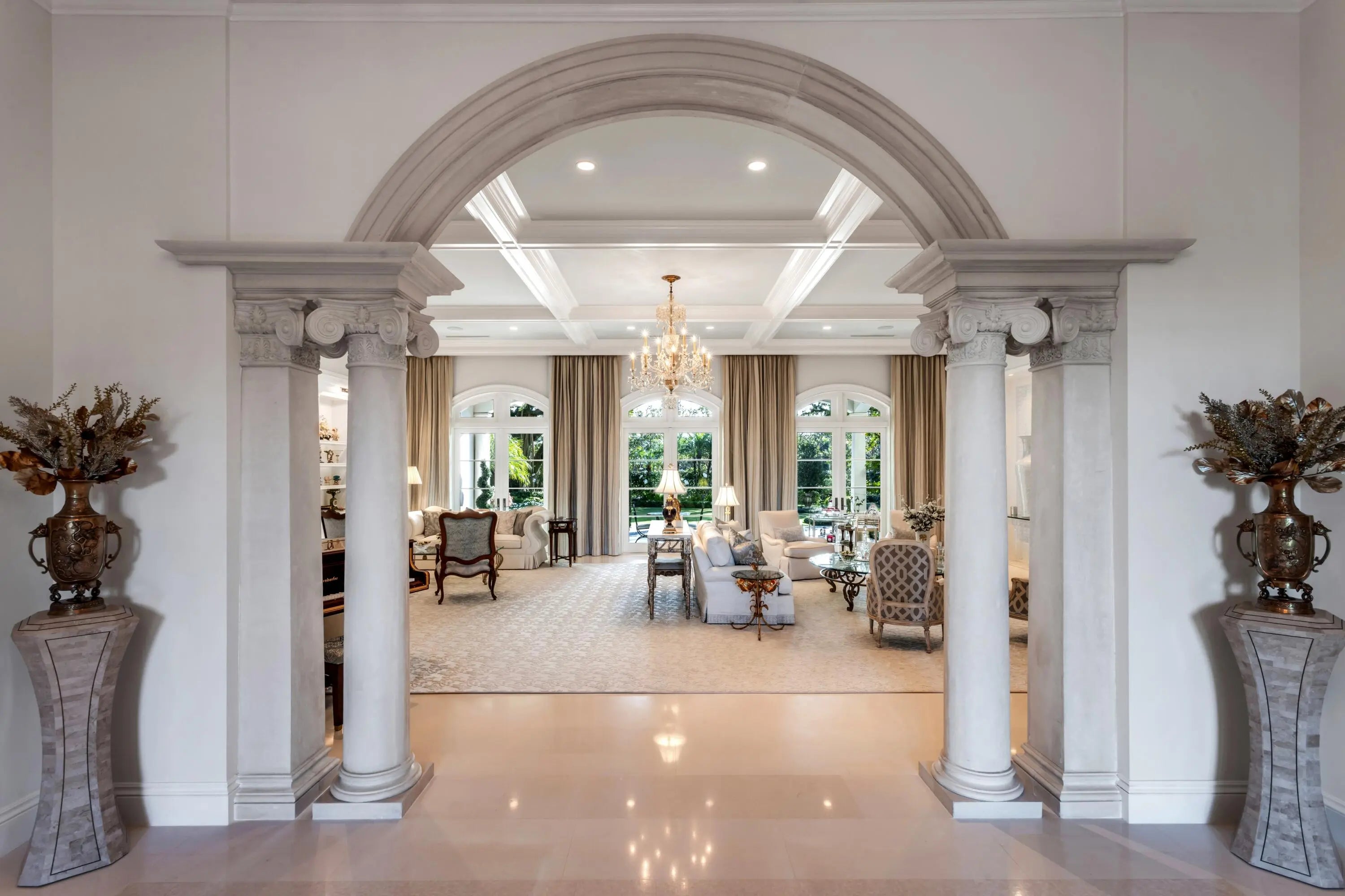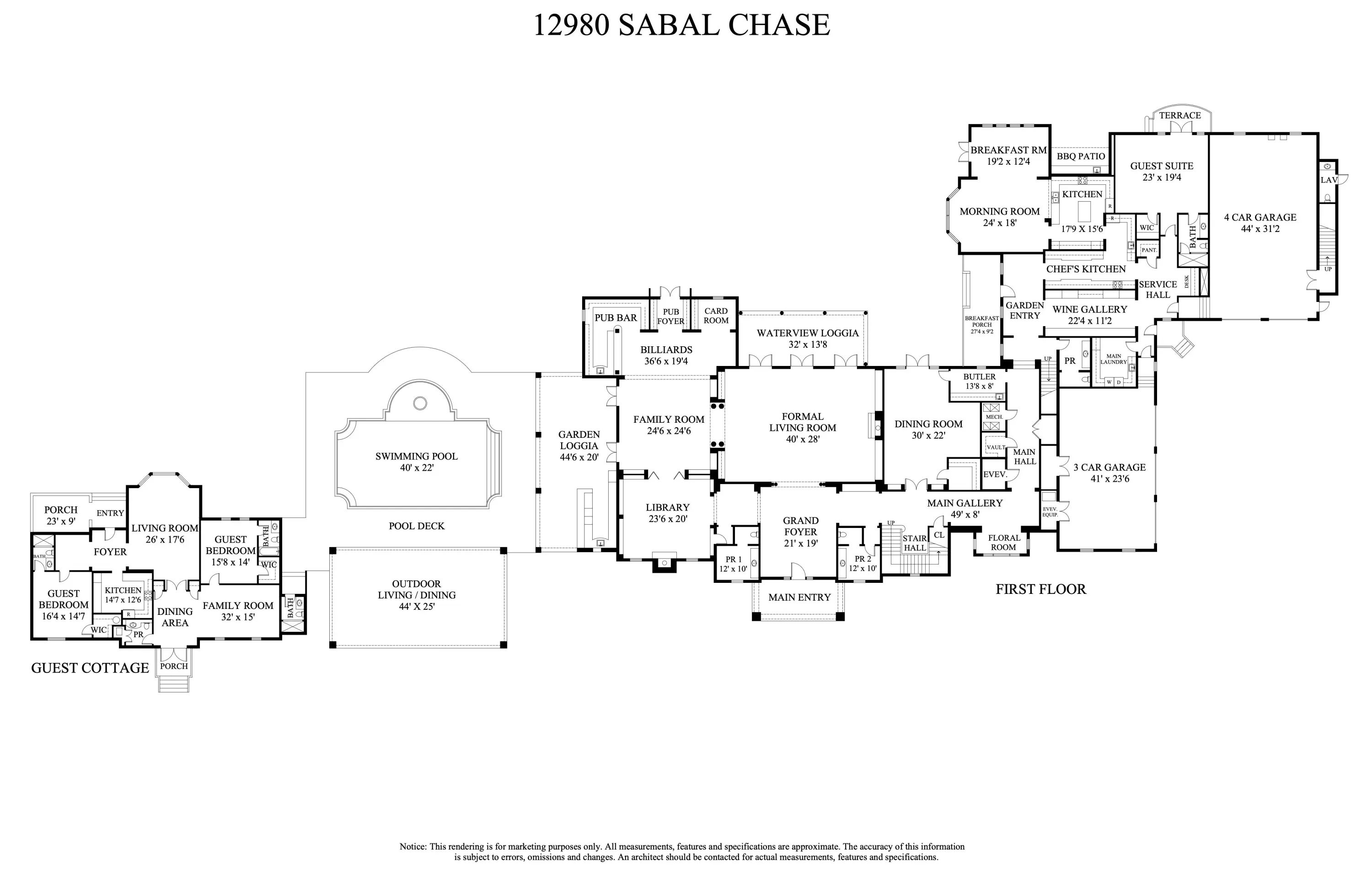 Introducing a magnificent Palm Beach Gardens Estate. This elegant residence of 25,202 square feet, which has 17,820 square feet of living space, sits on approximately 2 acres of beautifully landscaped lakefront property. In addition to the main home, this estate includes a guest cottage & guest apartment. Features include 8 bedrooms, 10 full baths, 6 half baths, 4 full kitchens, 3,000+ bottle wine gallery, 4 fireplaces, multiple loggias/balconies and an oversized 7 car garage. The 32,000 square foot back yard showcases large mature banyan trees and manicured gardens, providing ultimate privacy and serenity. This home has exceptional indoor/outdoor living and entertainment space for both large and intimate gatherings. Located in the prestigious gated community of Old Marsh Golf Club.