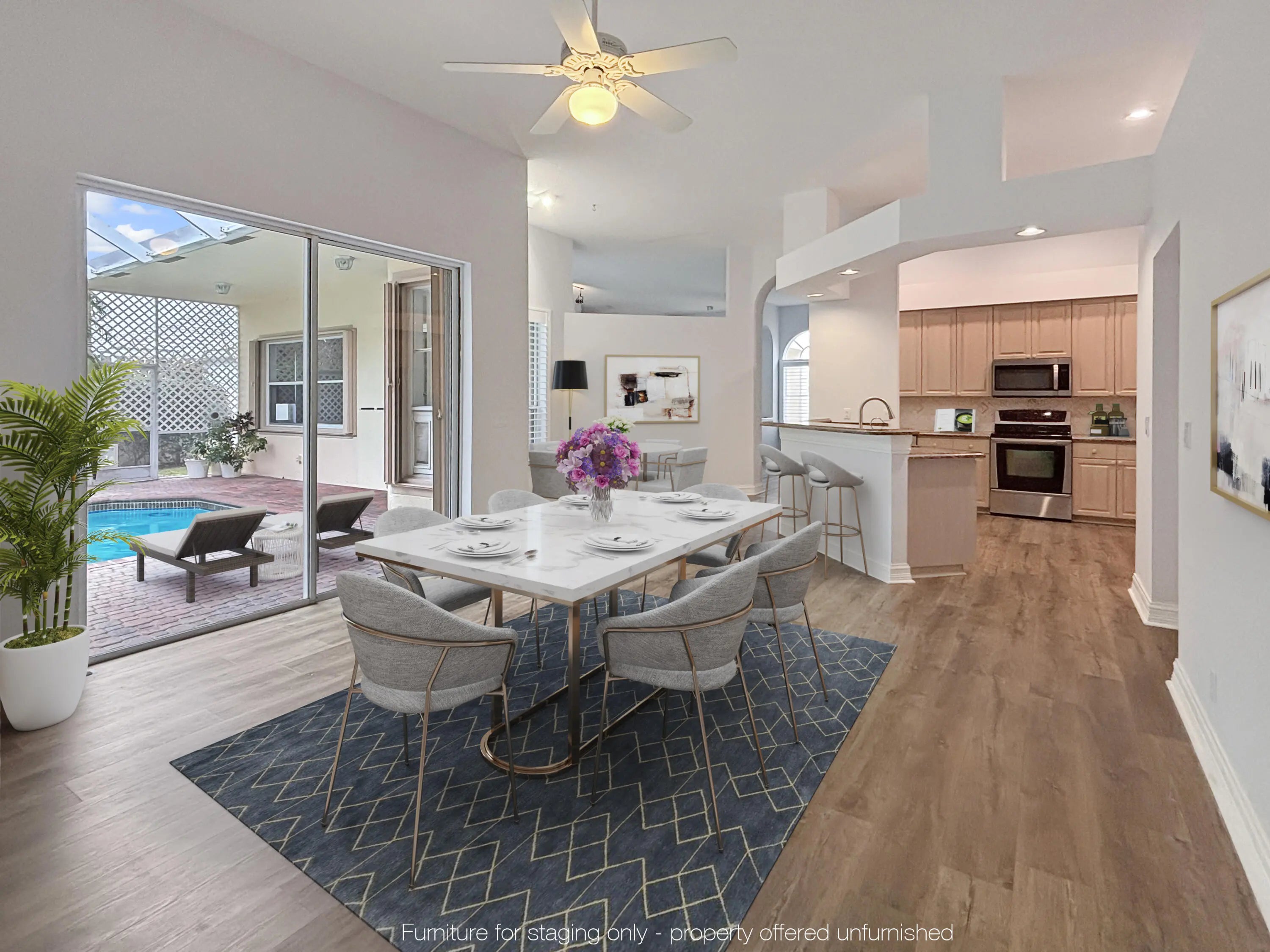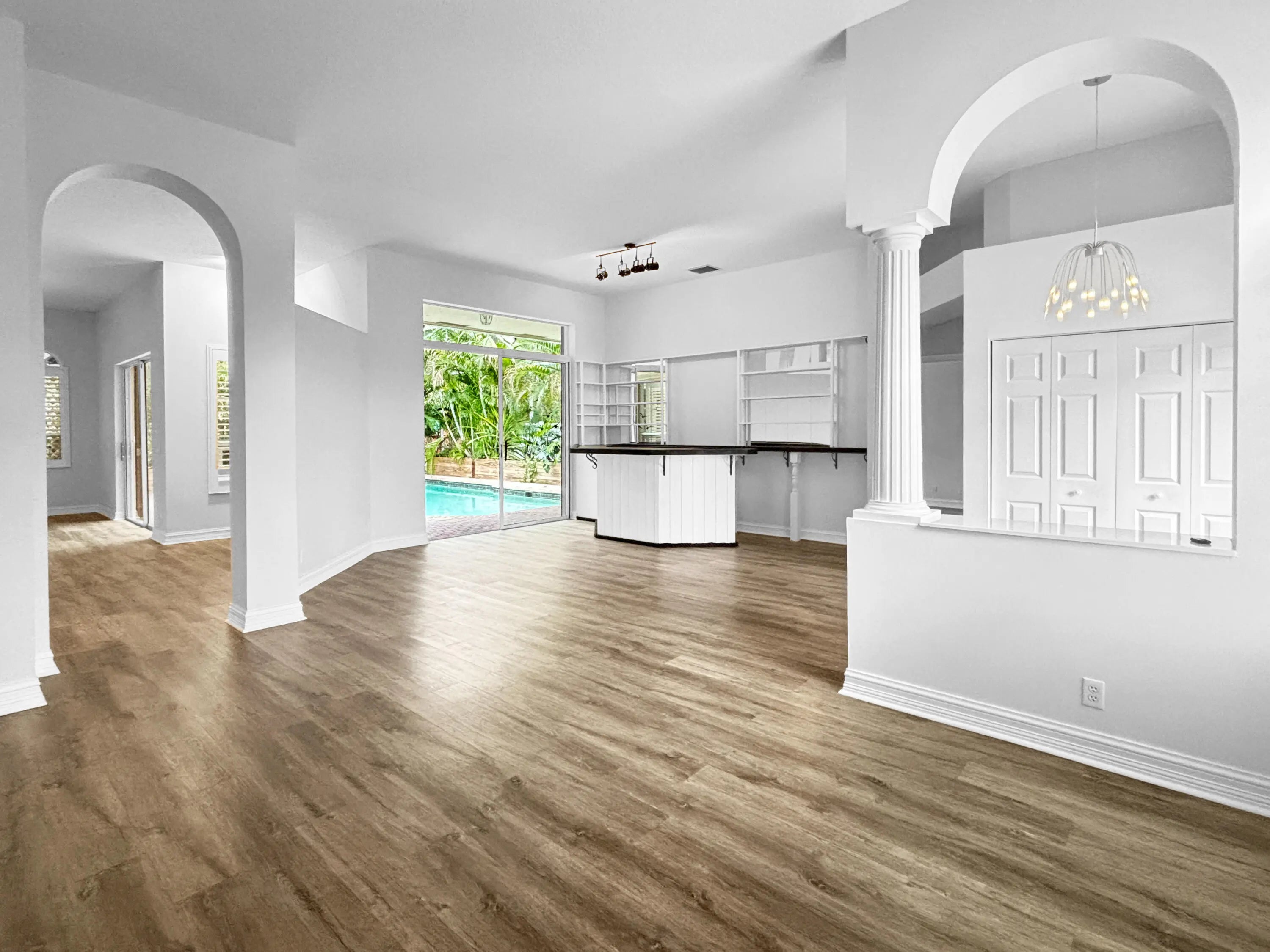 4BR/3BA Single-Family Home with Pool in Siena Oaks - Palm Beach GardensBeautiful 4-bed, 3-bath single-family home in the Siena Oaks neighborhood of Palm Beach Gardens. Approx. 2,486 sq ft of living space on an 8,811 sq ft lot, this home features an open floor plan with volume ceilings, luxury vinyl flooring, formal living and dining rooms, and a well-designed kitchen with granite counters and stainless appliances. The primary suite includes tray ceilings, dual walk-in closets, and pool views. The private screened pool and patio area is ideal for outdoor living. Cabana bathroom offers easy indoor access. Other features include laundry room with sink and cabinets, accordion hurricane shutters, and a 3-car garage. Located close to beaches, shopping, dining, and PBI..